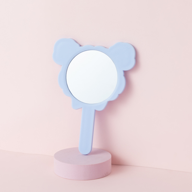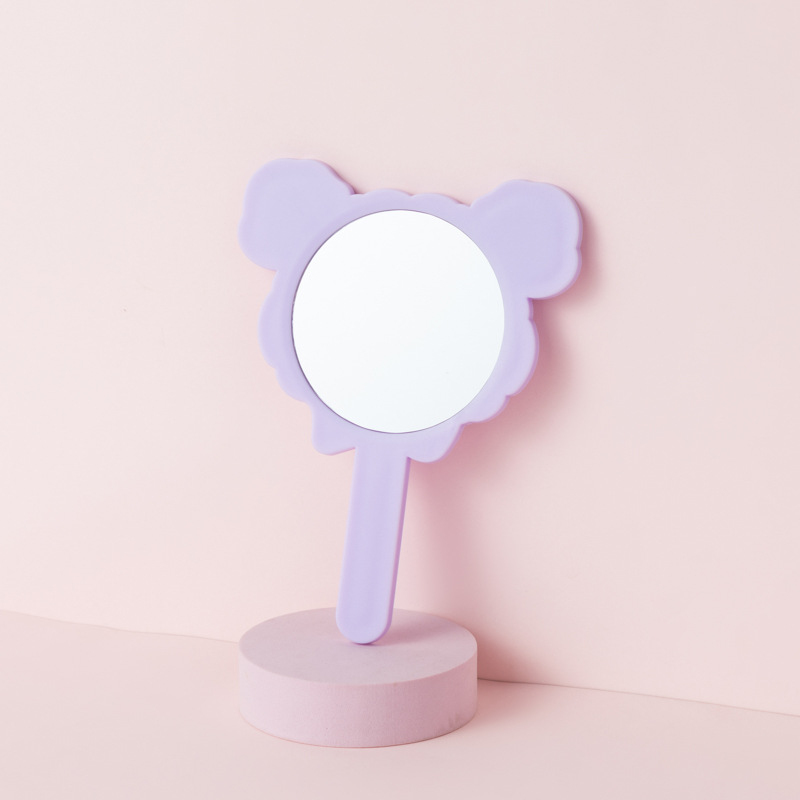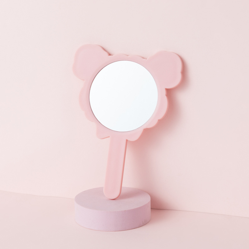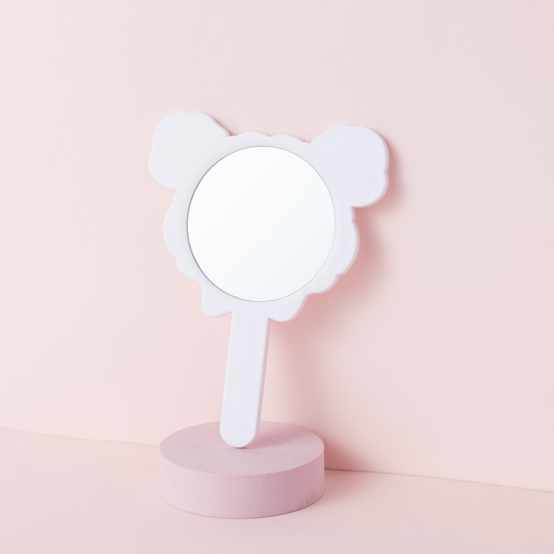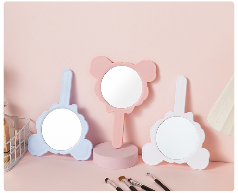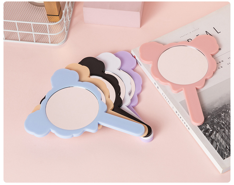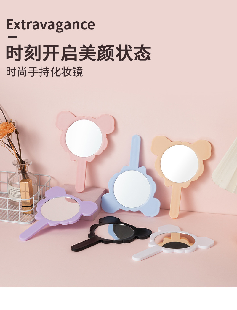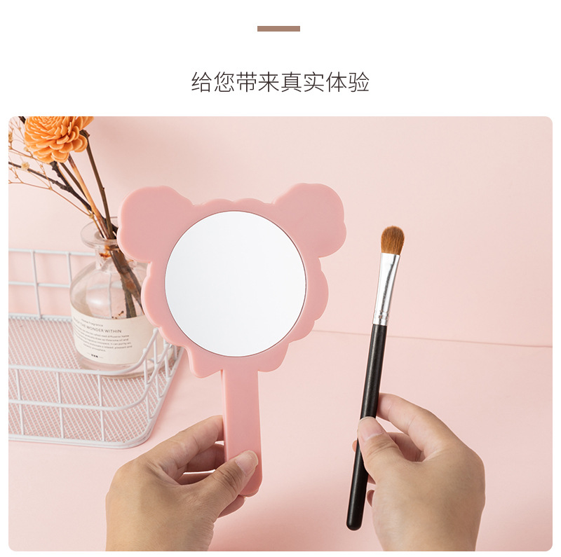可爱少女心线条小狗手柄镜韩版女学生宿舍卧室便携美妆手持小镜子
