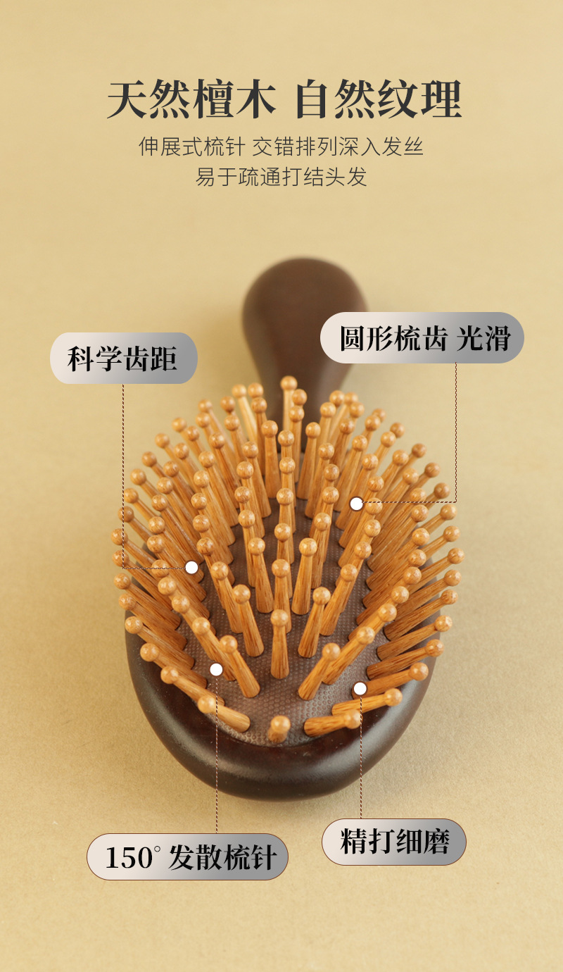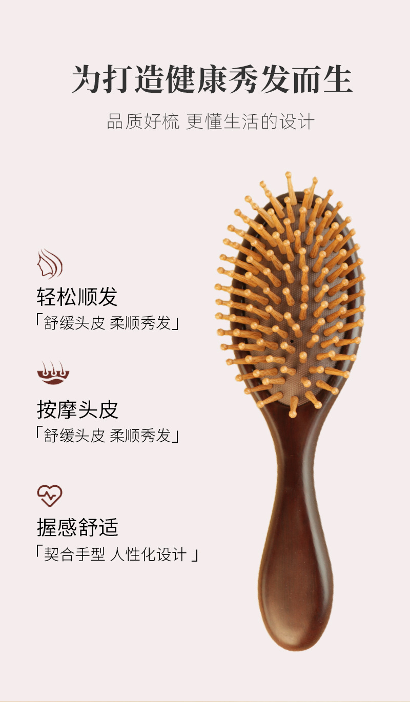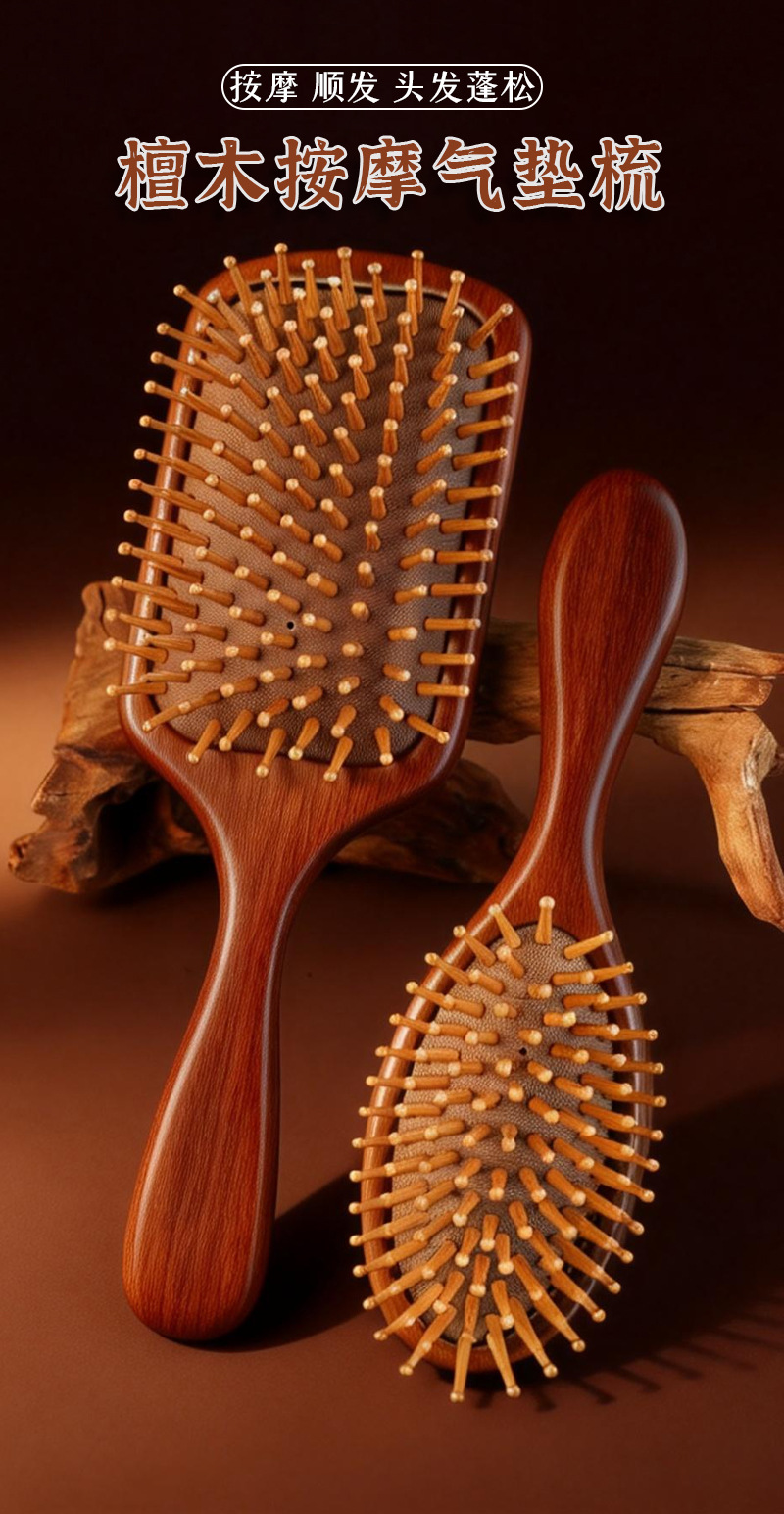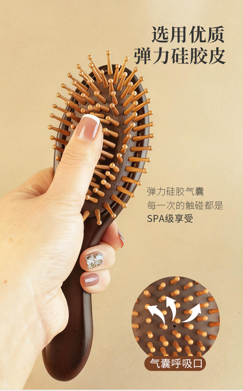 檀木气垫梳顺发防静电气囊梳子头部头皮经络疏通按摩木梳小巧便携
