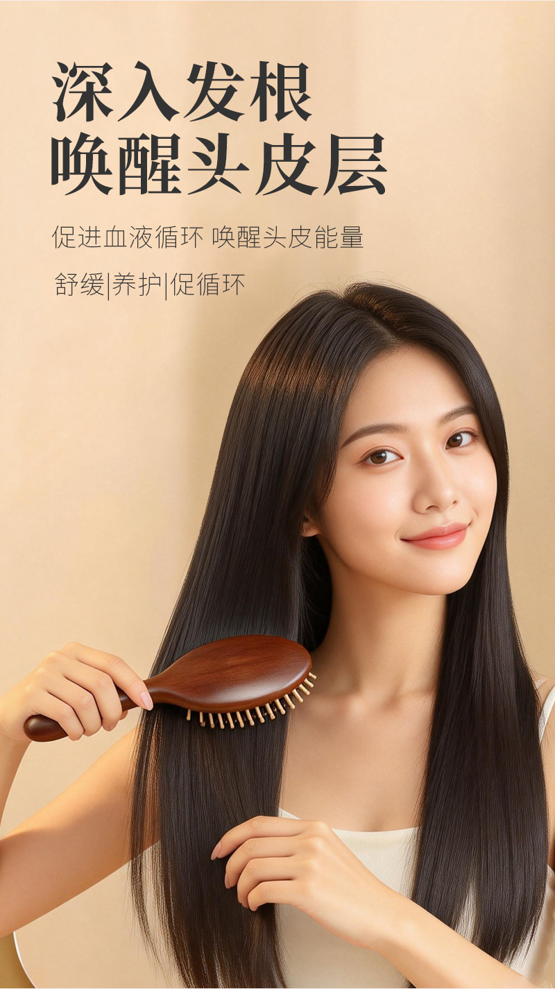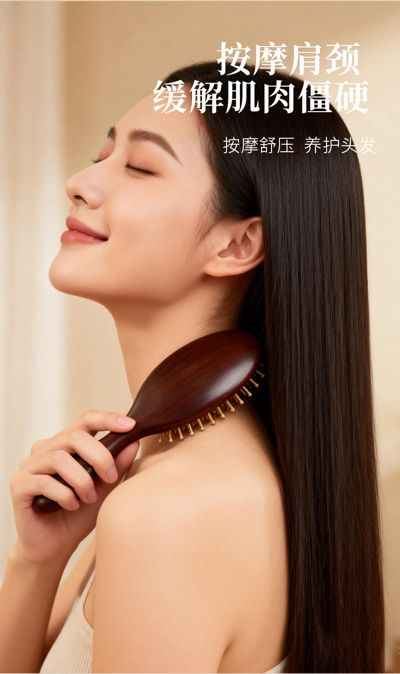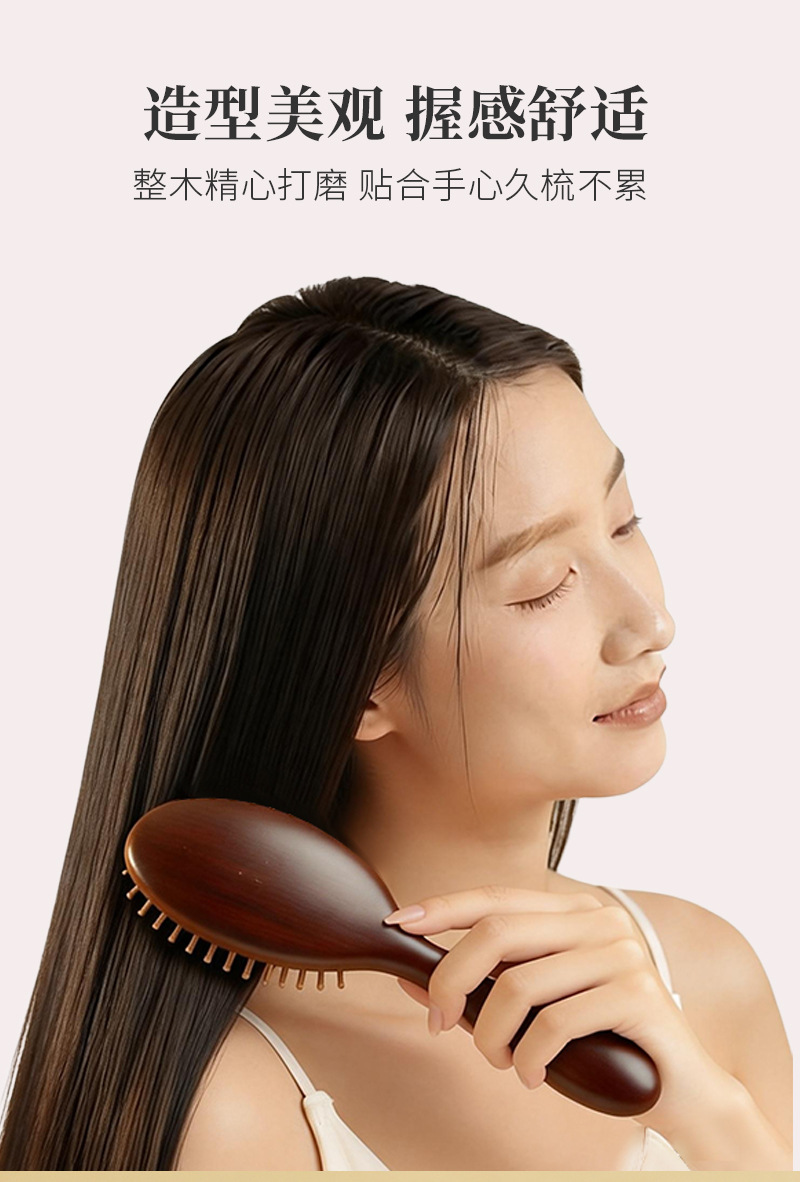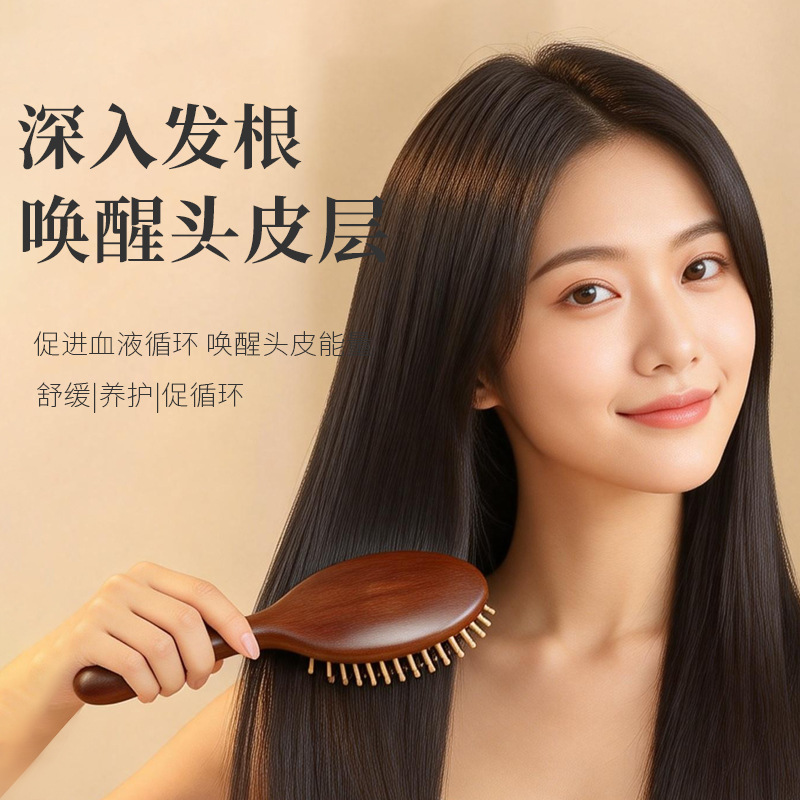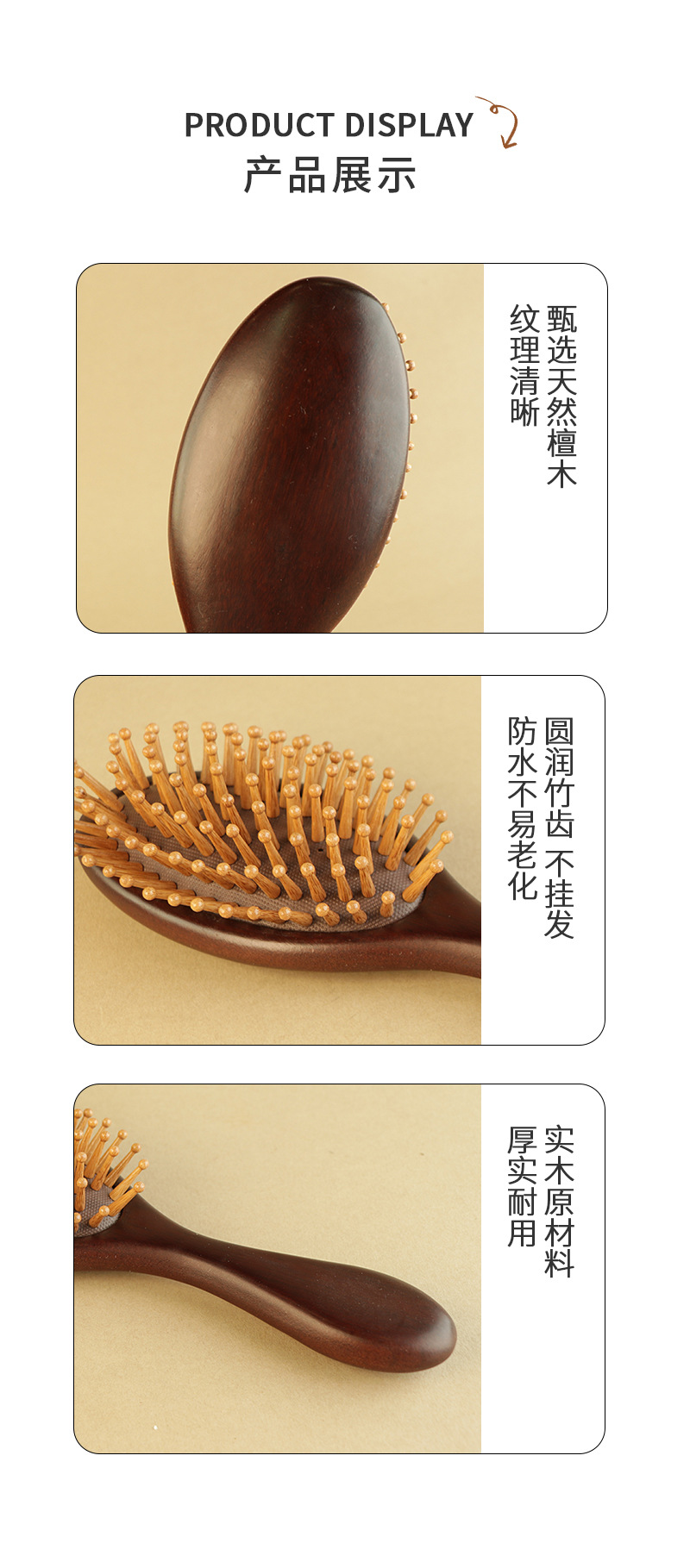 檀木气垫梳顺发防静电气囊梳子头部头皮经络疏通按摩木梳小巧便携