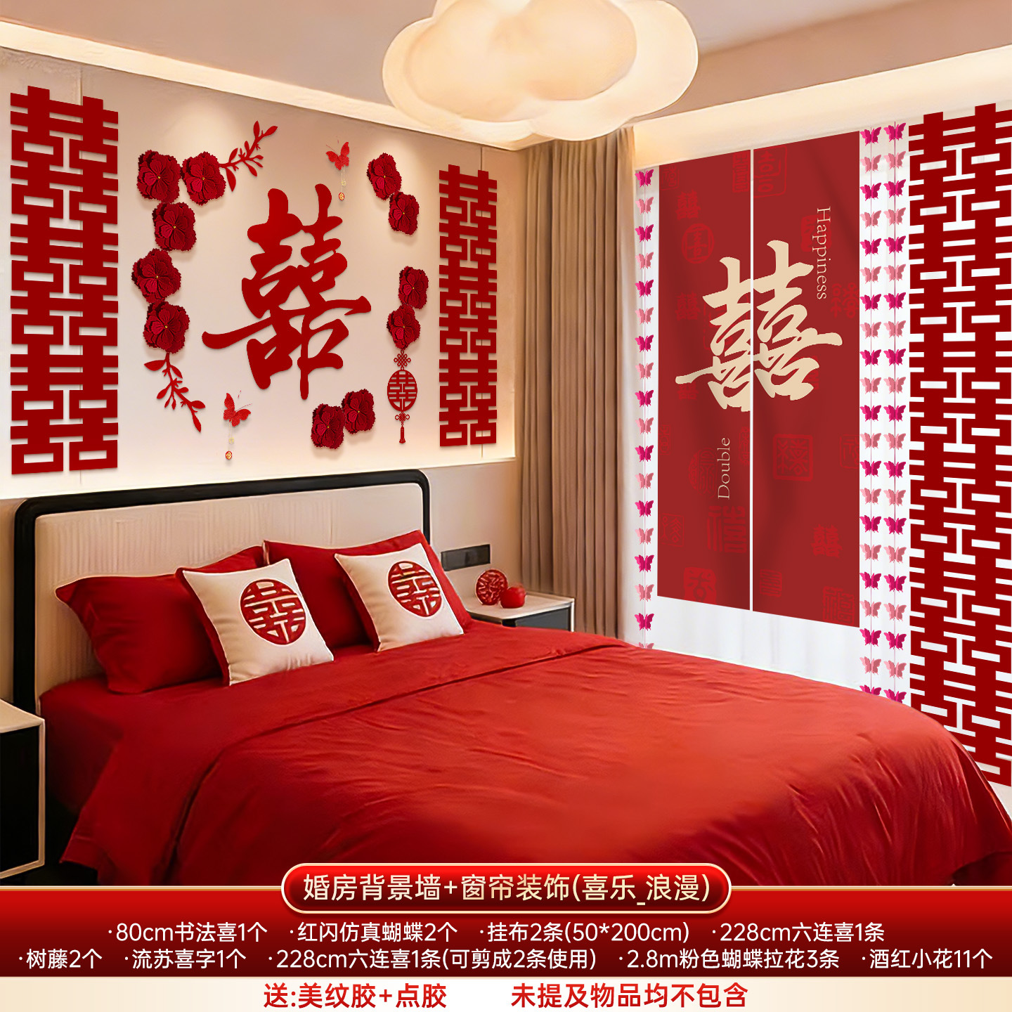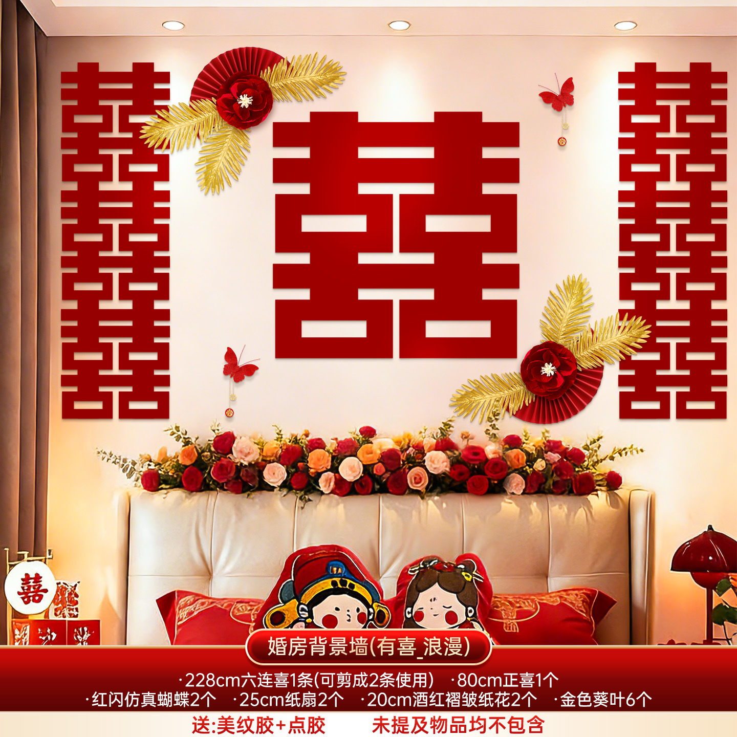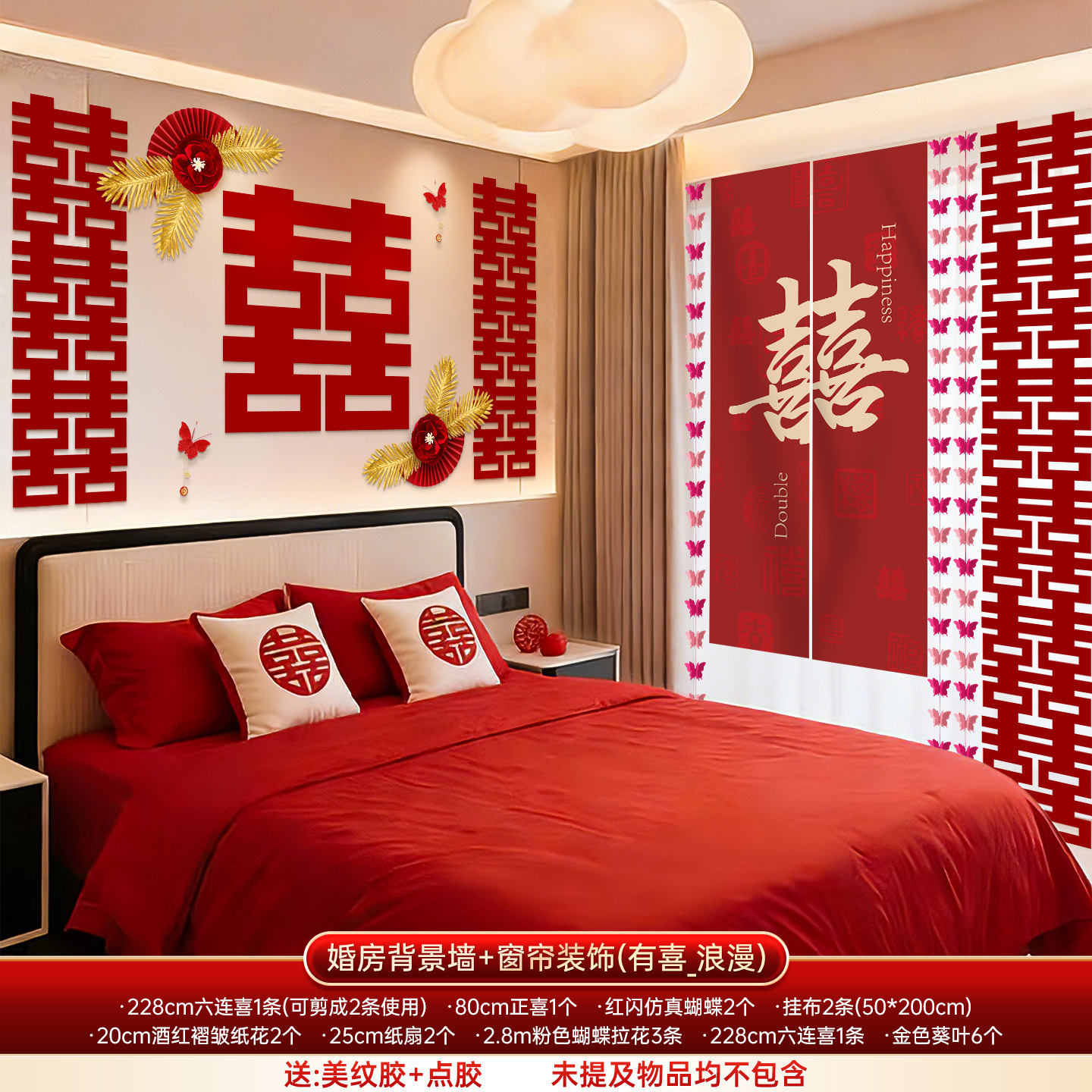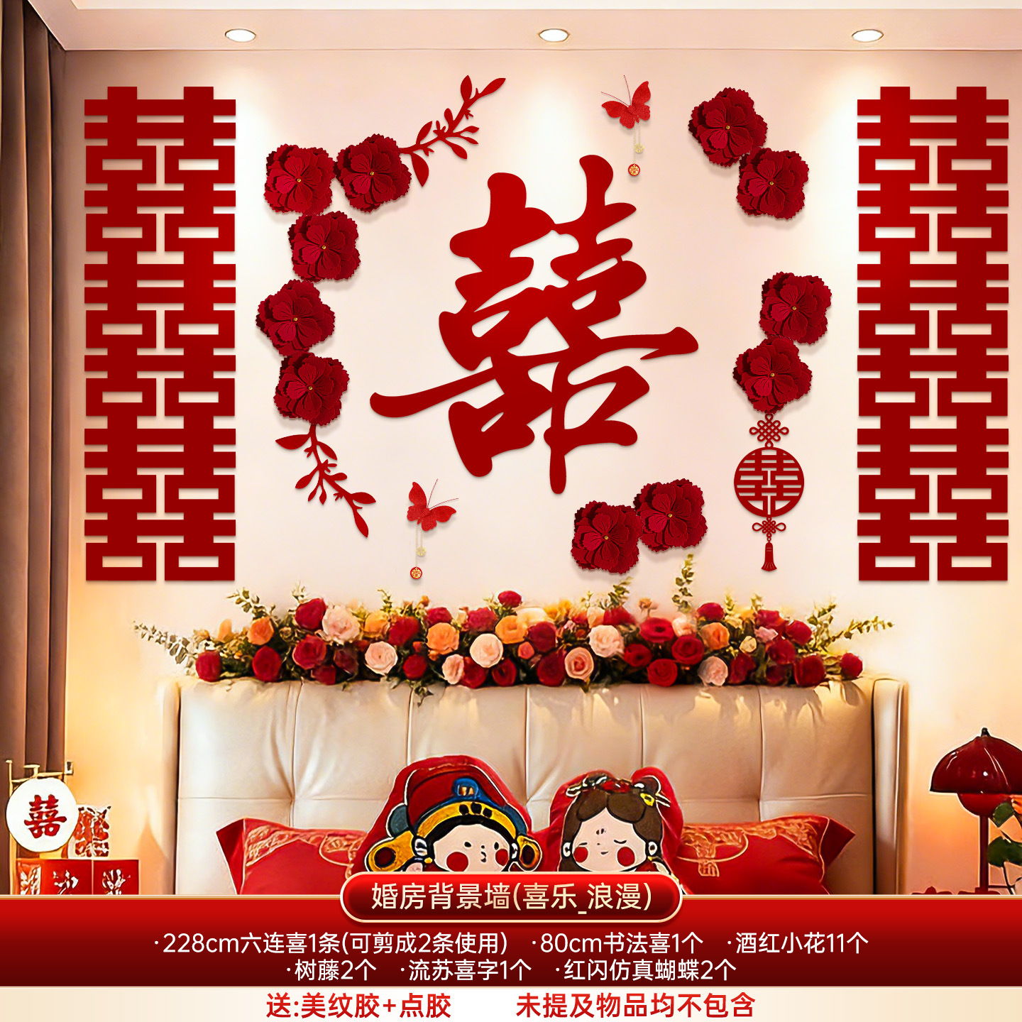 婚房布置套装结婚背景墙装饰女方婚礼新房卧室床头氛围感喜字拉花