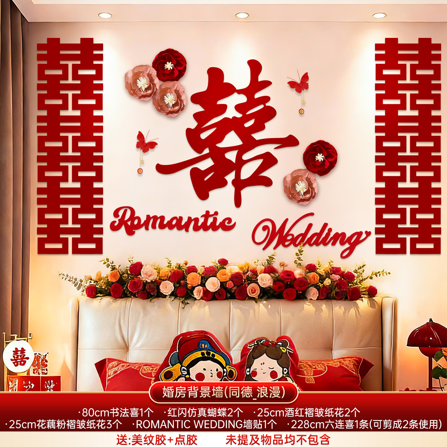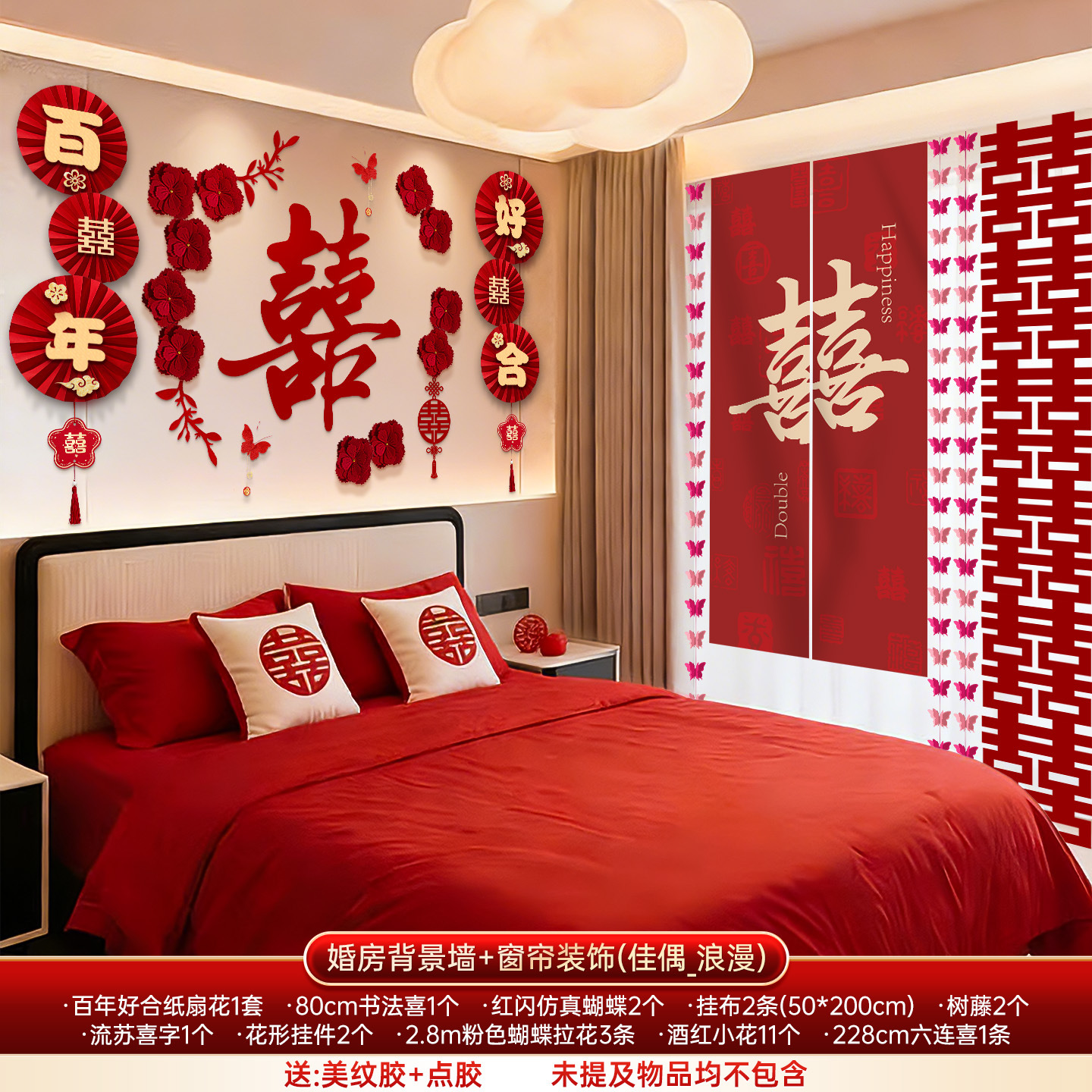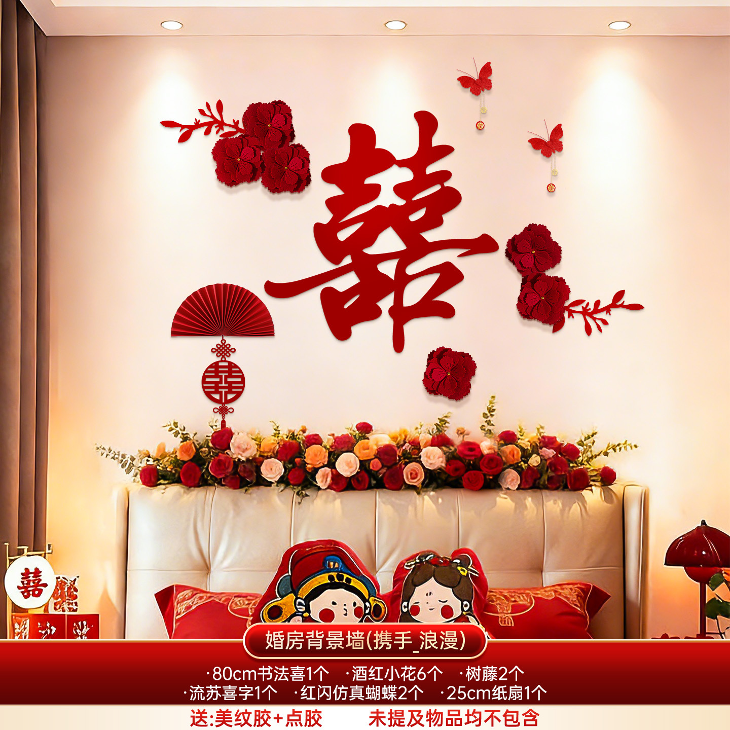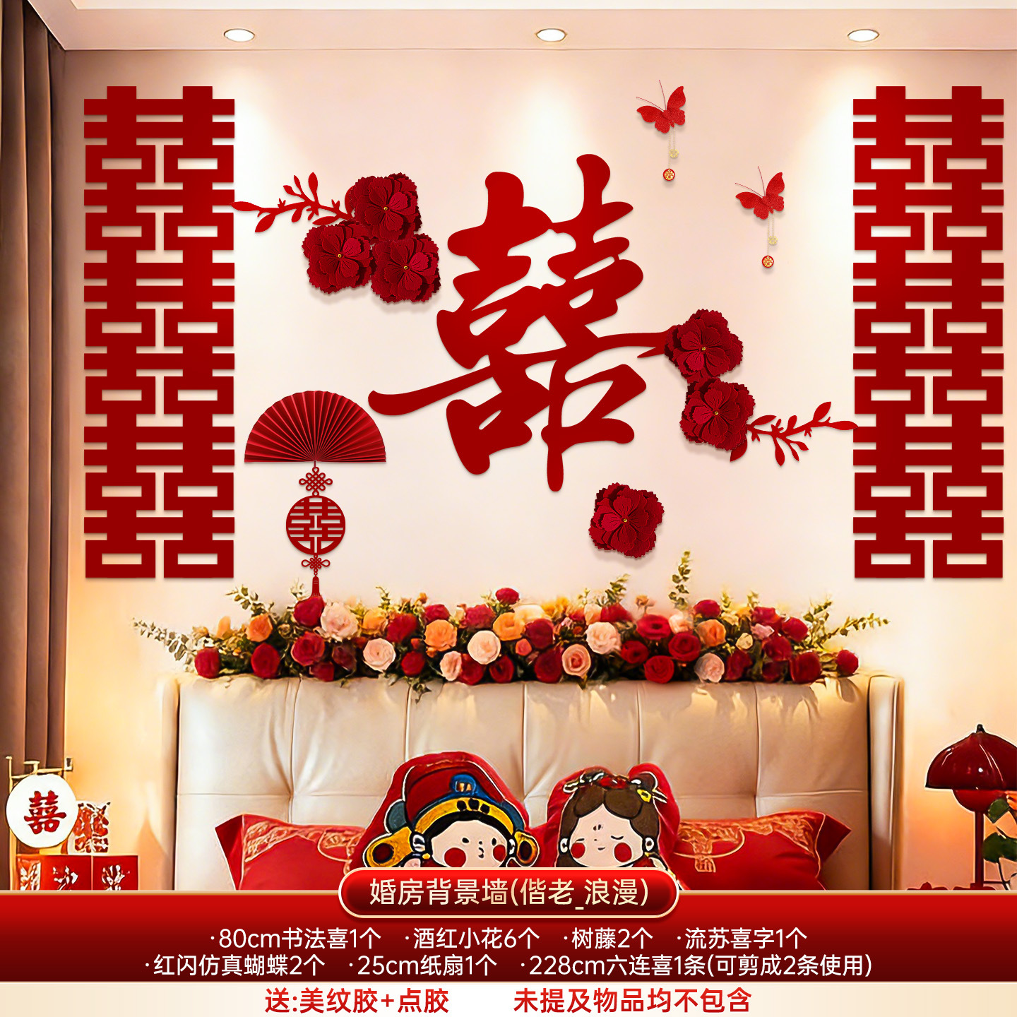 婚房布置套装结婚背景墙装饰女方婚礼新房卧室床头氛围感喜字拉花