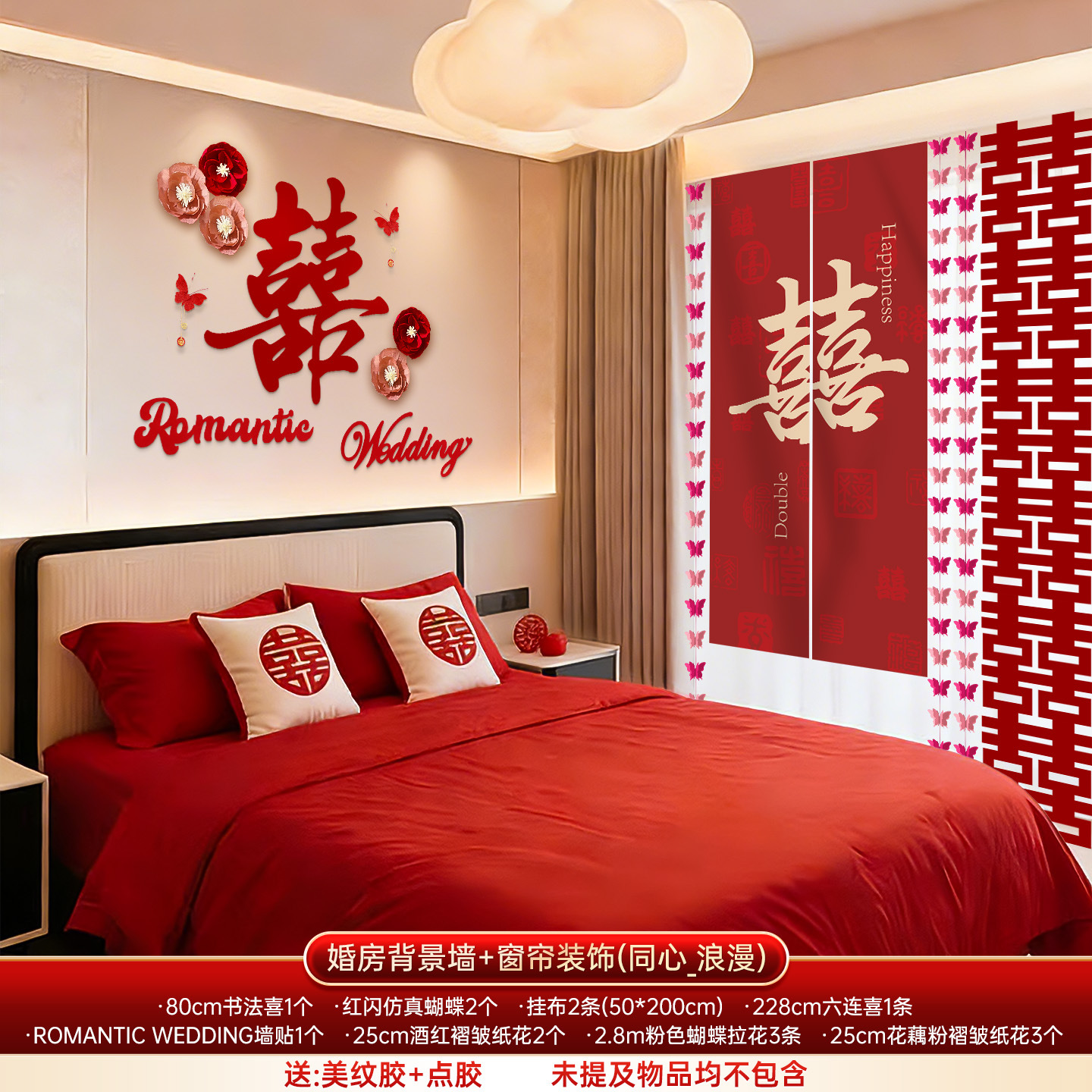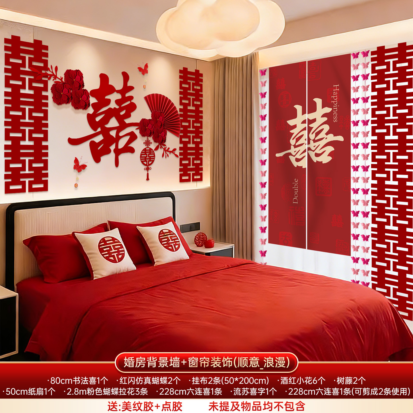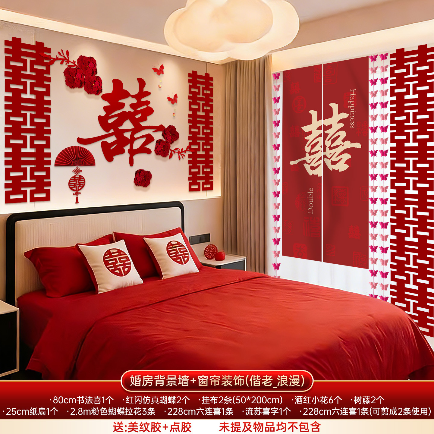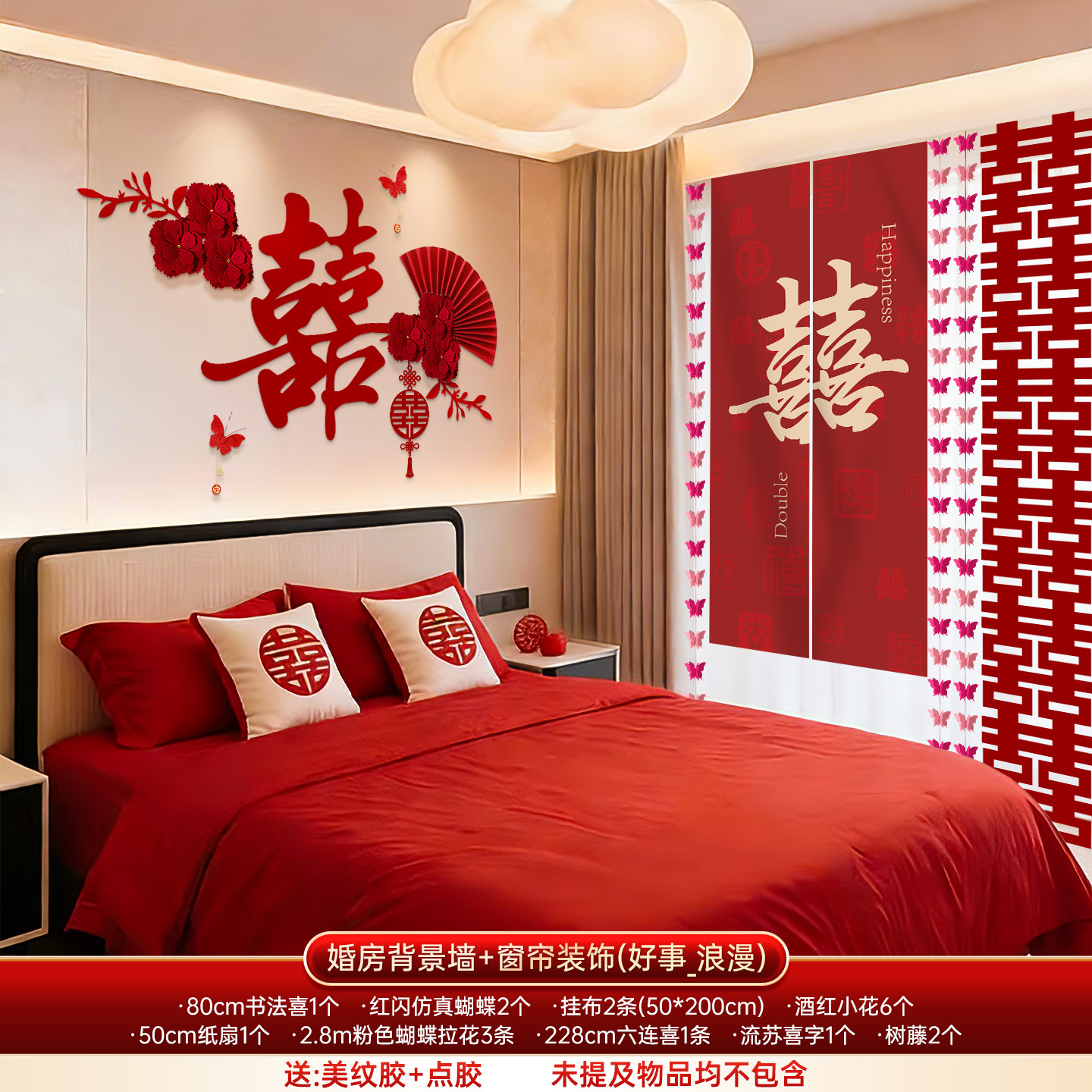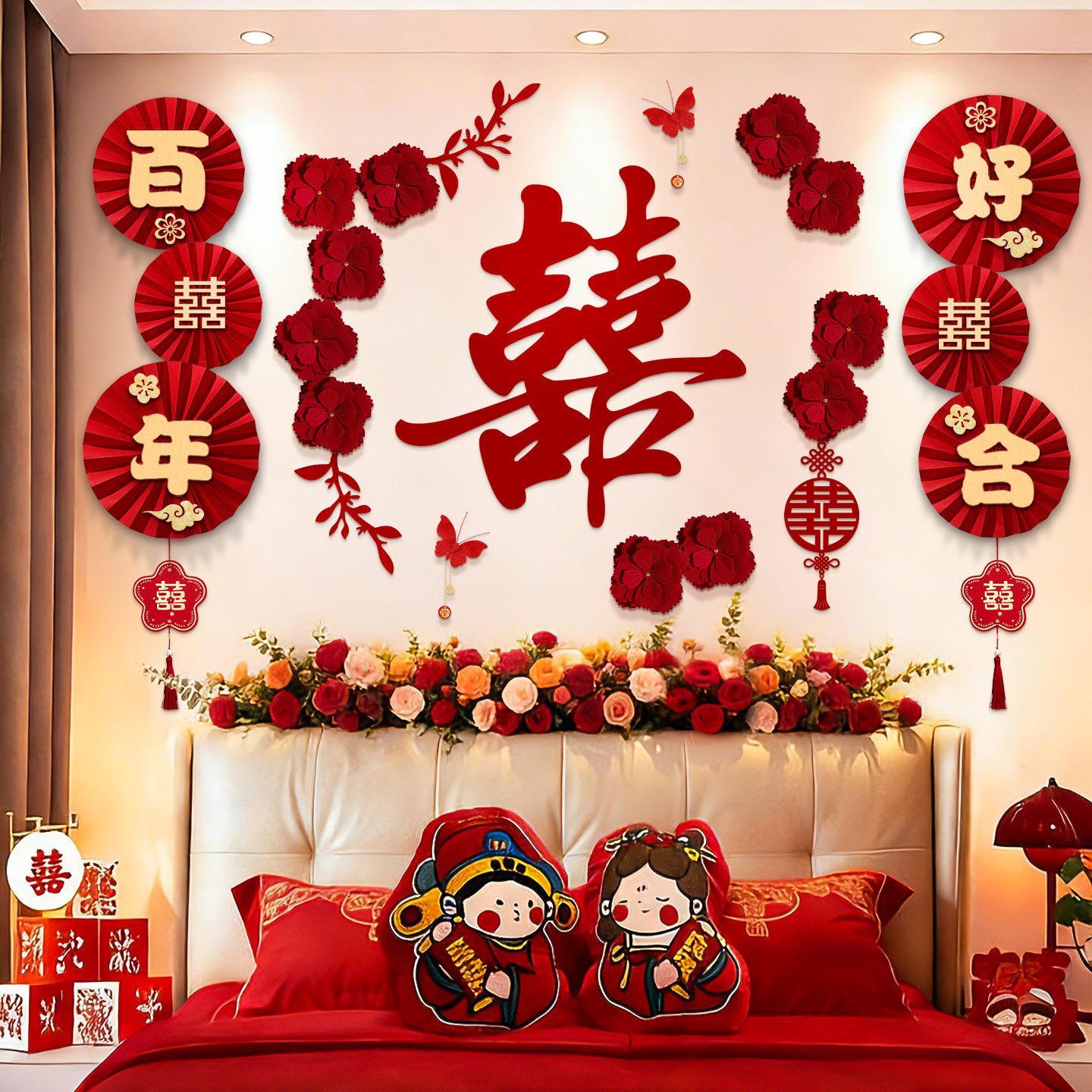 婚房布置套装结婚背景墙装饰女方婚礼新房卧室床头氛围感喜字拉花