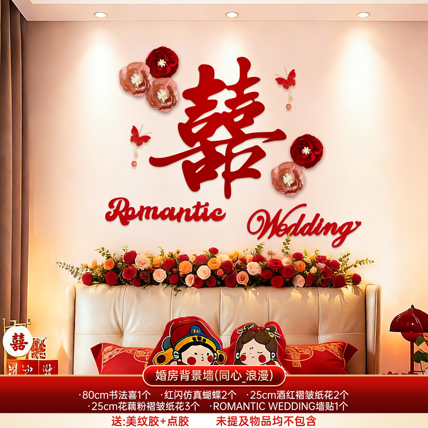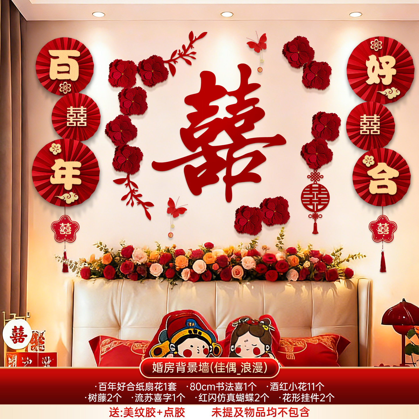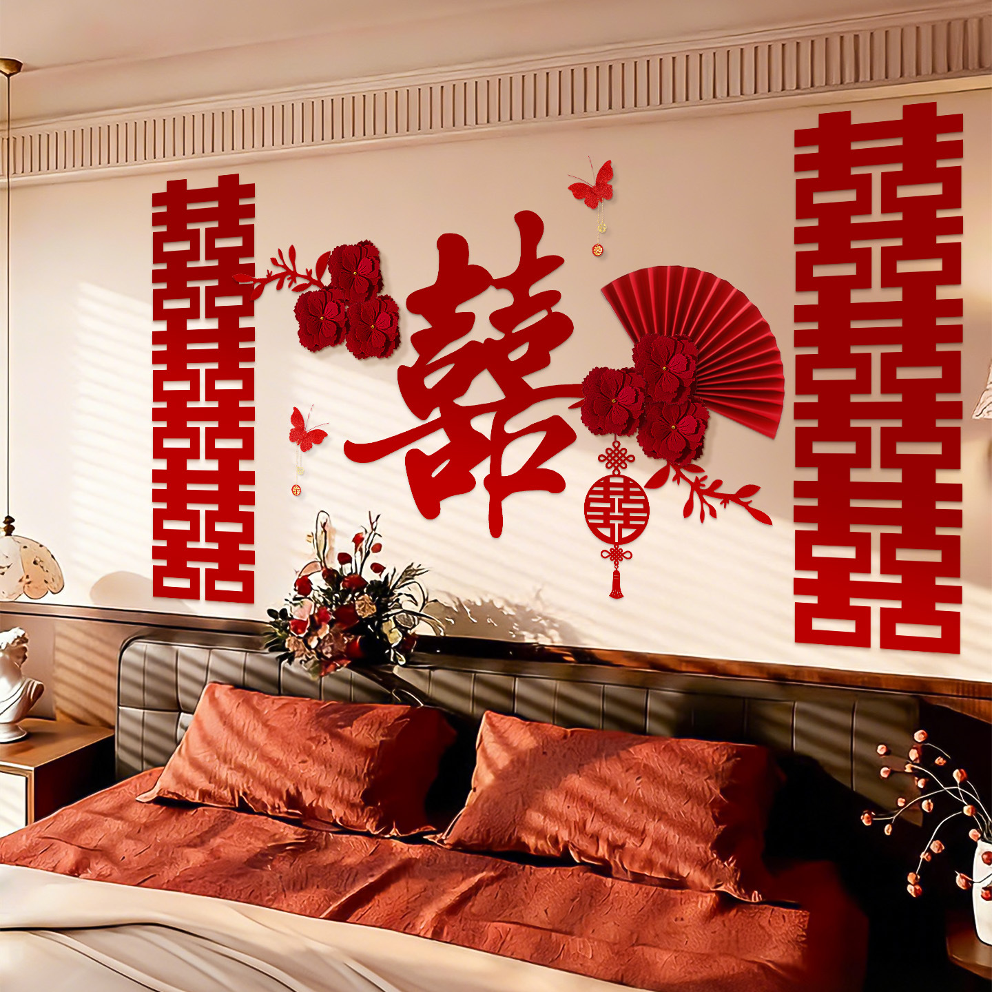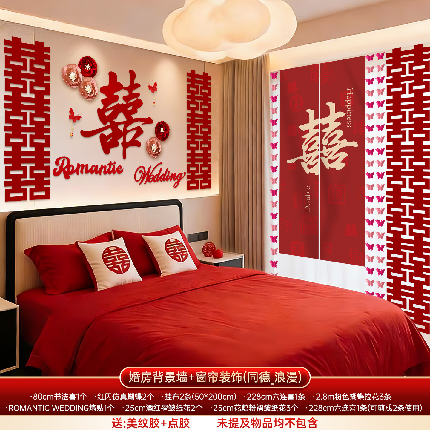 婚房布置套装结婚背景墙装饰女方婚礼新房卧室床头氛围感喜字拉花