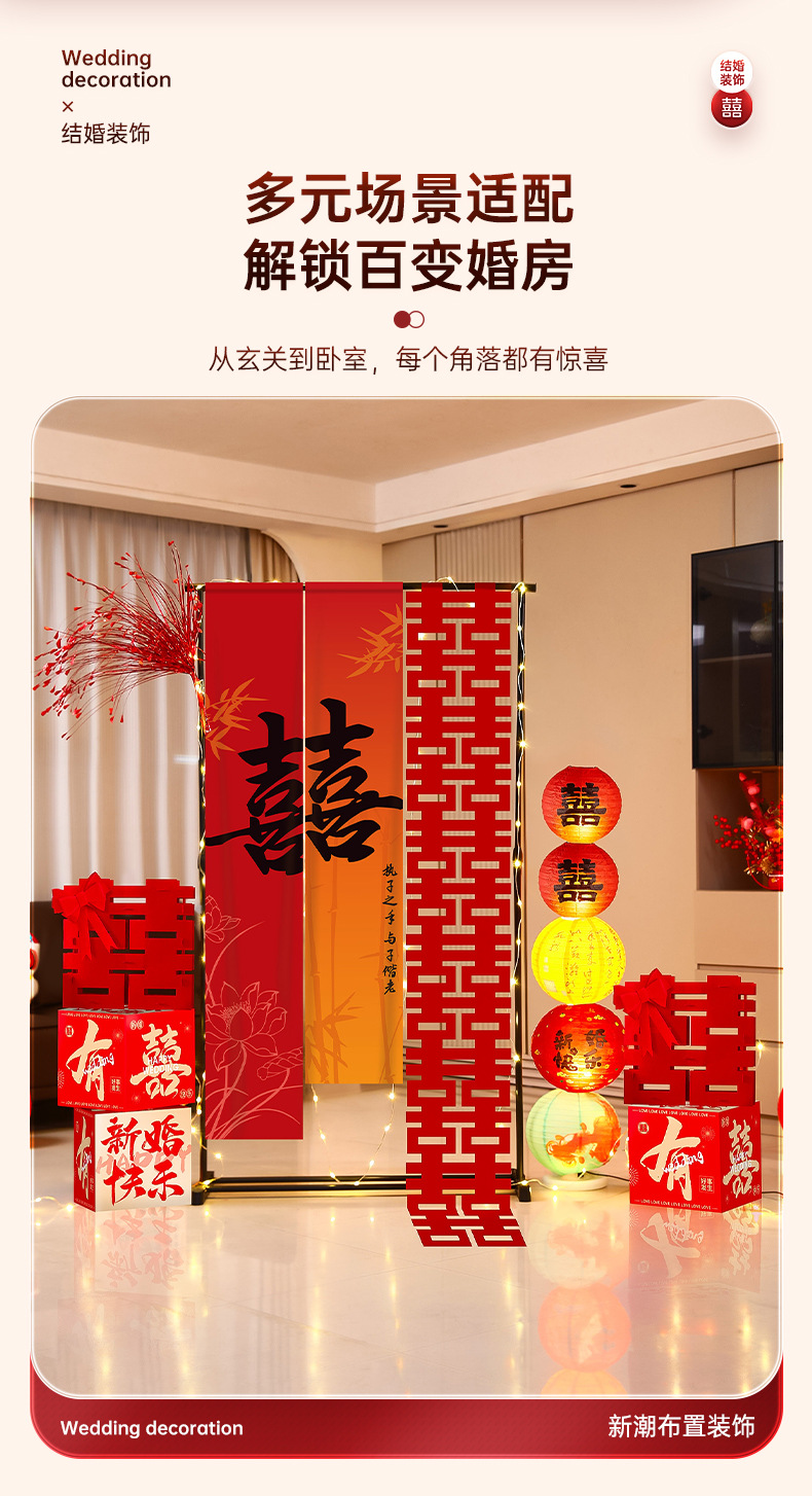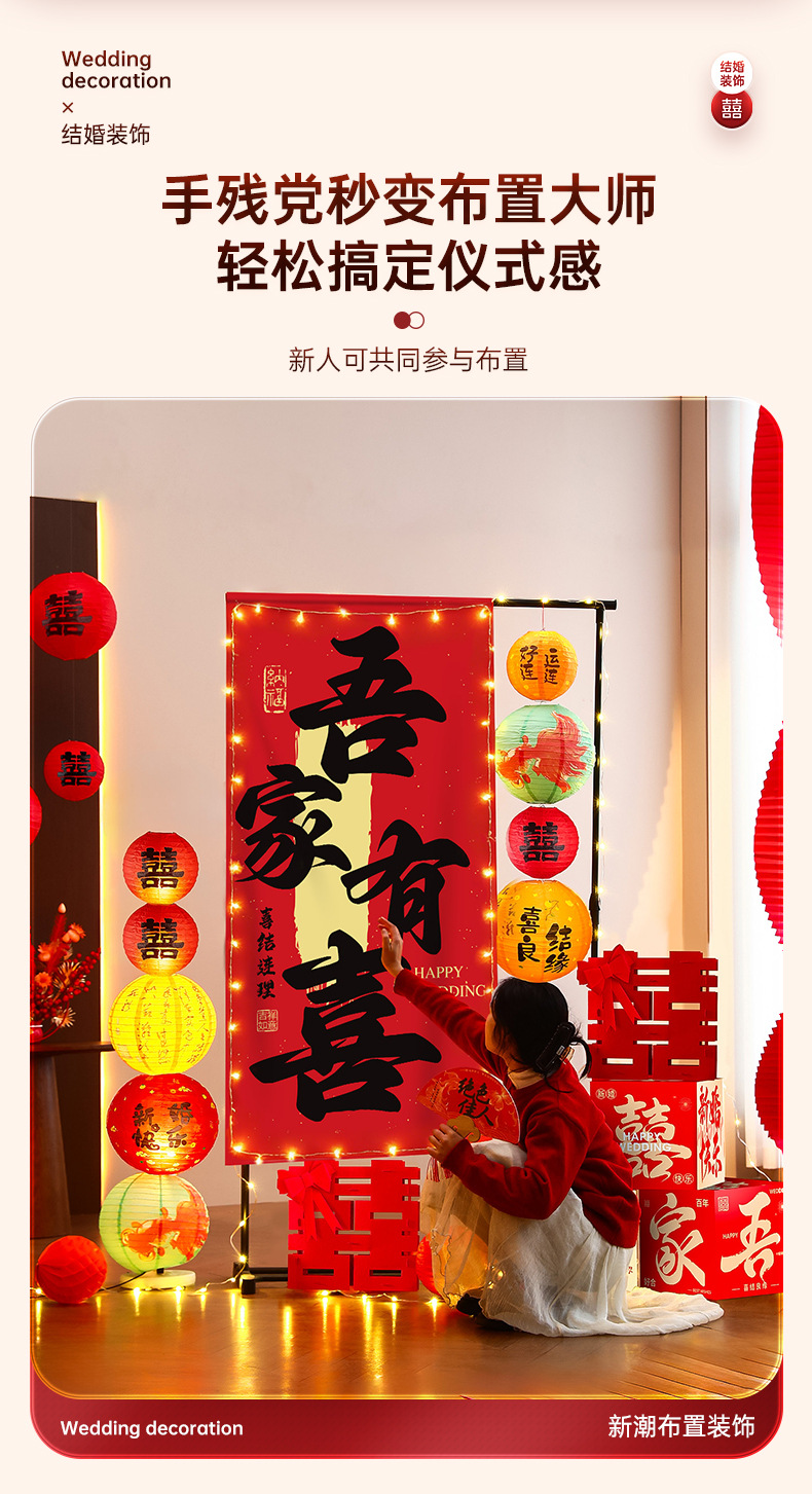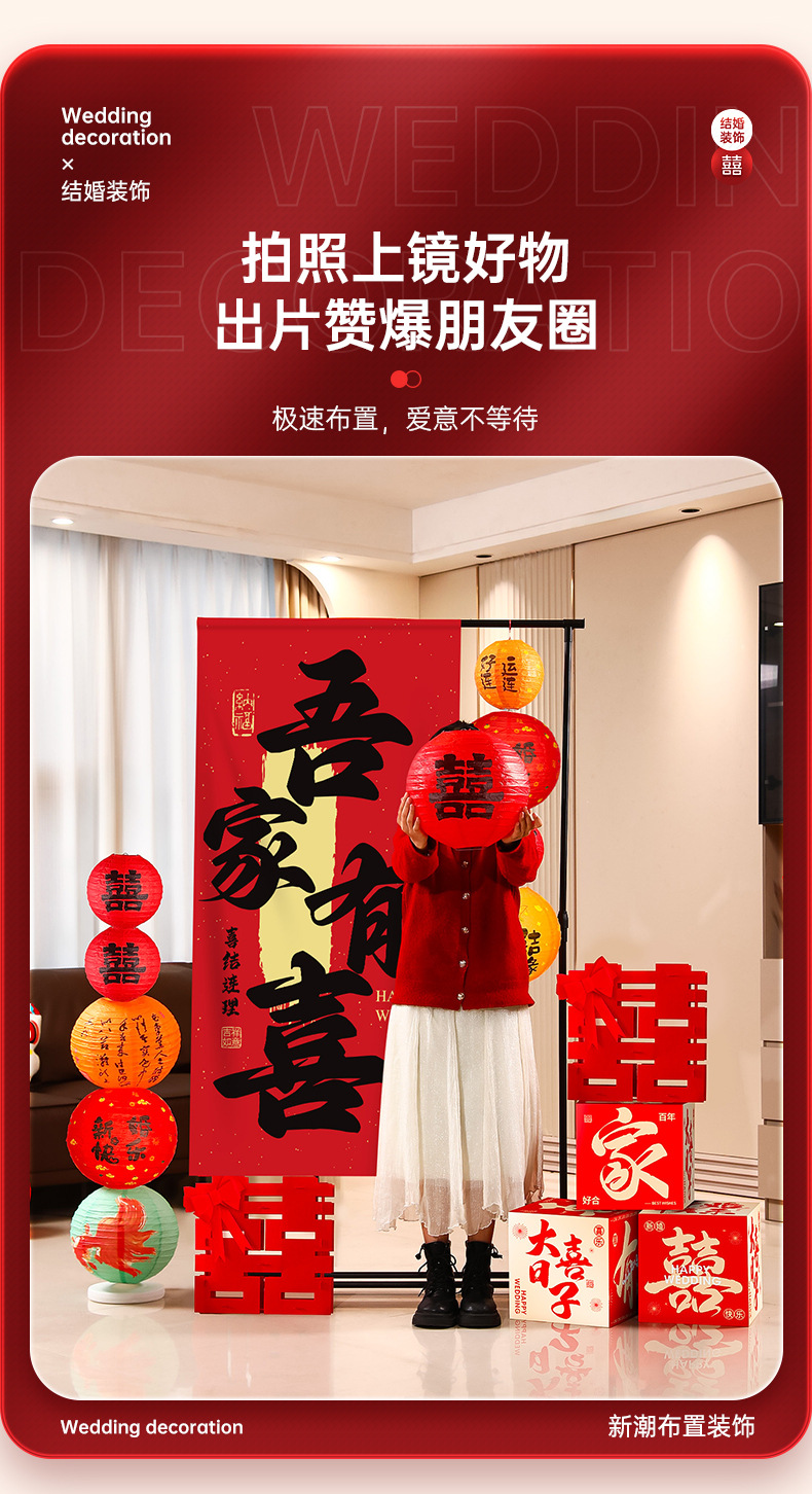 结婚背景墙装饰挂布晨袍拍照道具氛围感婚房布置套装婚礼迎宾摆件