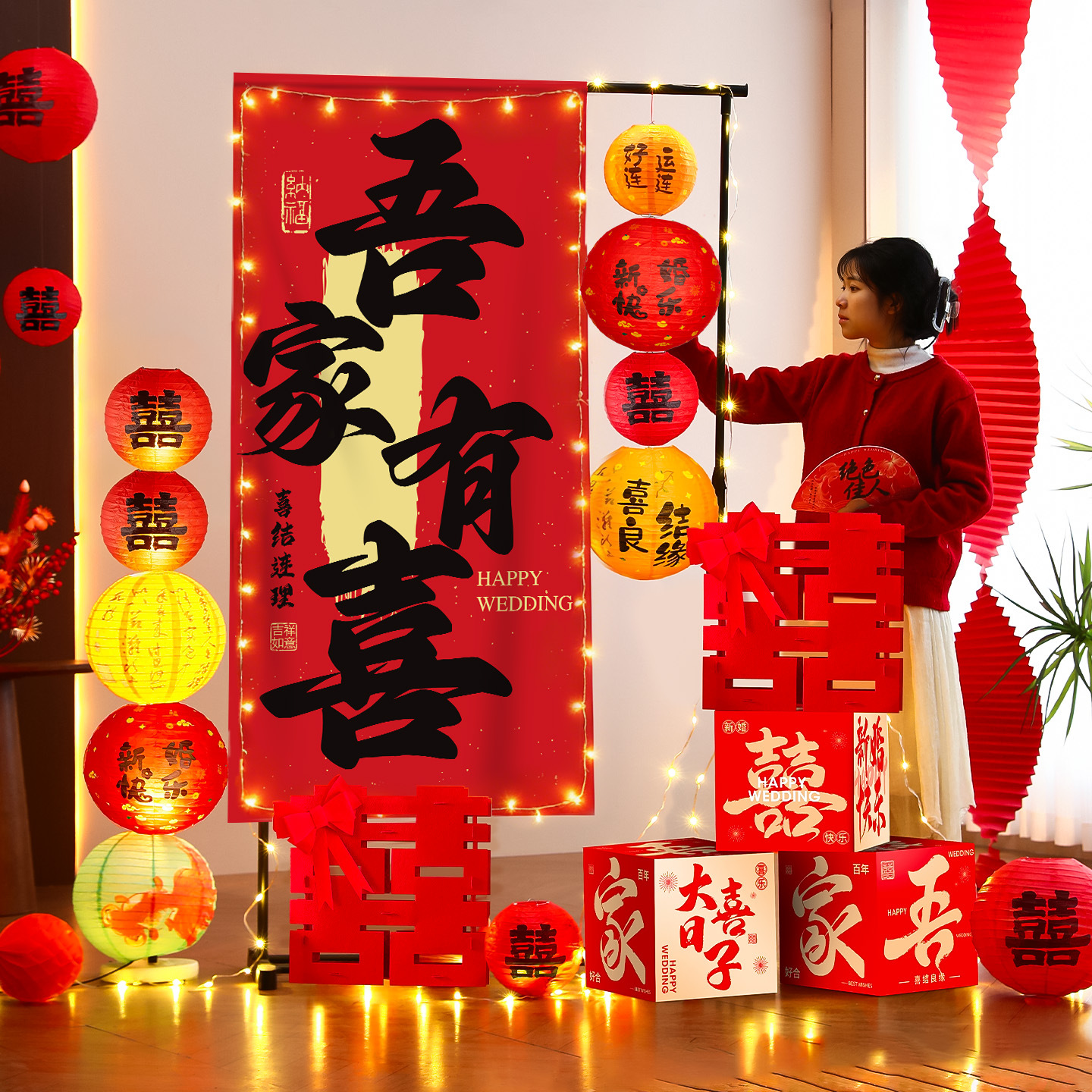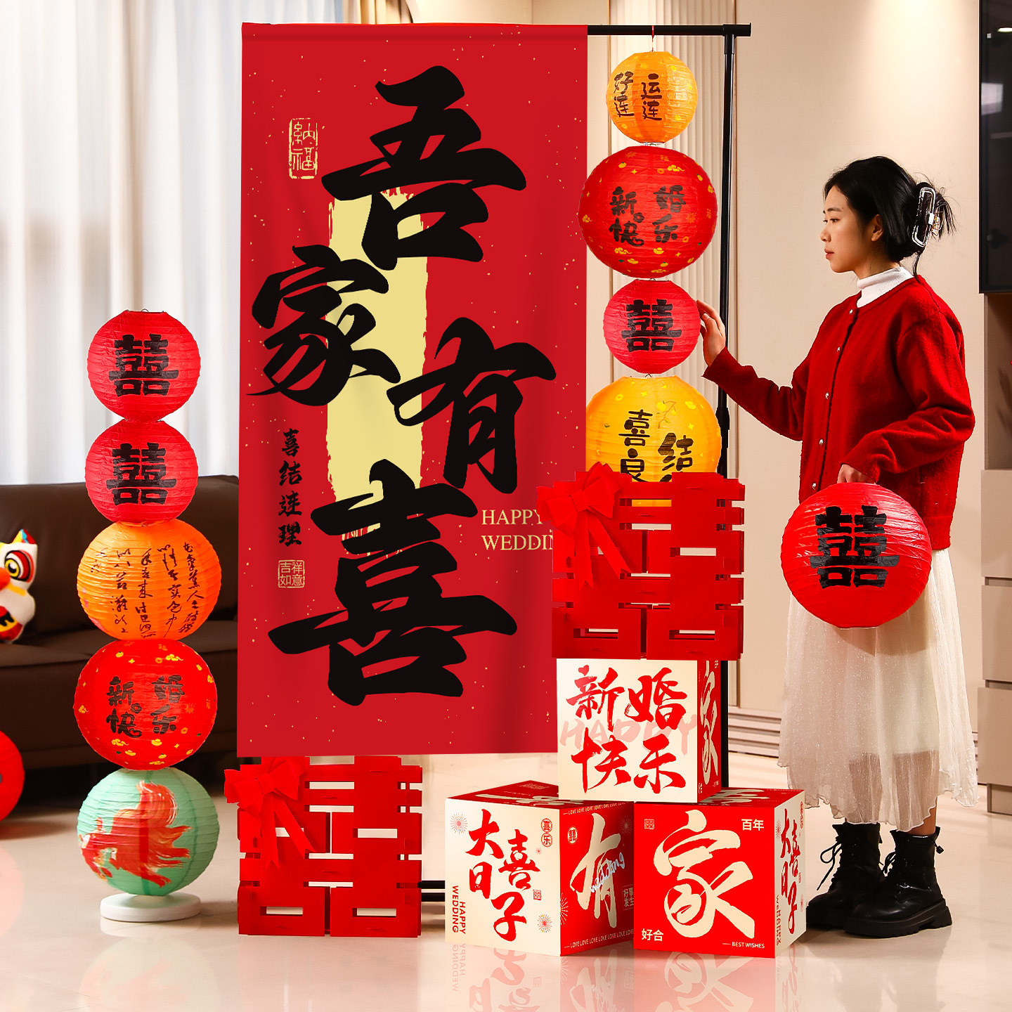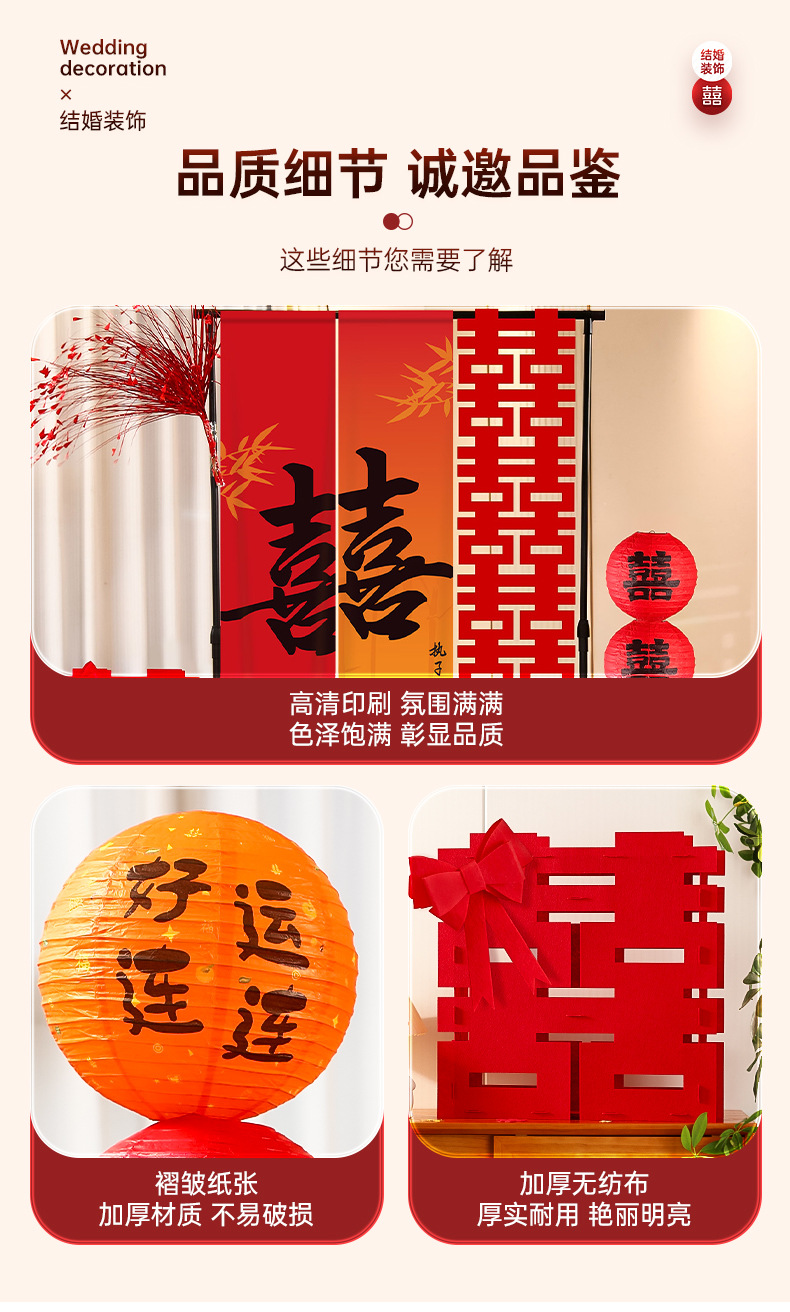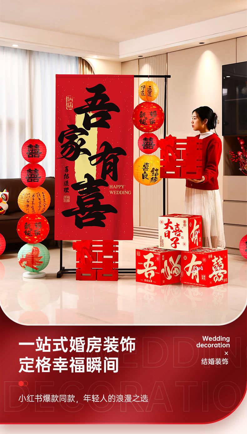 结婚背景墙装饰挂布晨袍拍照道具氛围感婚房布置套装婚礼迎宾摆件