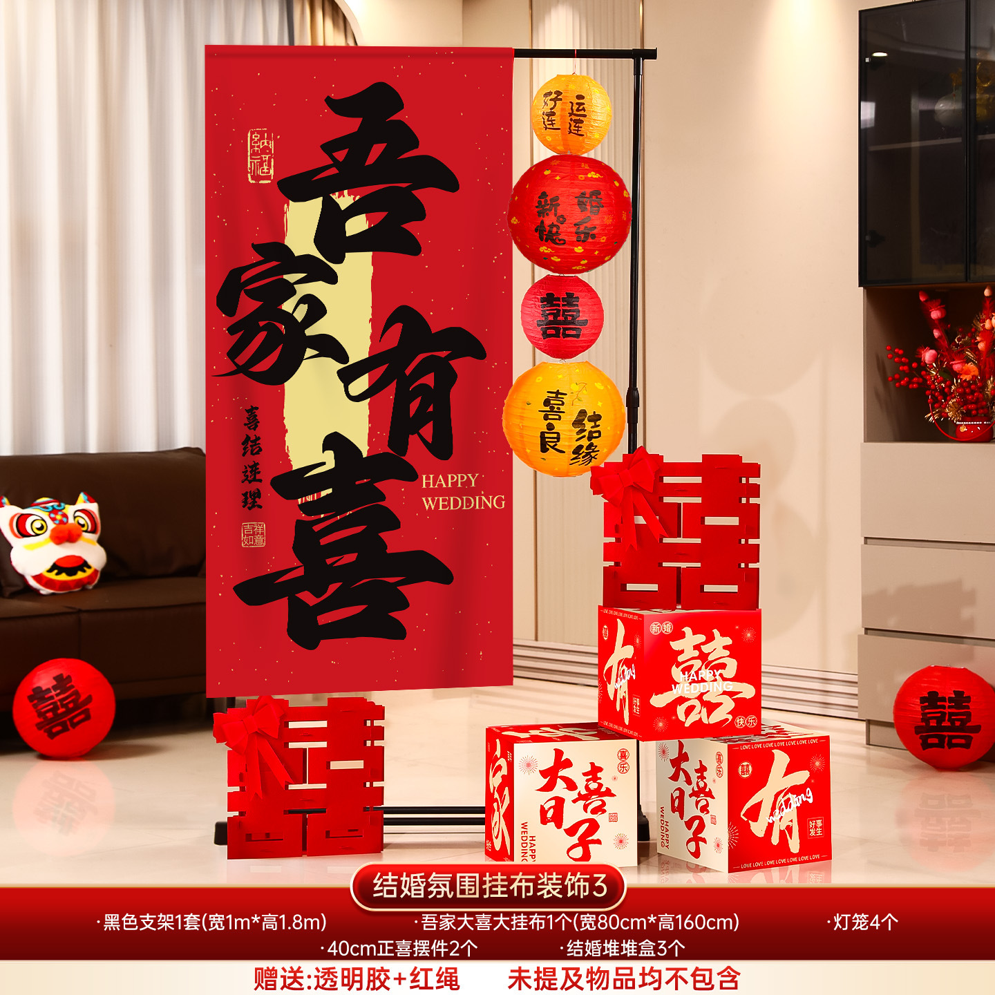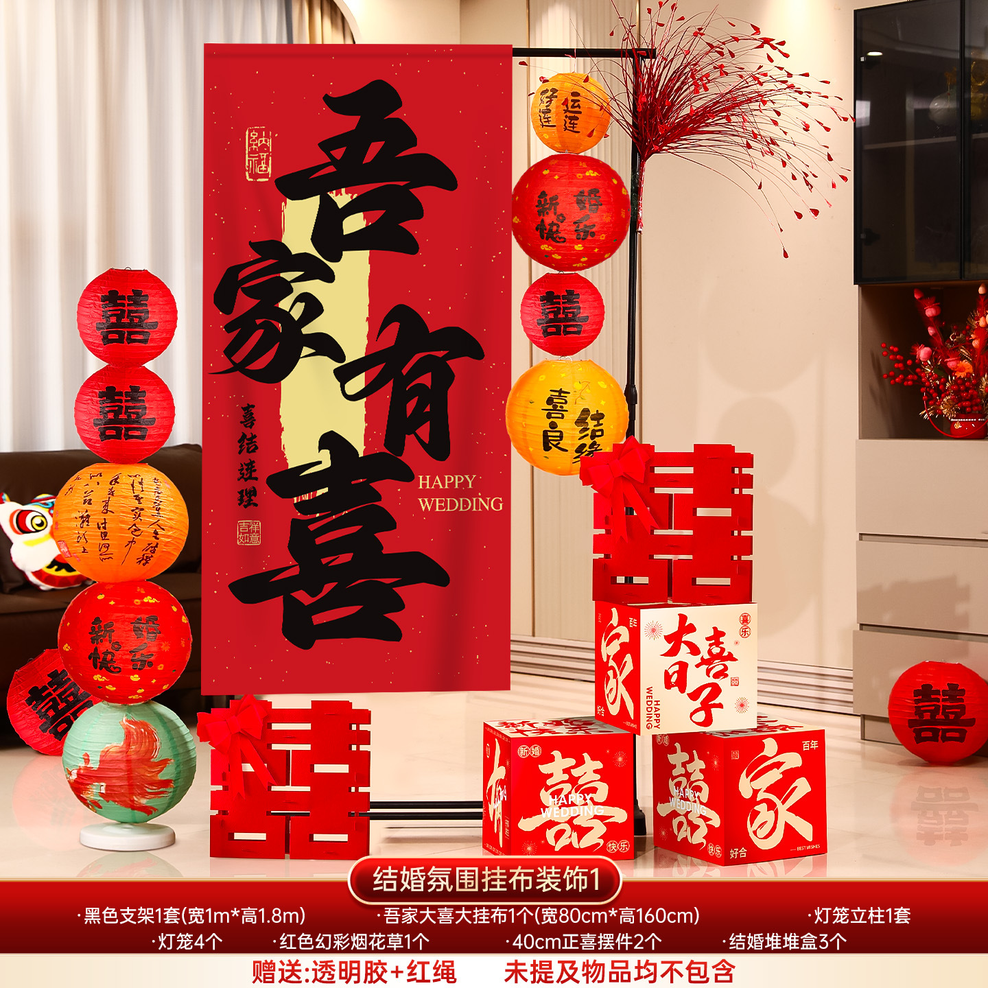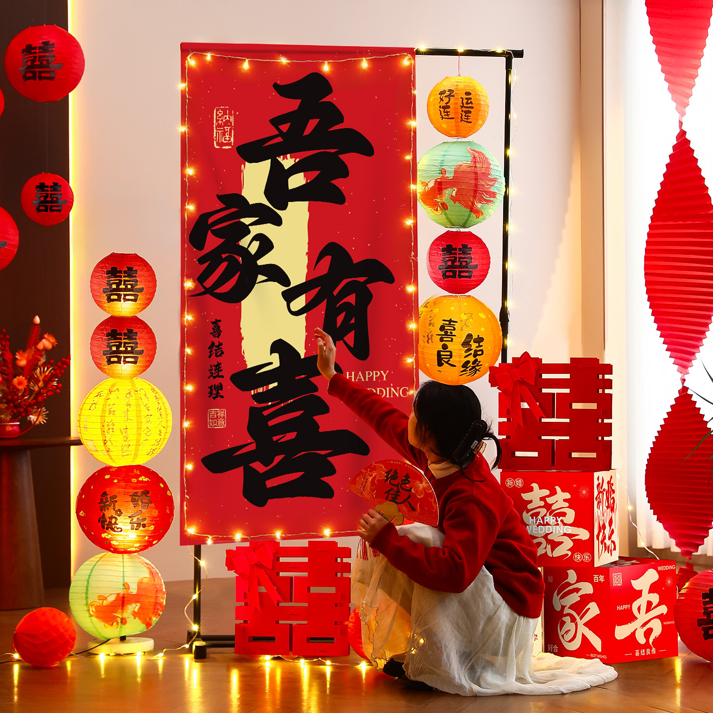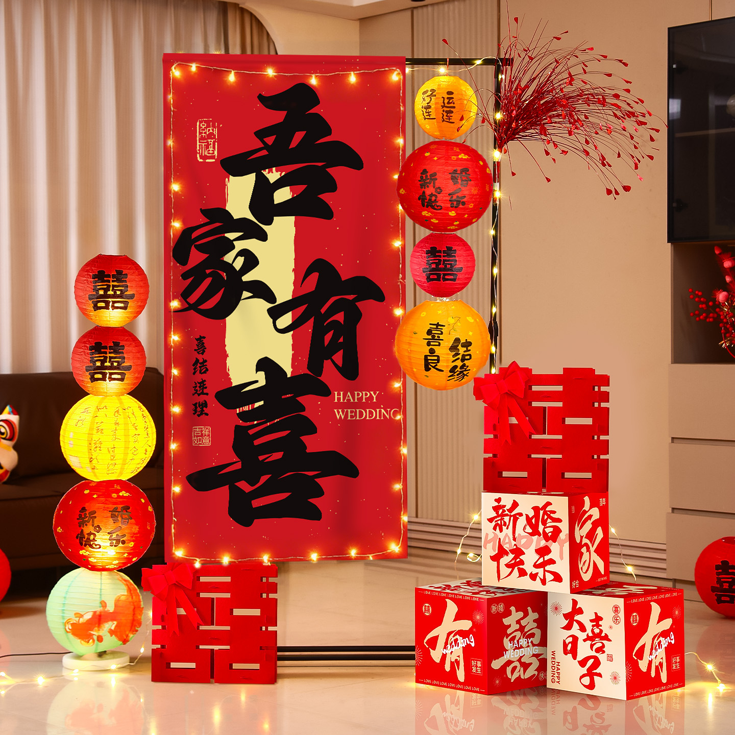 婚房布置套装结婚礼背景墙装饰道具新房客厅酒店房间条幅迎宾摆件