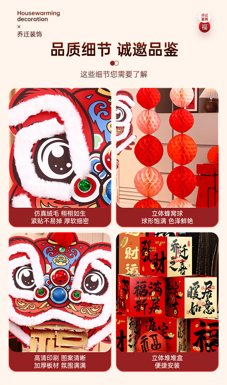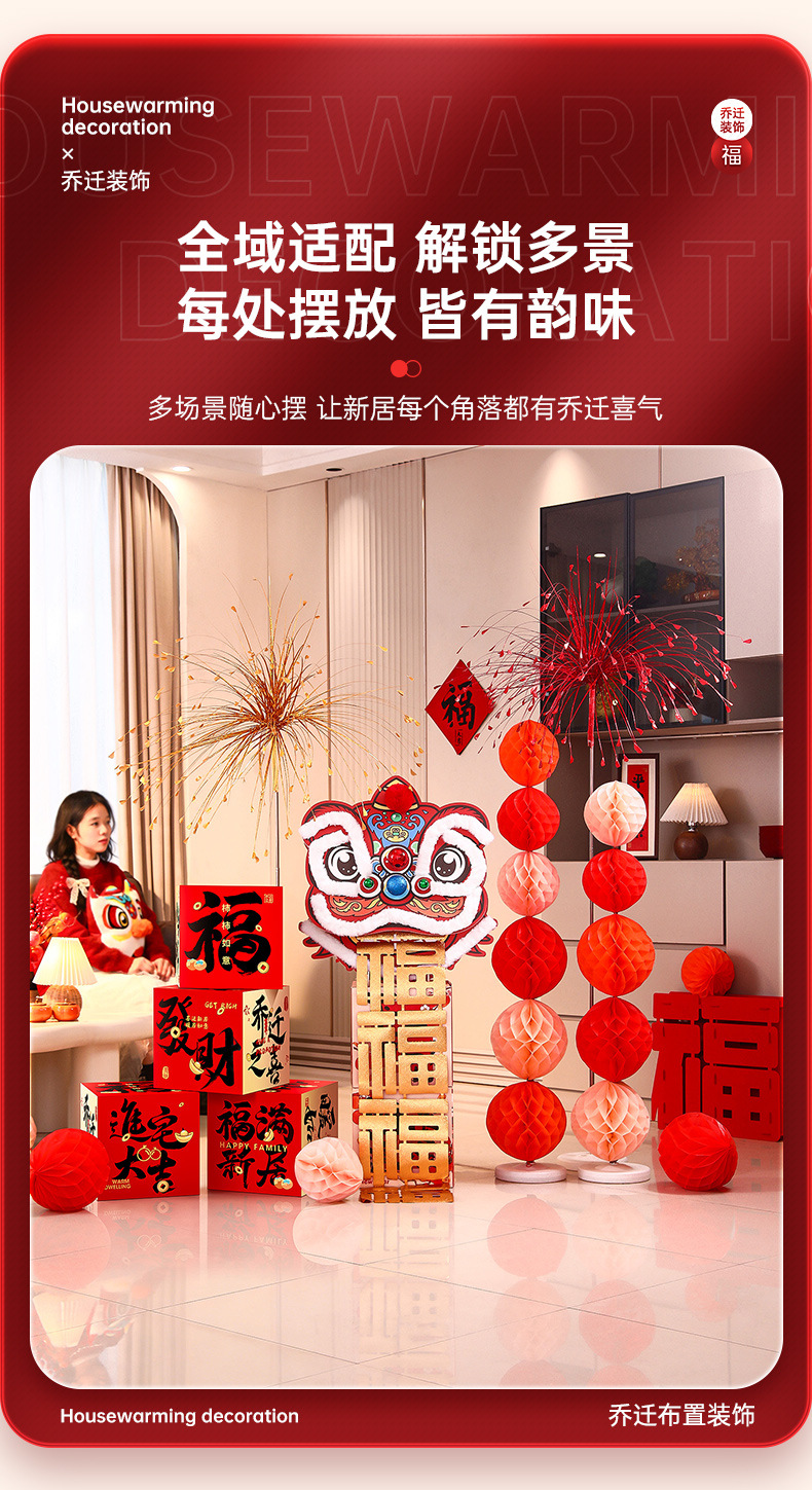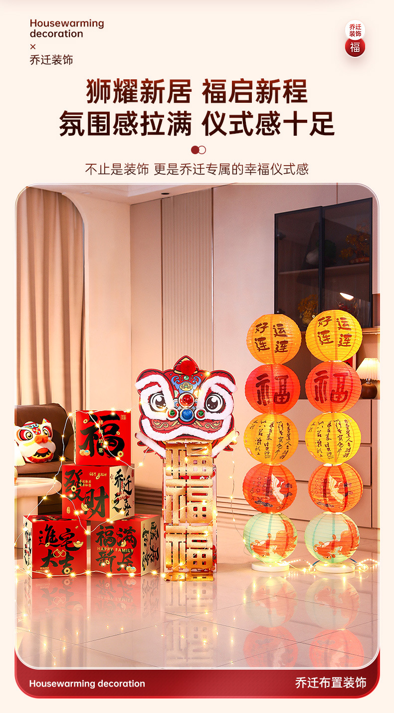 乔迁之喜装饰新居客厅氛围布置福字醒狮摆件新房搬家入宅仪式用品