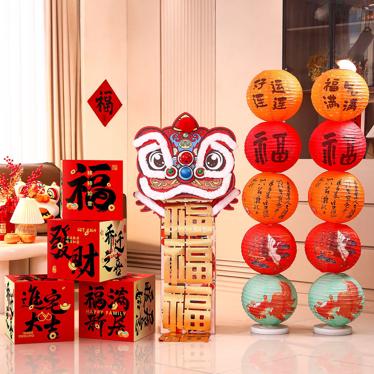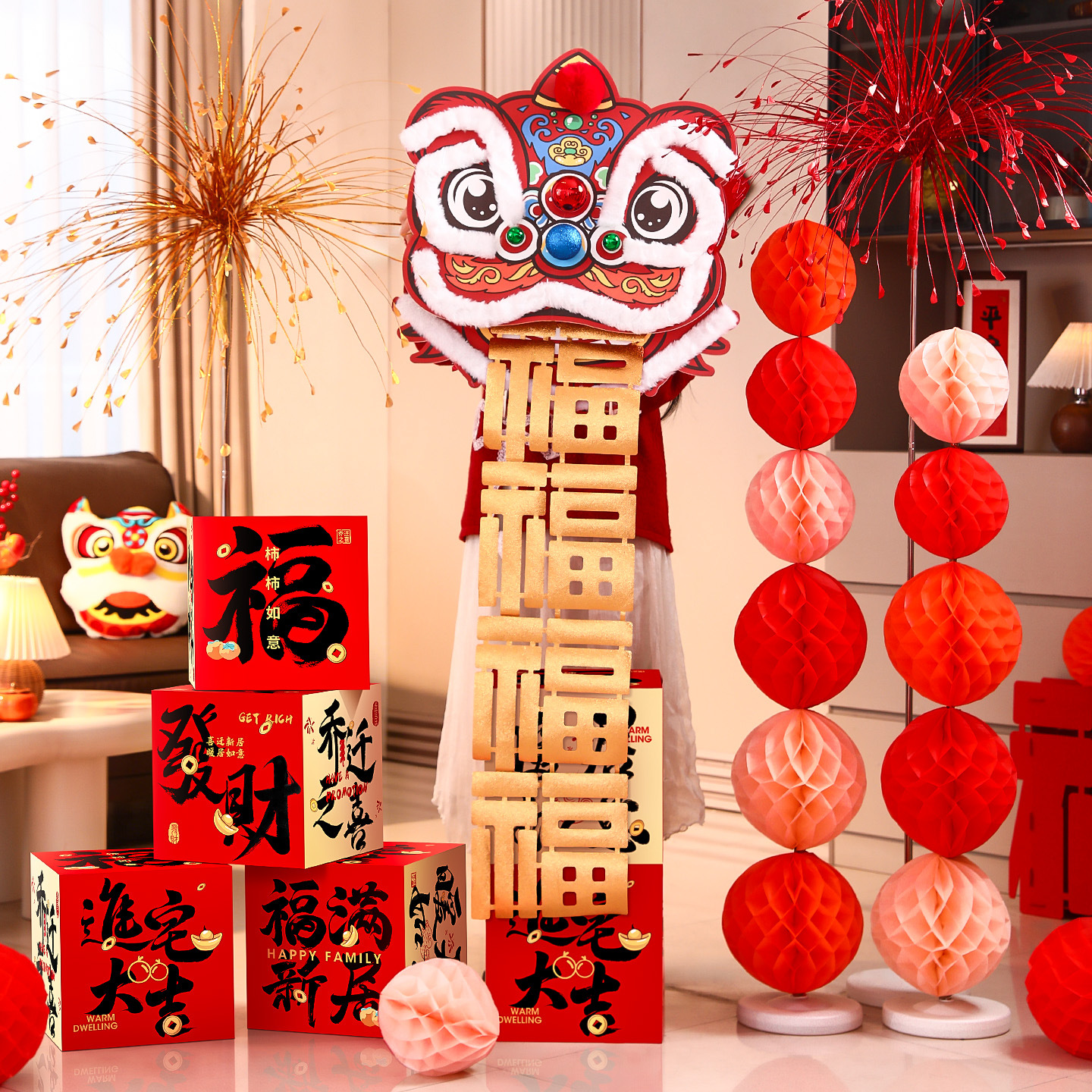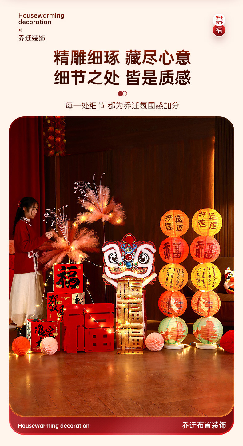 乔迁之喜装饰新居客厅氛围布置福字醒狮摆件新房搬家入宅仪式用品
