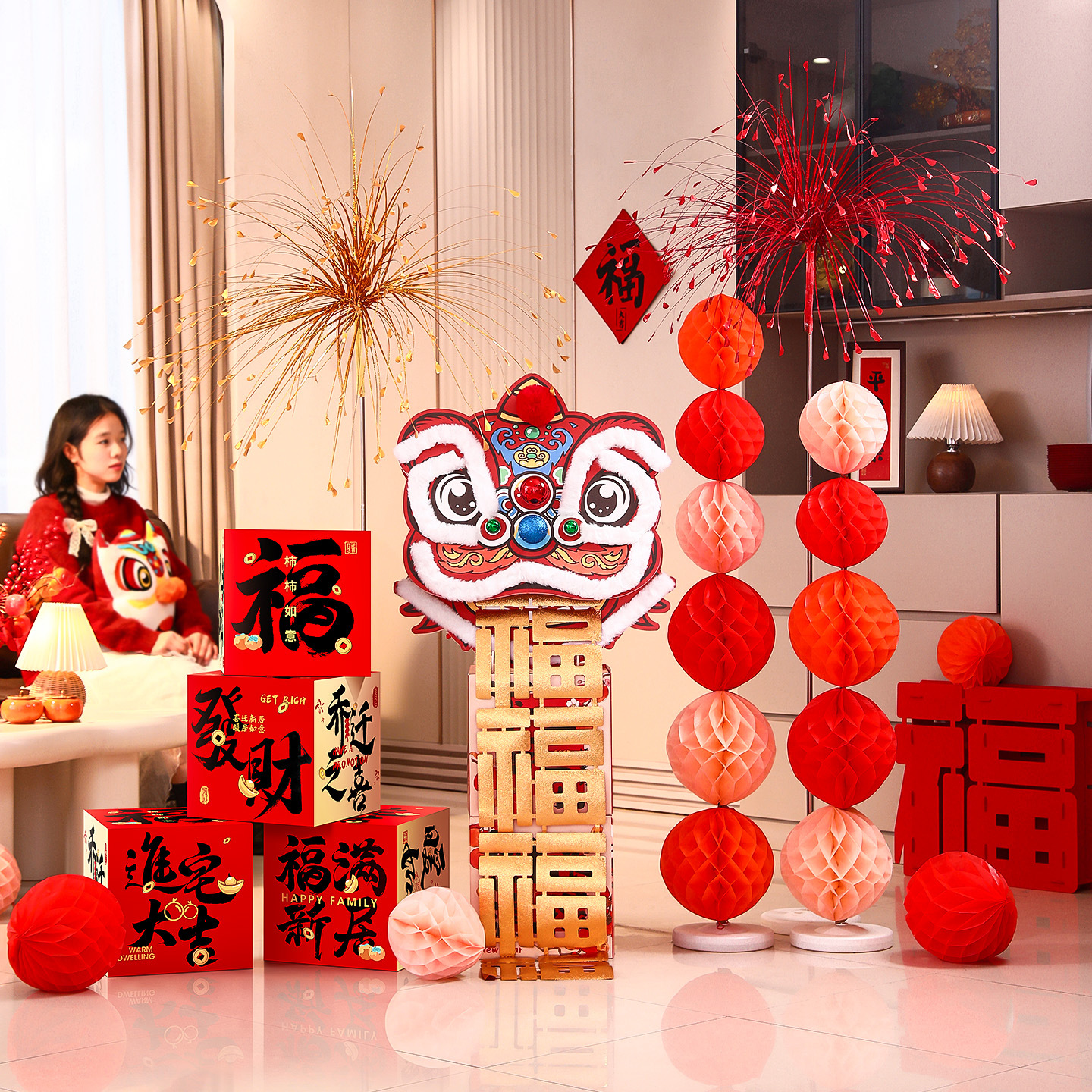 乔迁之喜装饰新居氛围场景布置醒狮迎宾牌摆件搬新家入宅仪式用品