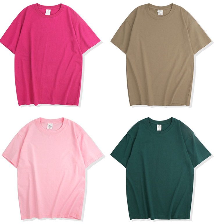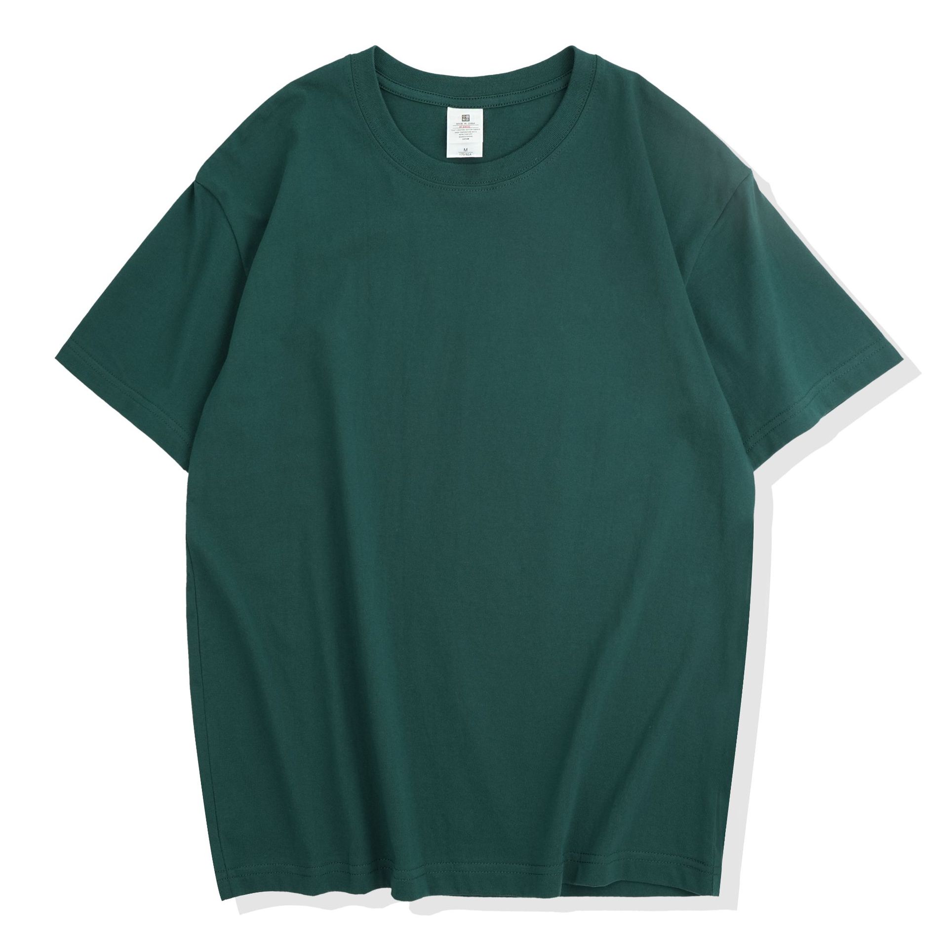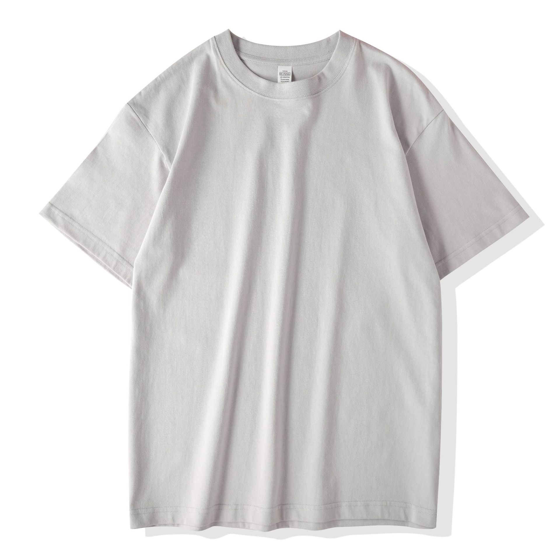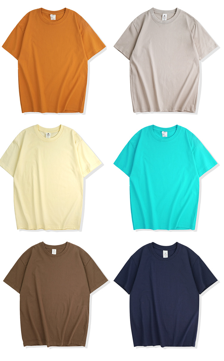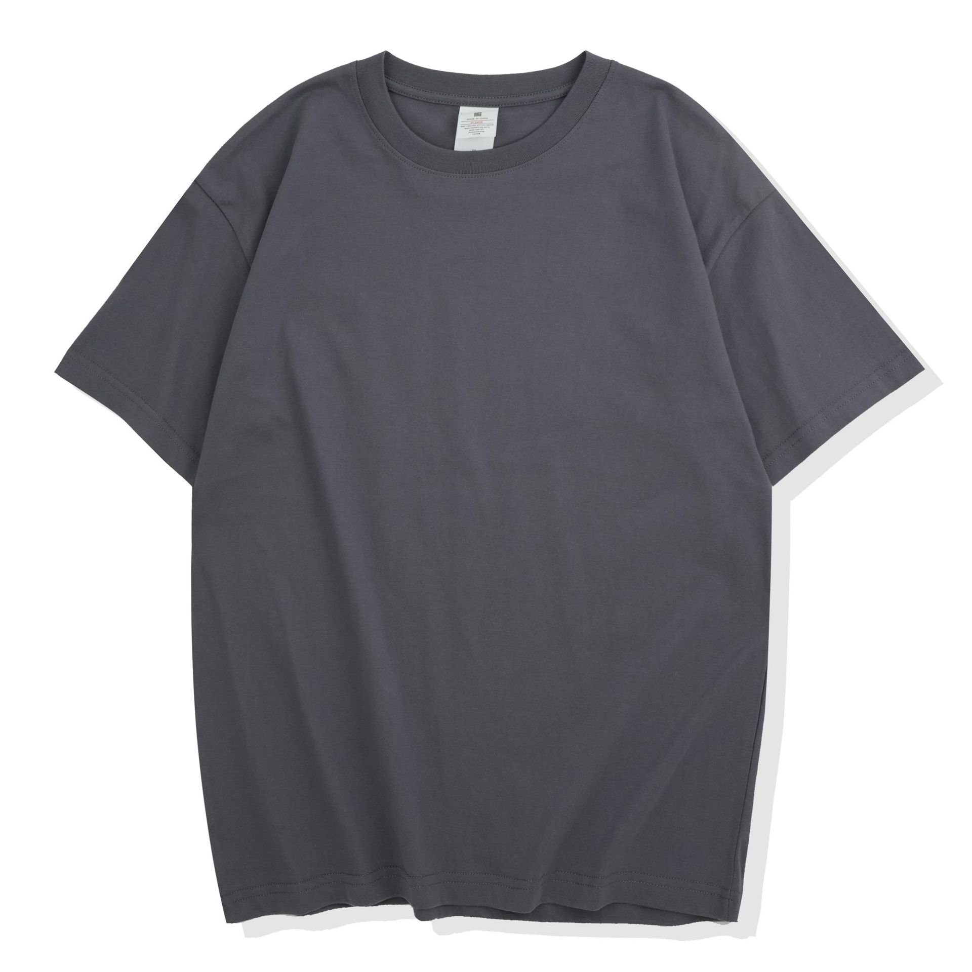 220克精梳纯棉圆领半袖落肩宽松重磅纯色t恤男夏季批发印LOGO