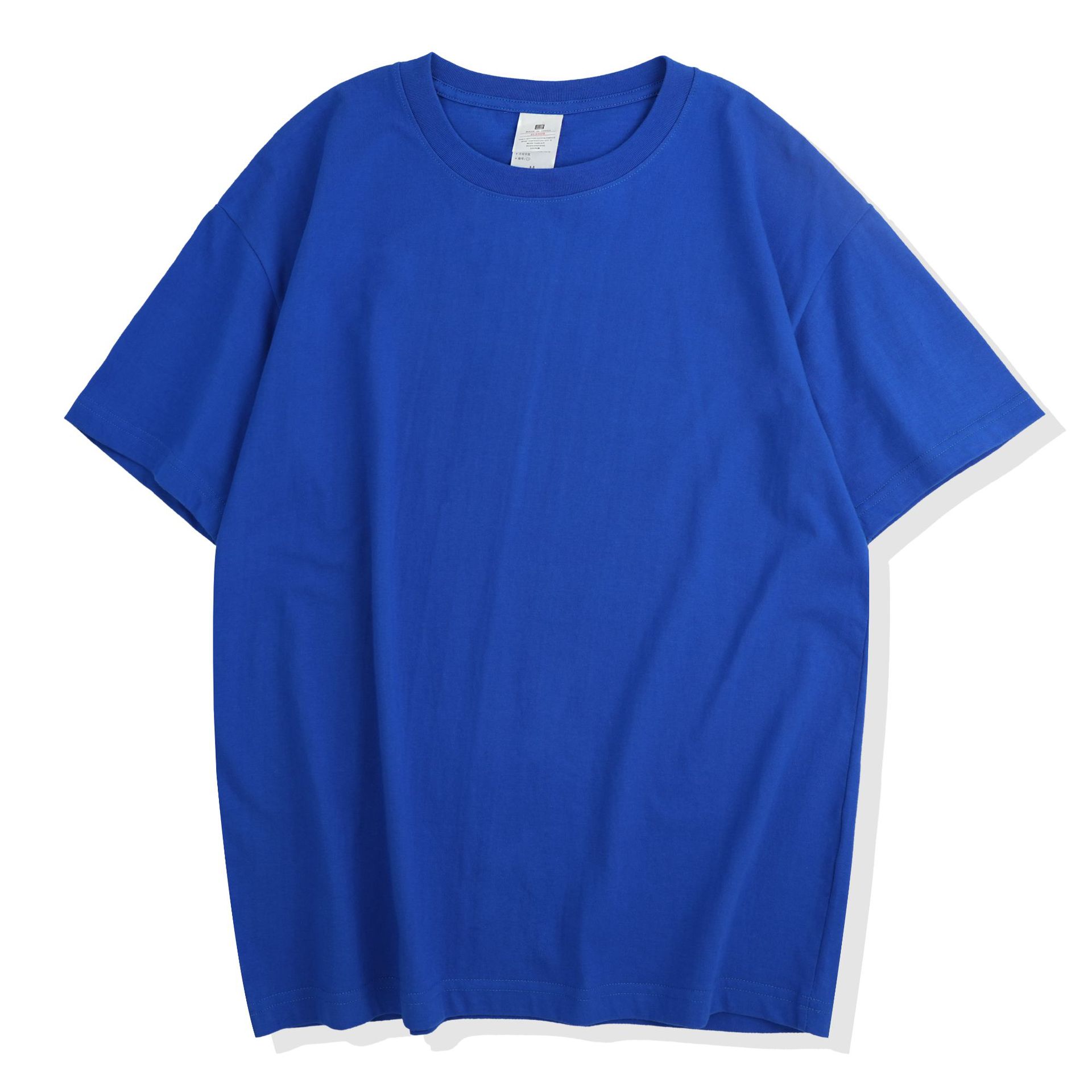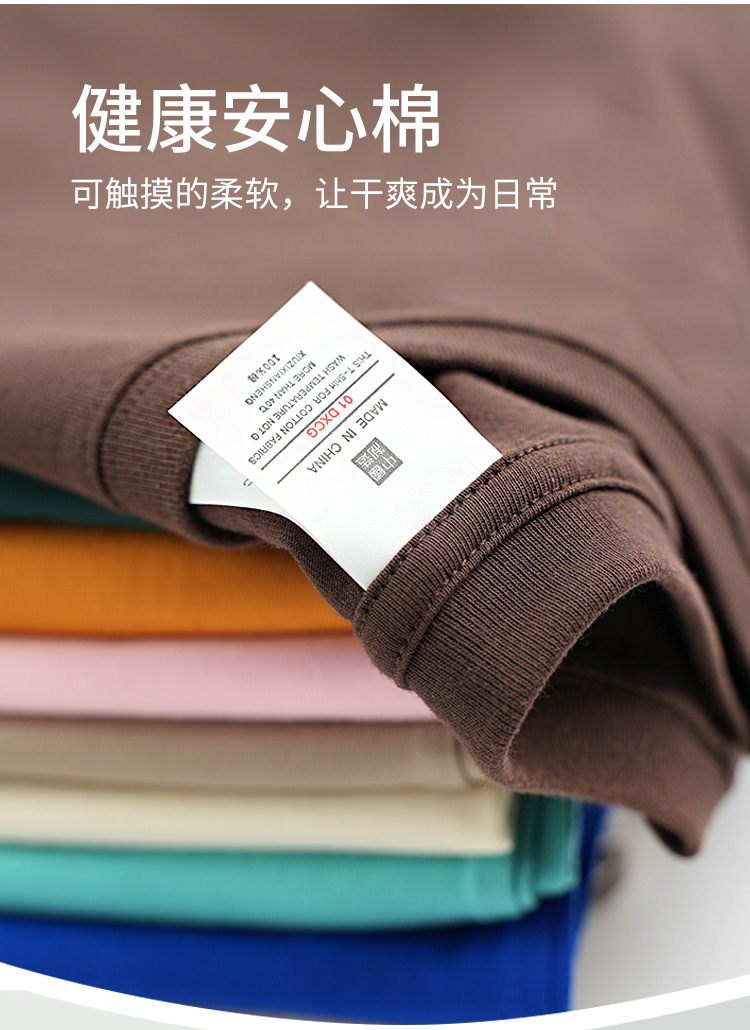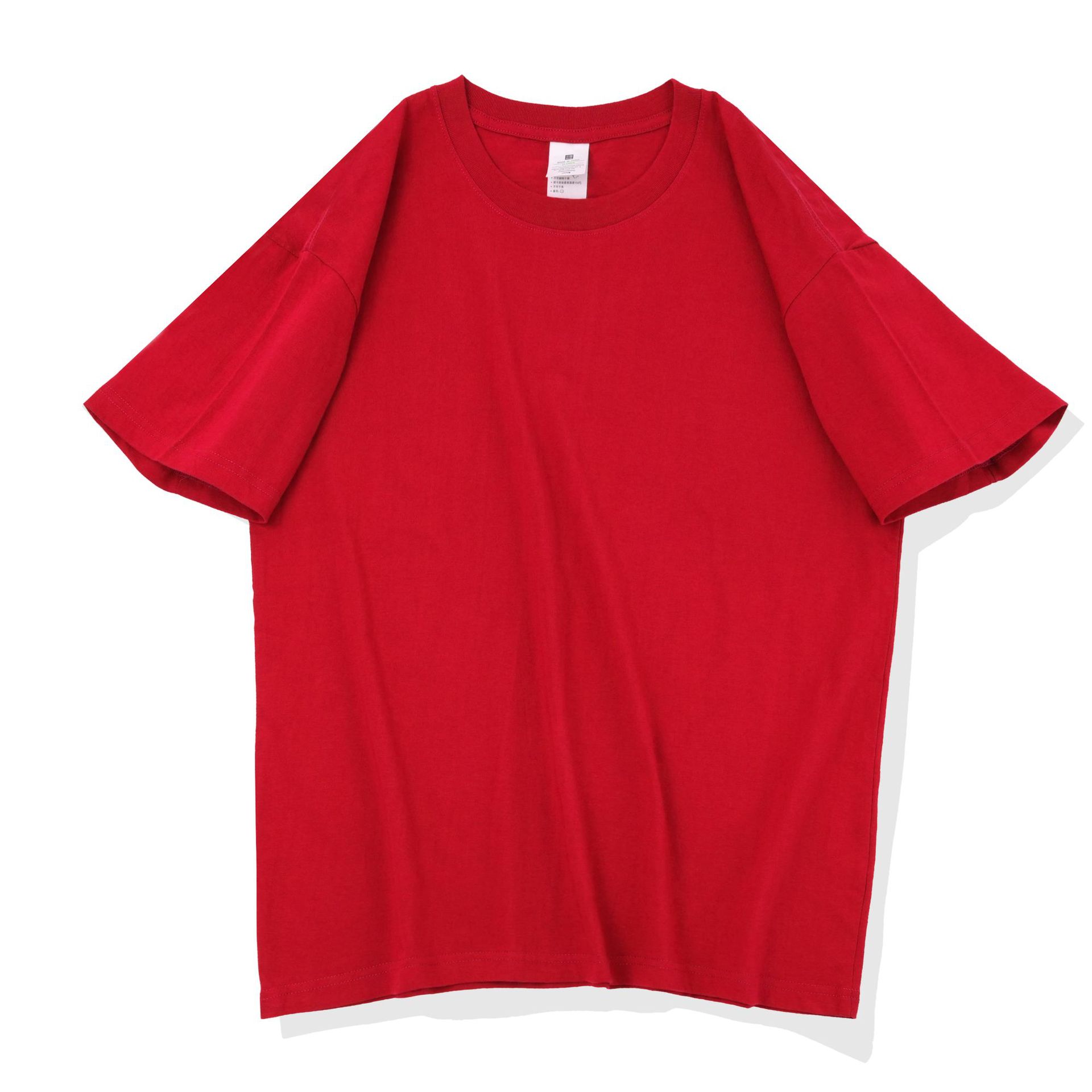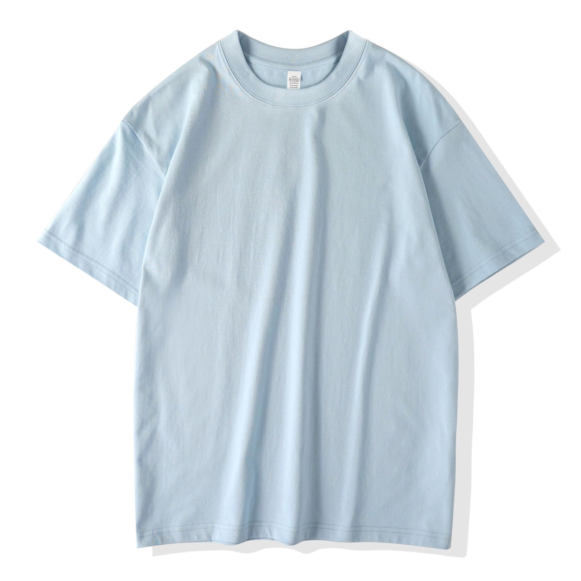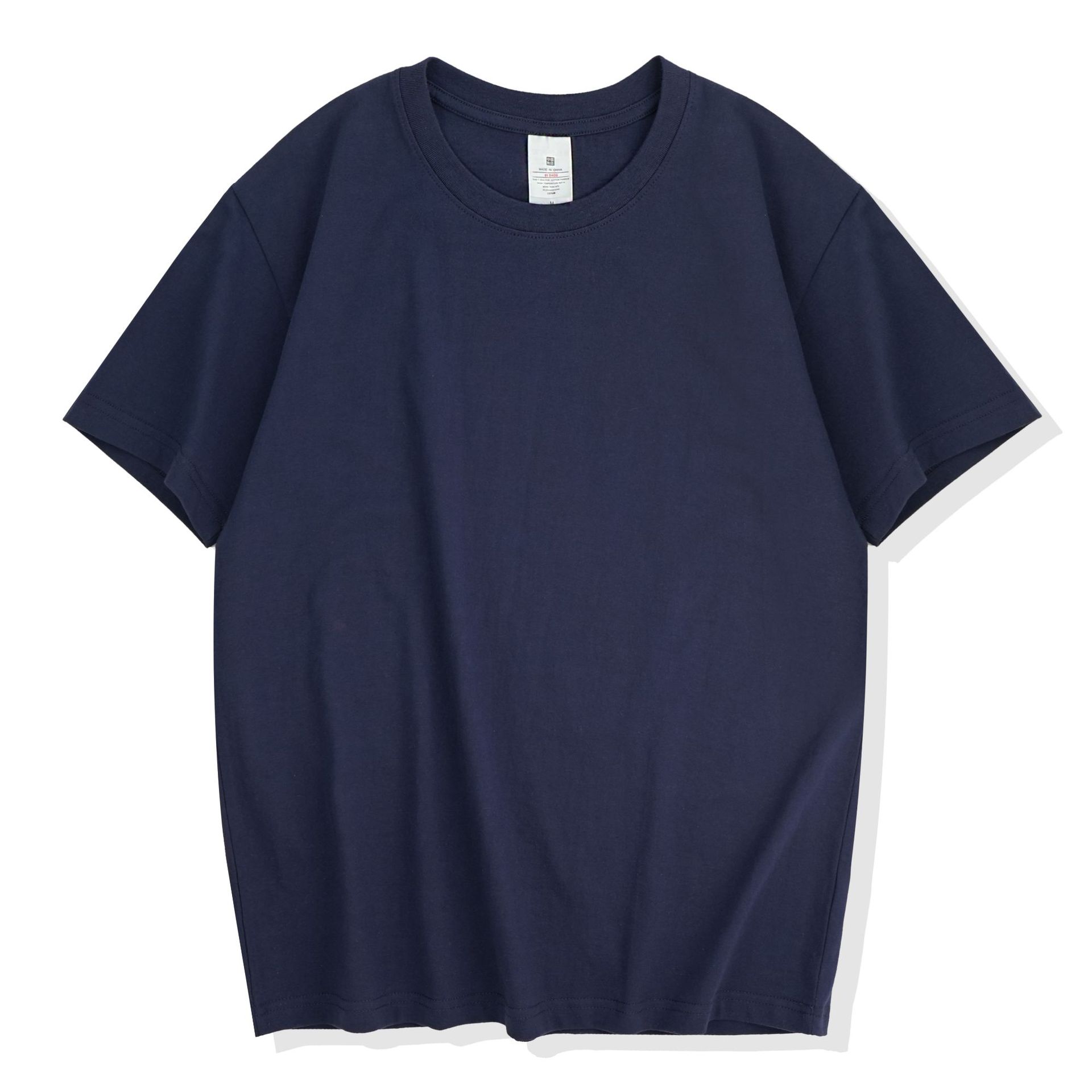220克精梳纯棉圆领半袖落肩宽松重磅纯色t恤男夏季批发印LOGO