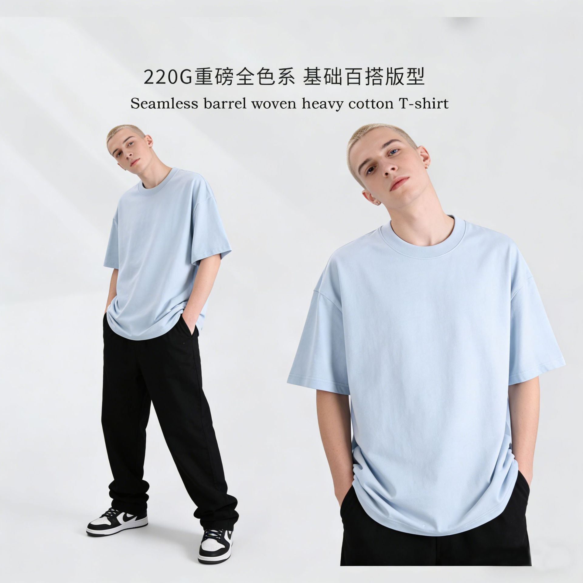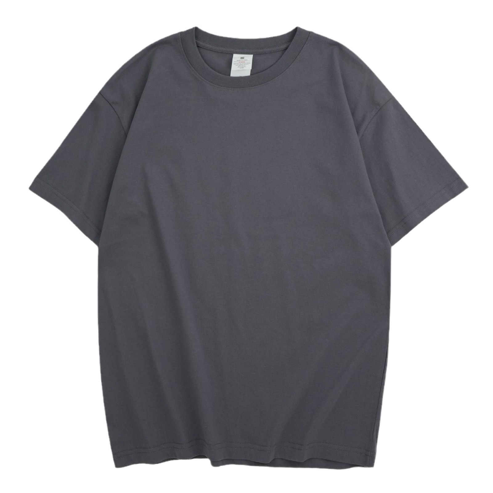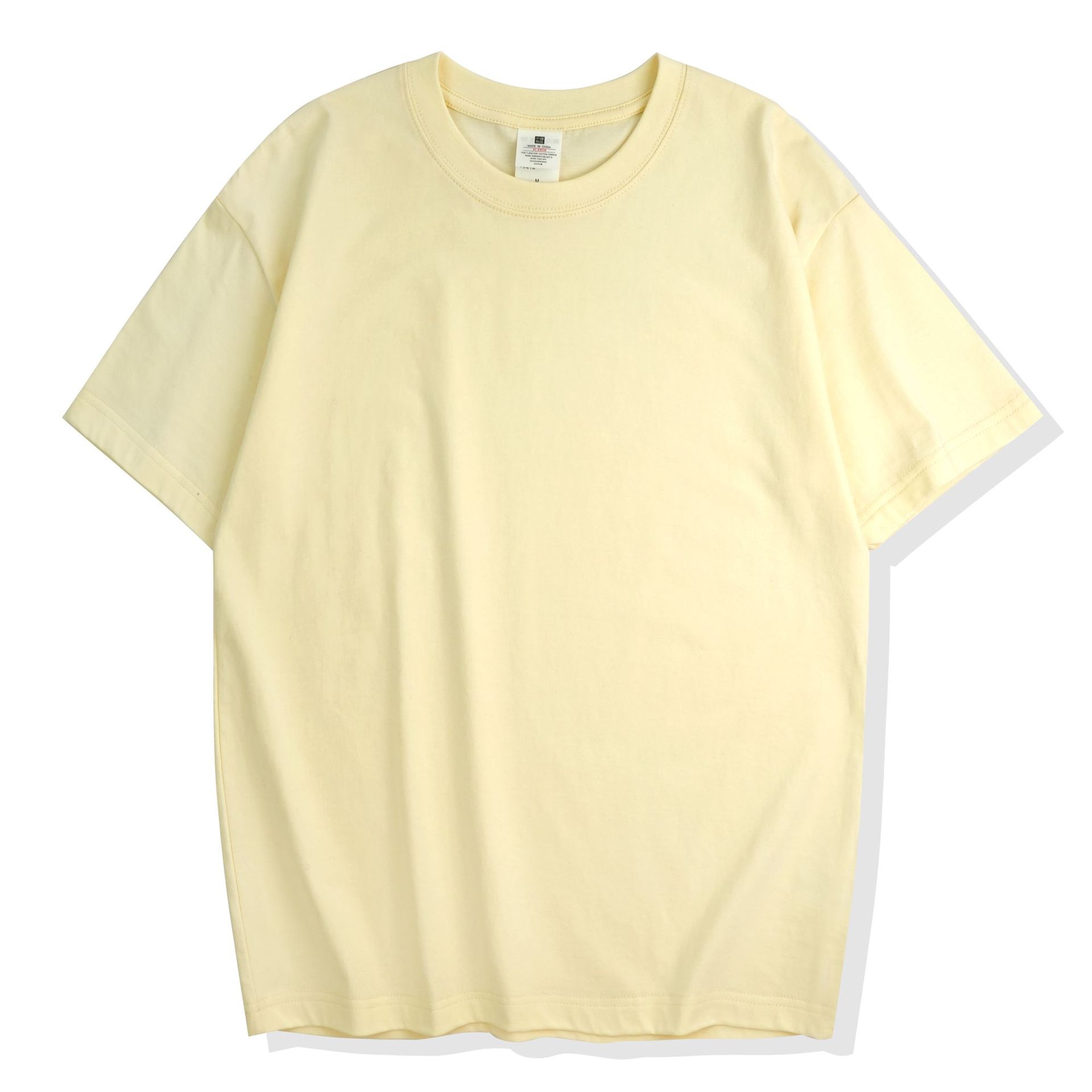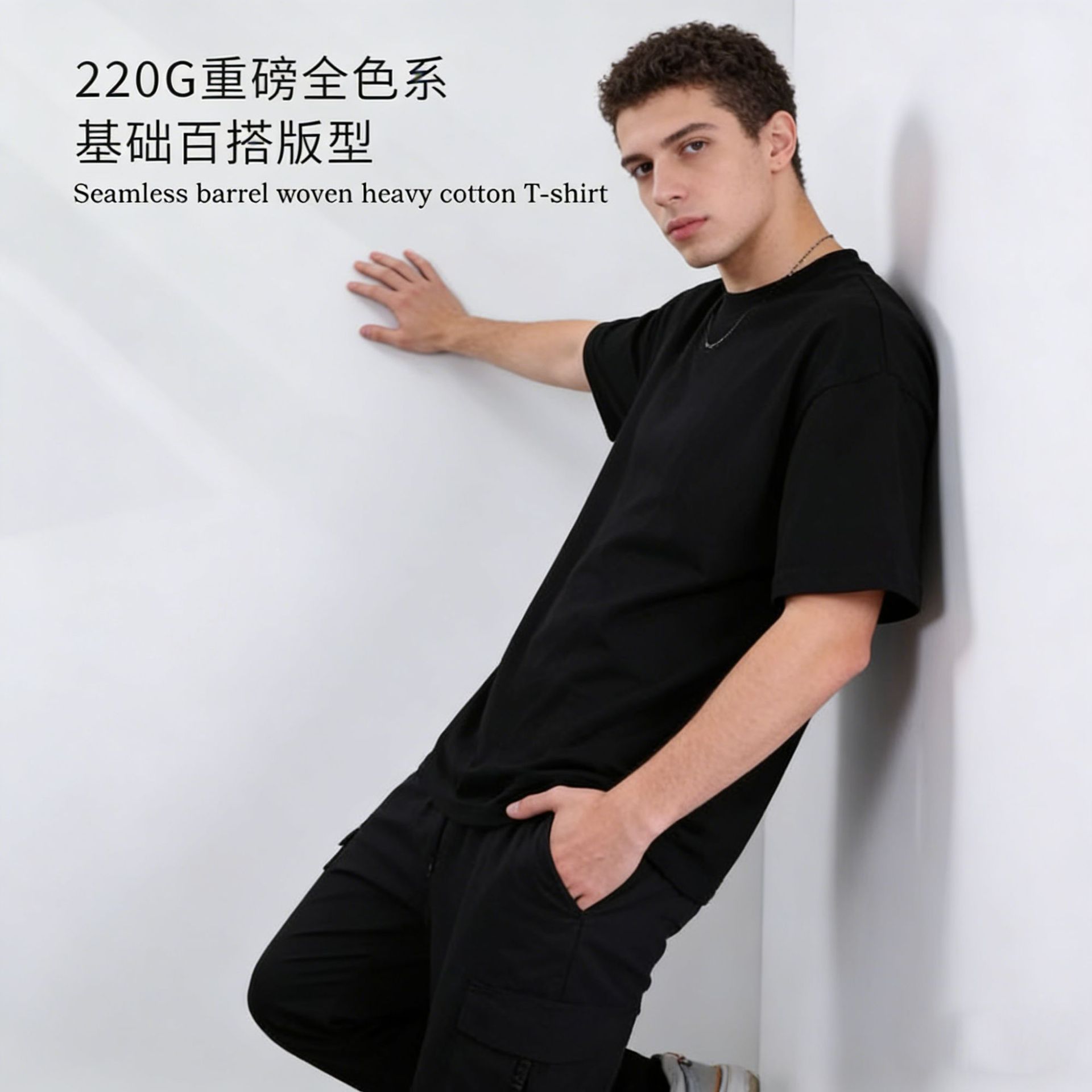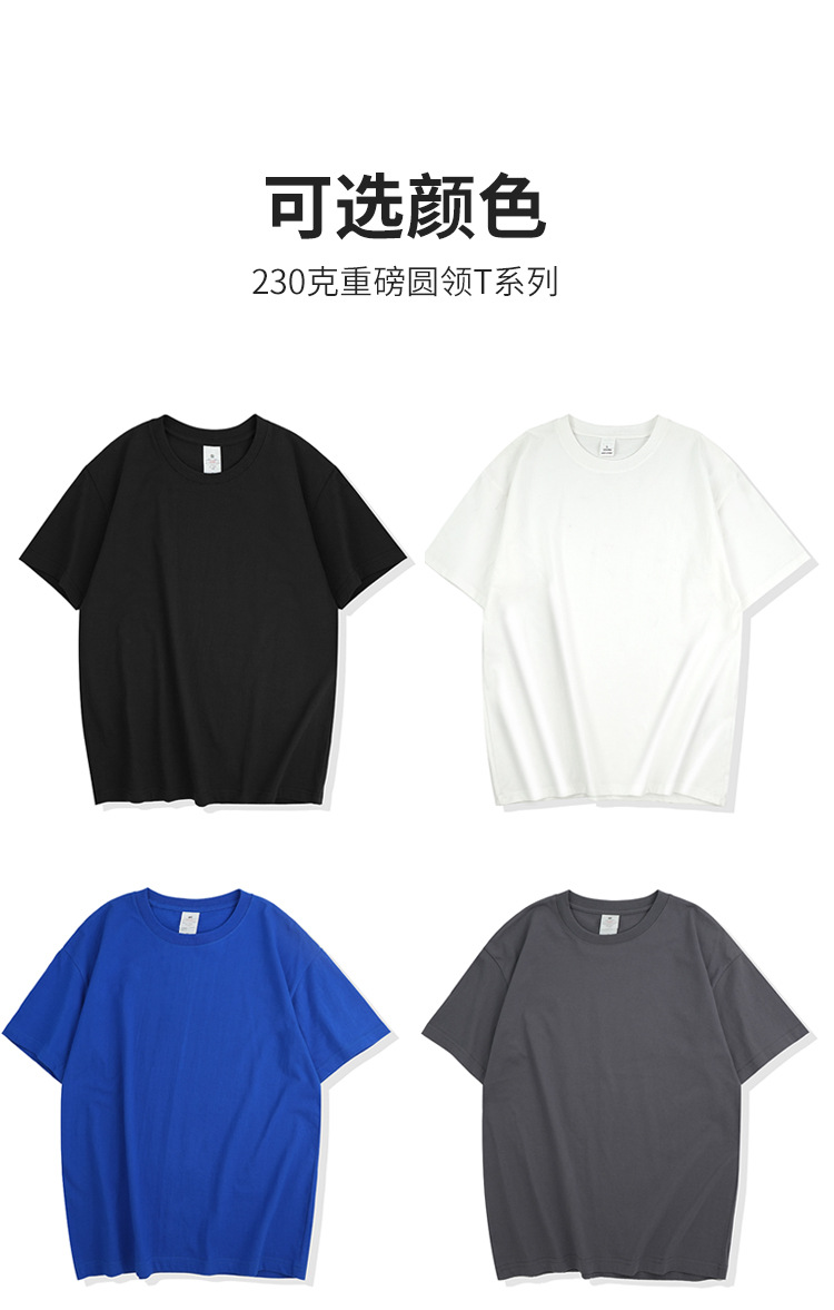 220克精梳纯棉圆领半袖落肩宽松重磅纯色t恤男夏季批发印LOGO