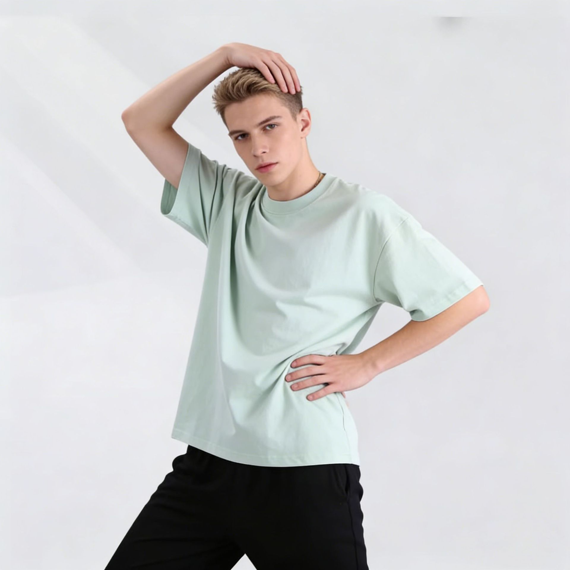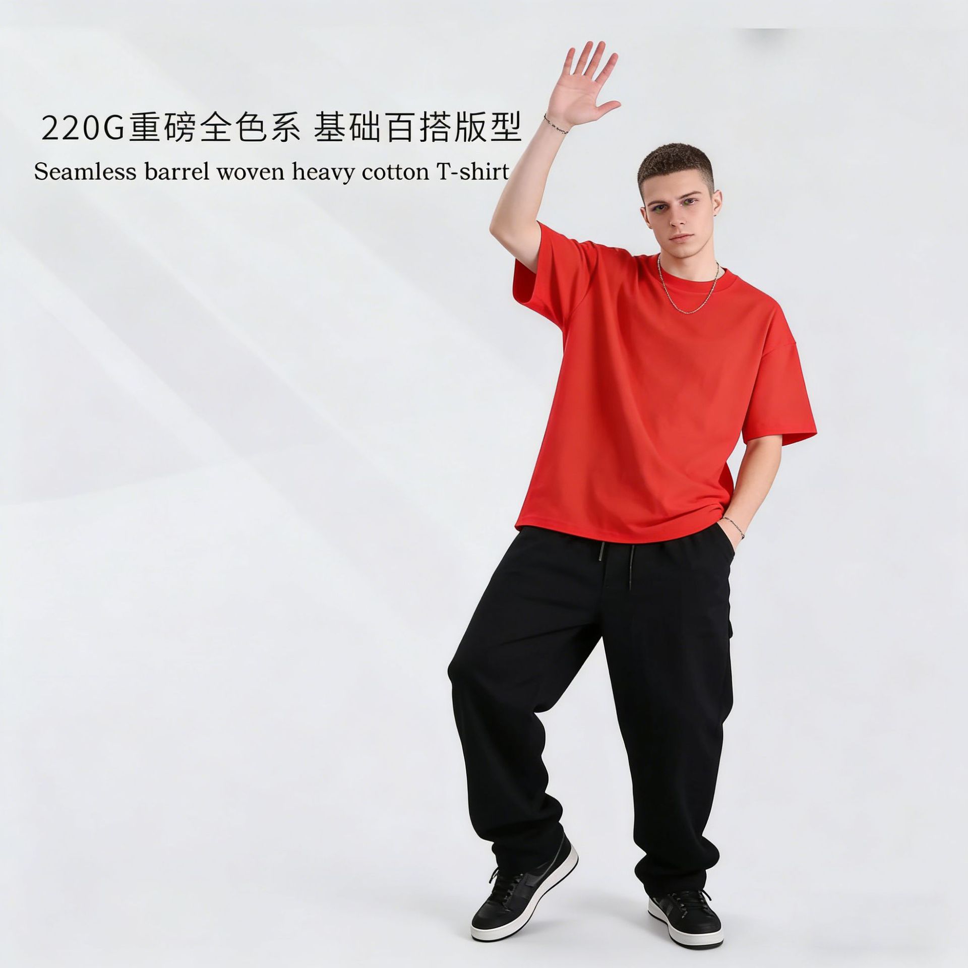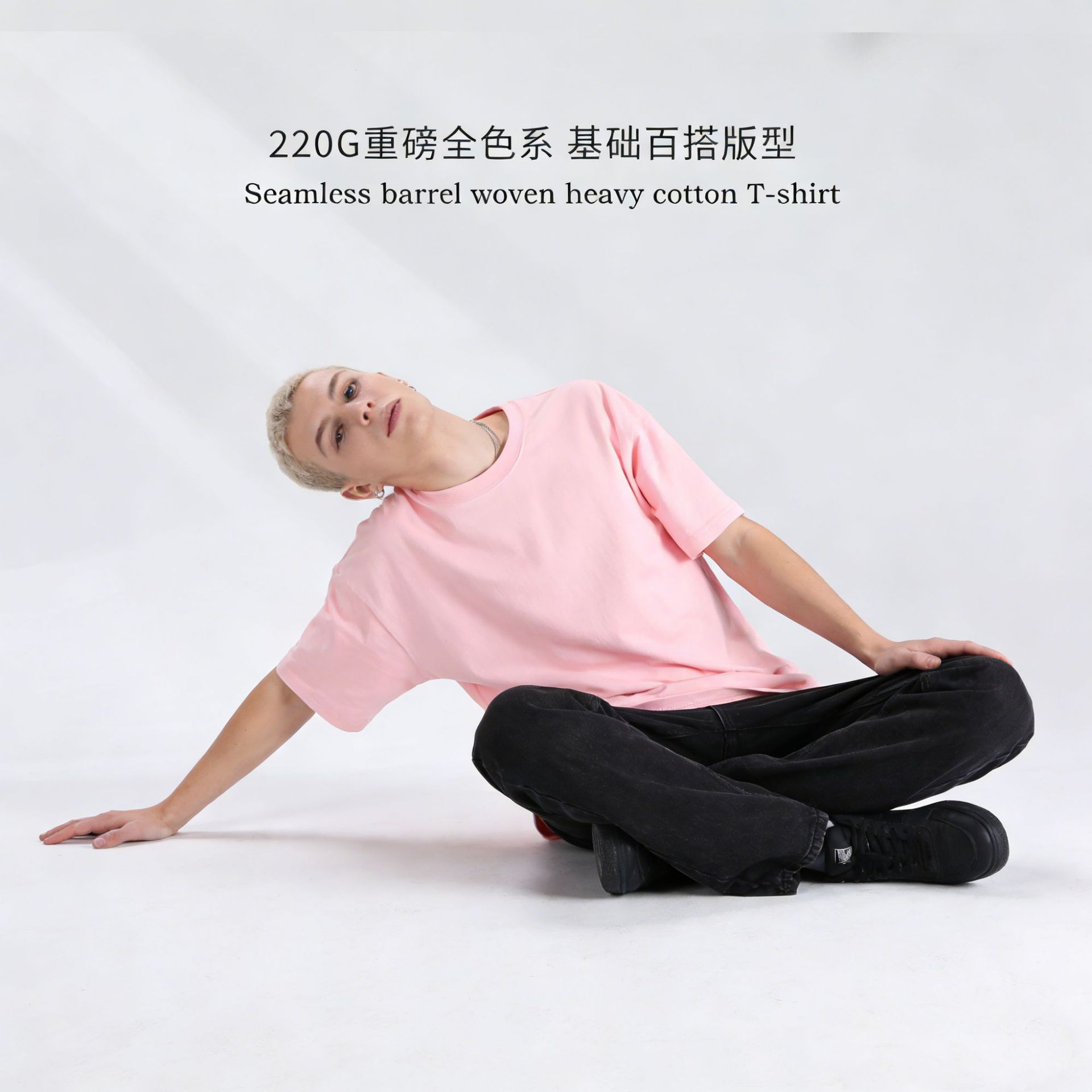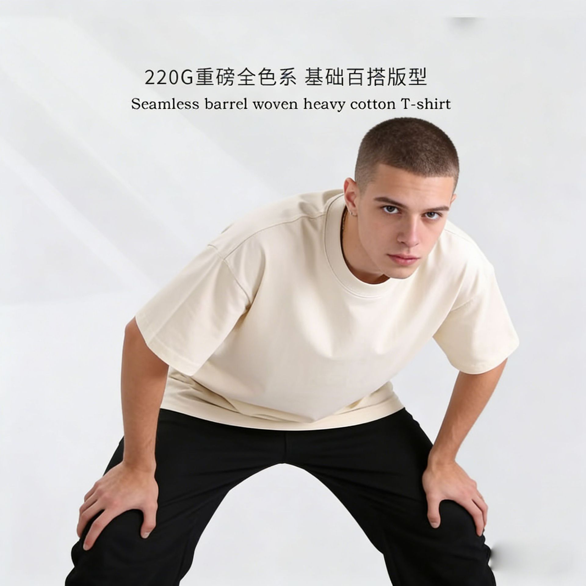 220克精梳纯棉圆领半袖落肩宽松重磅纯色t恤男夏季批发印LOGO