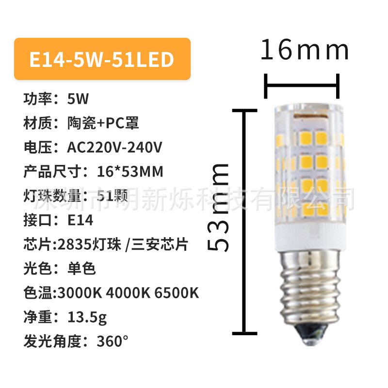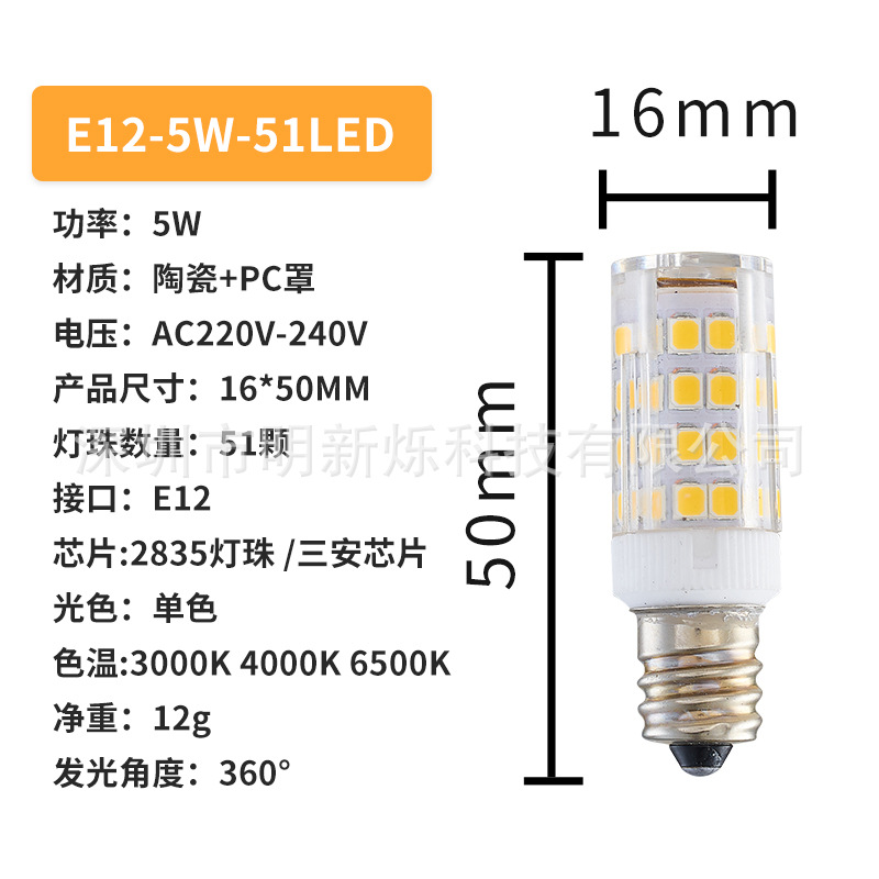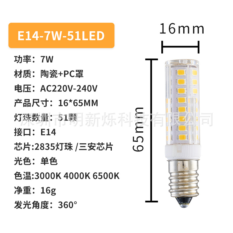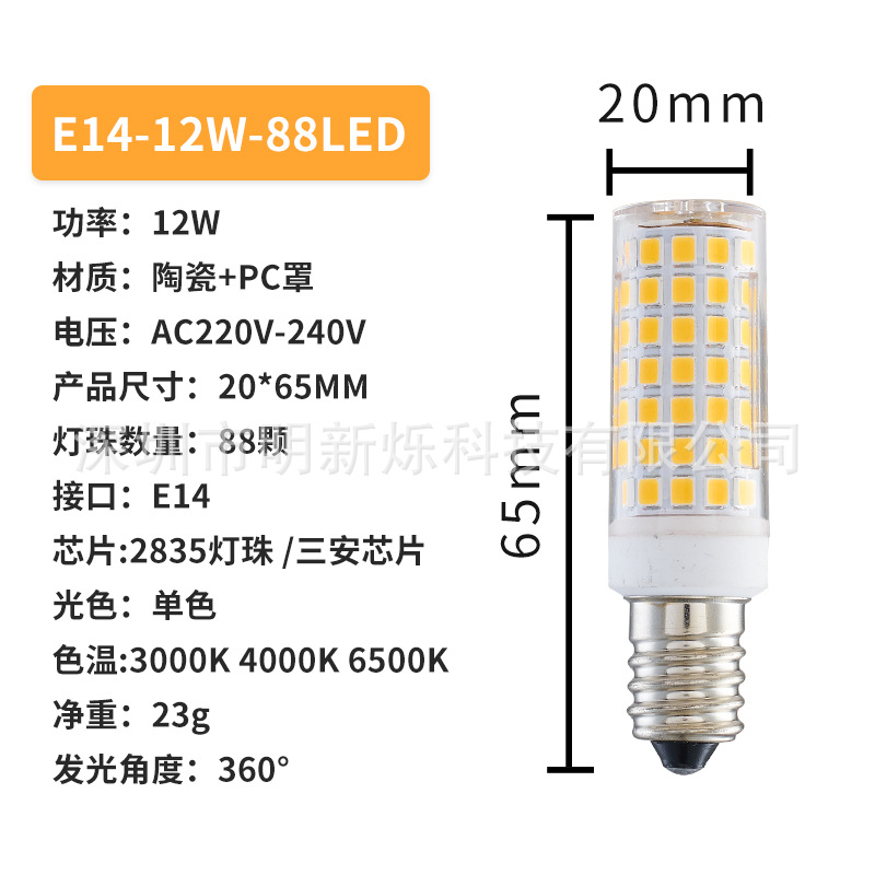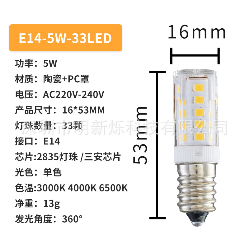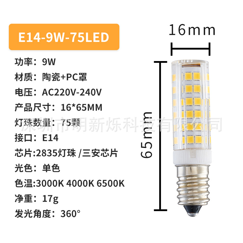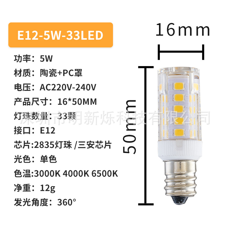 E14E12e17小螺口灯泡LED冰箱灯珠微波炉抽烟机节能陶瓷玉米灯跨境