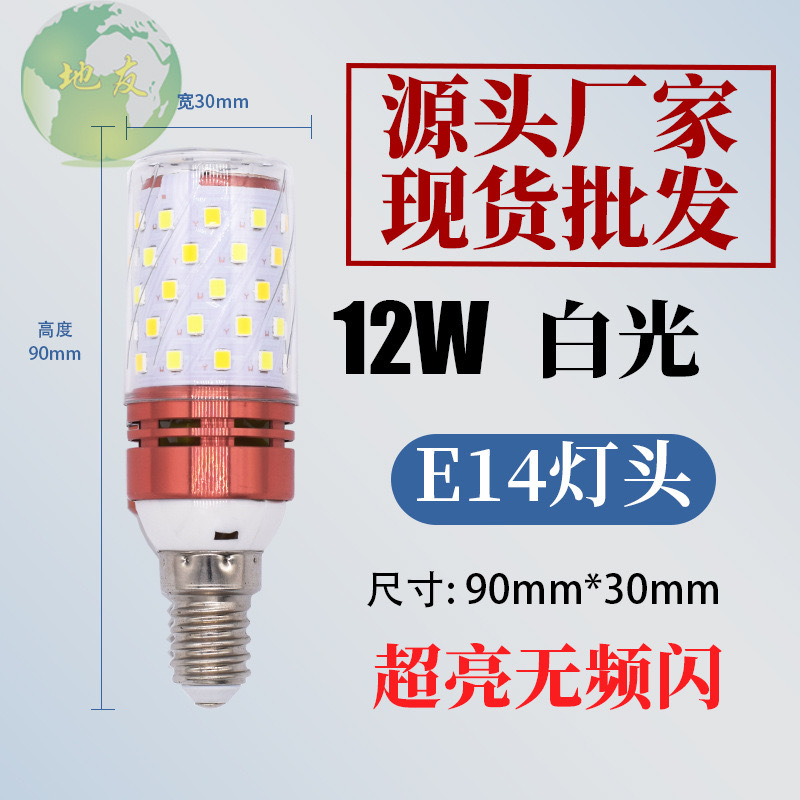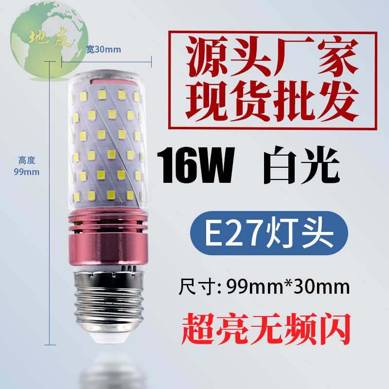 灯泡led超亮光头强无影灯泡 e14E27螺口三色光12瓦16W玉米蜡烛灯