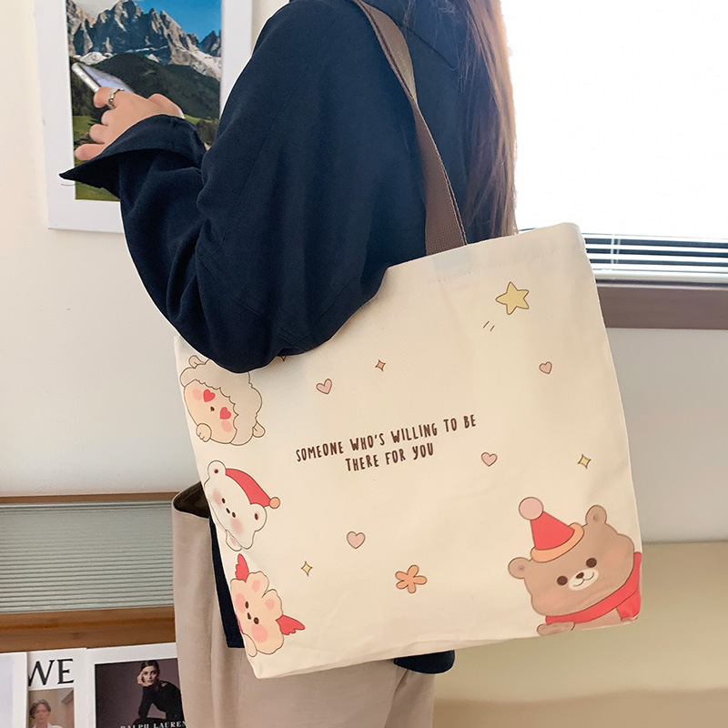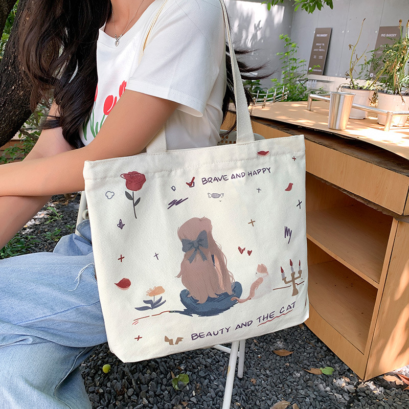 帆布包包女学生上课装书袋单肩包韩版百搭2024新款托特包一件代发