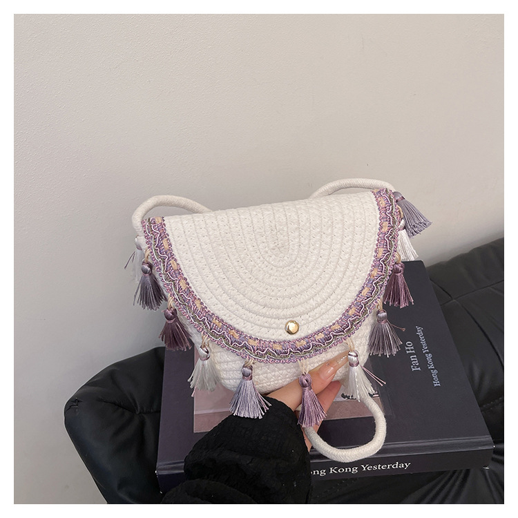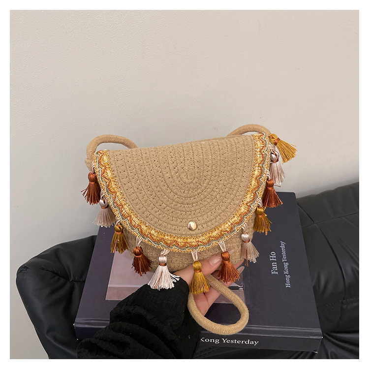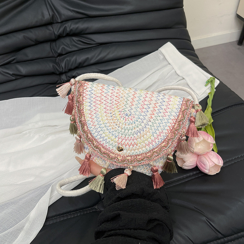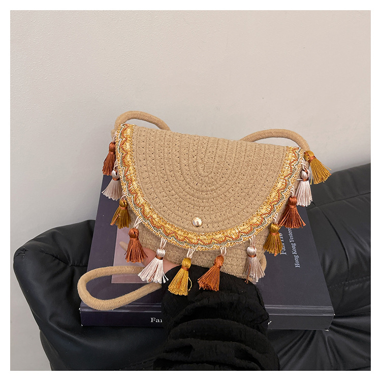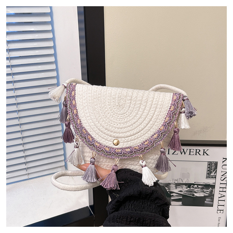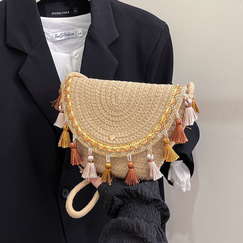 草编织包包2025夏季新款民族风小众流苏手提包质感信封包一件代发