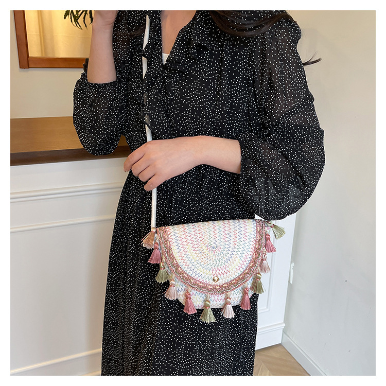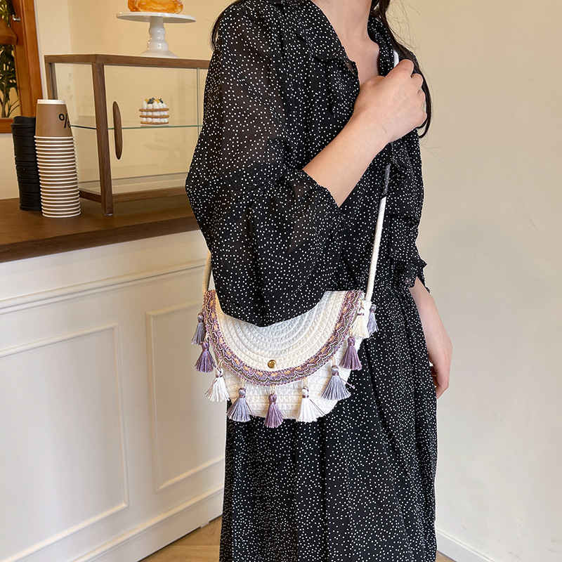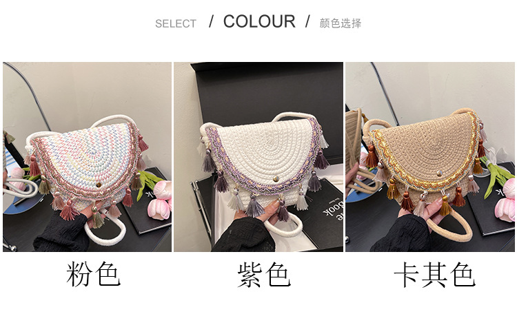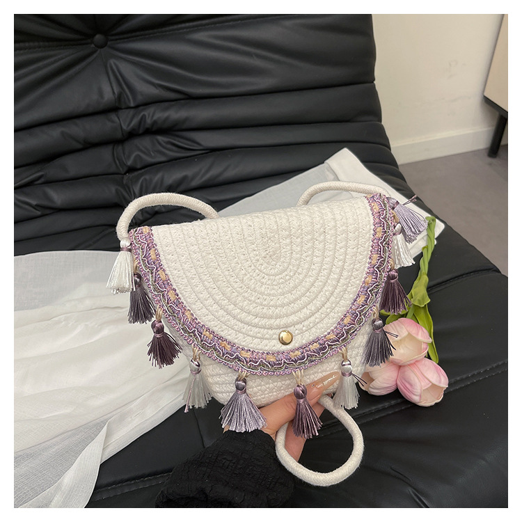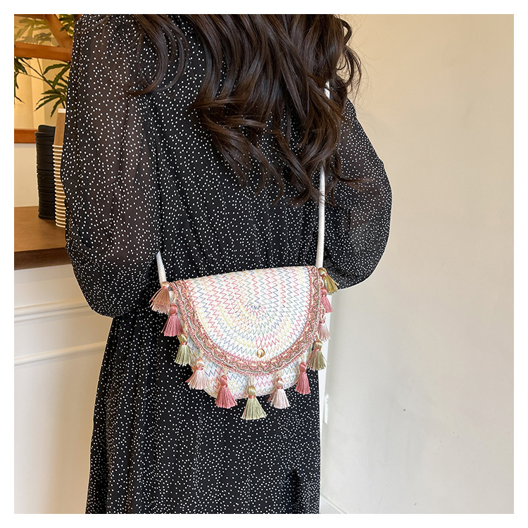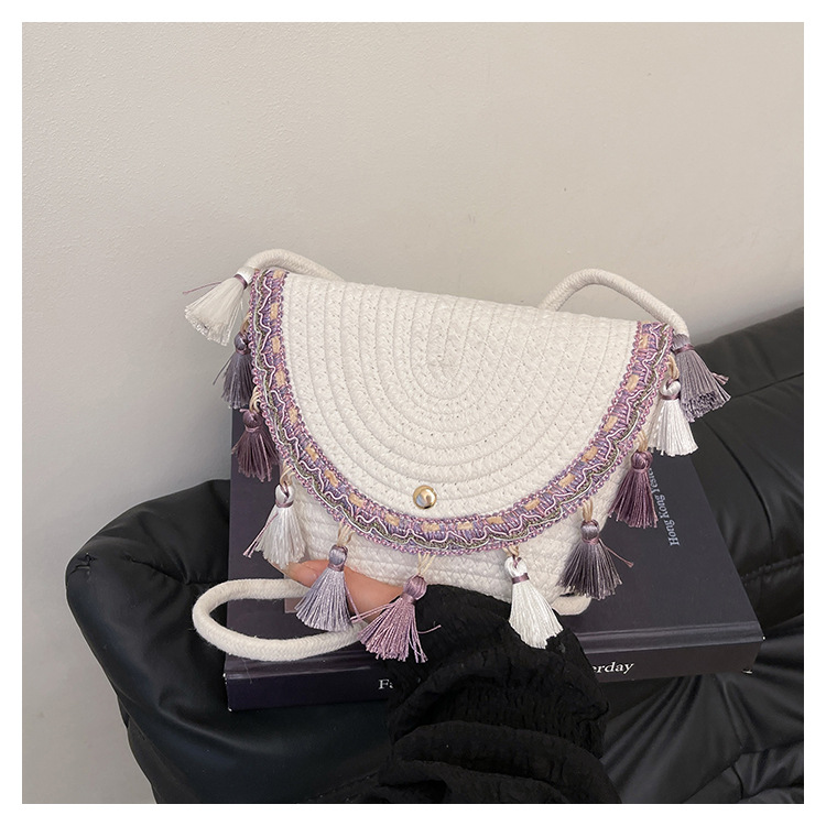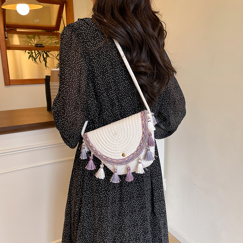 草编织包包2025夏季新款民族风小众流苏手提包质感信封包一件代发