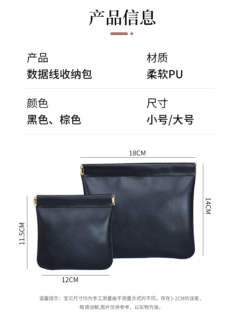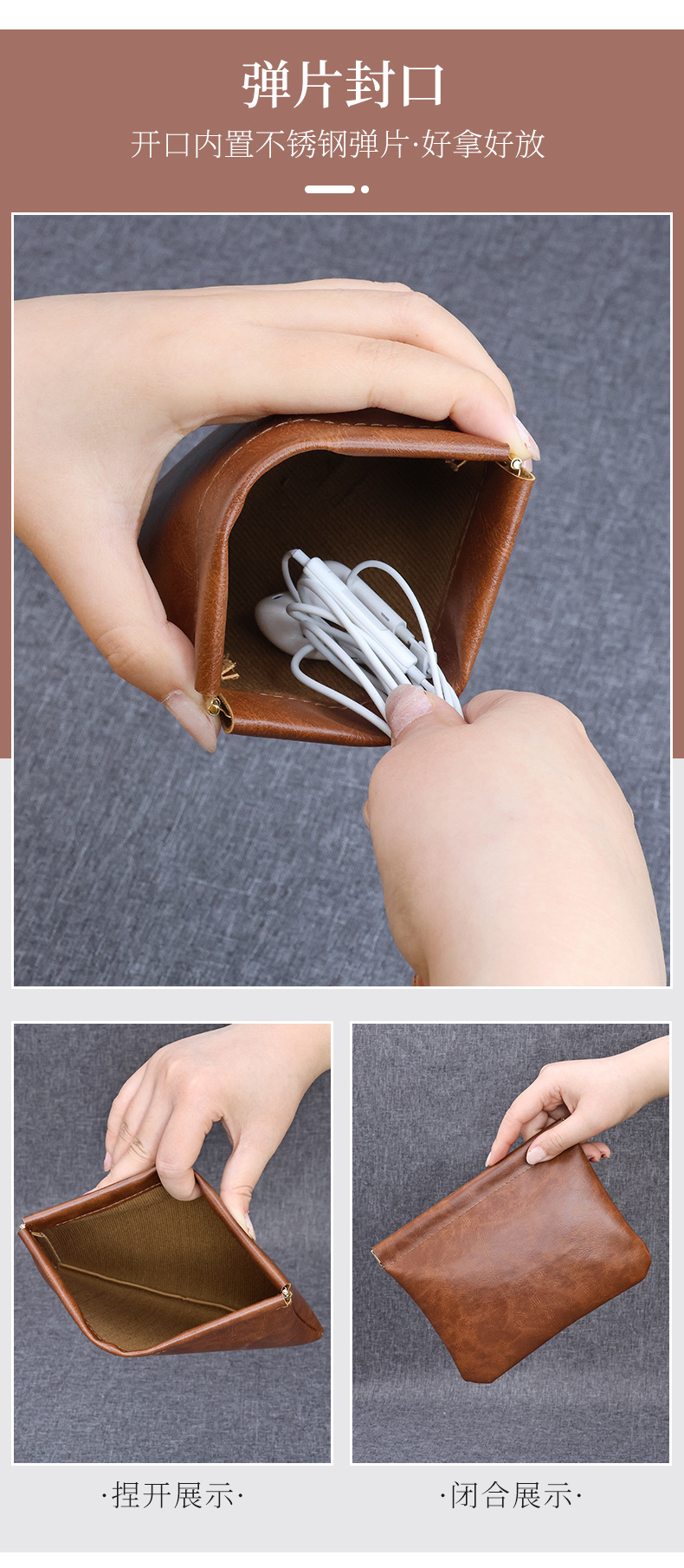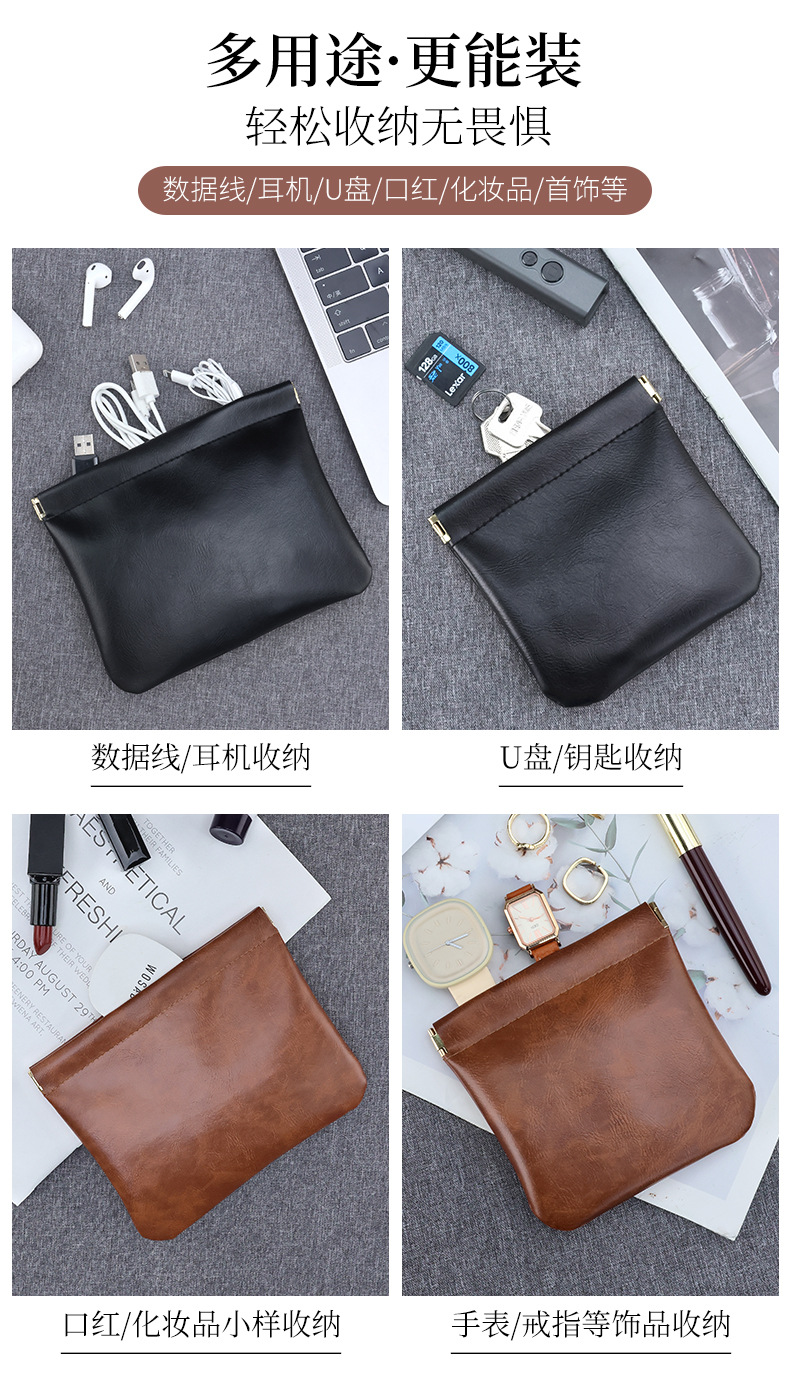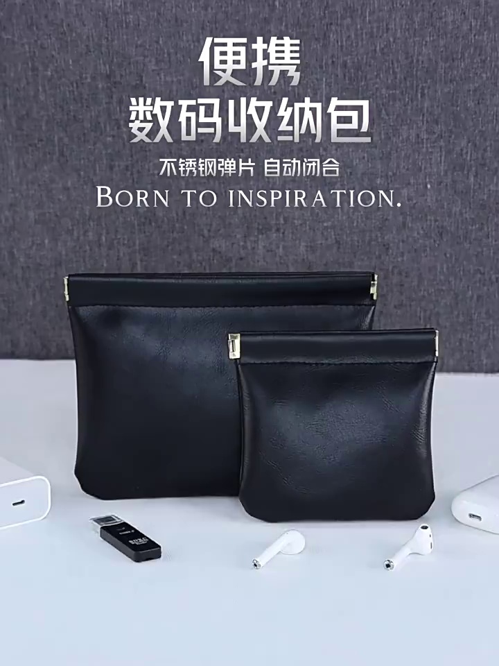 随身收纳便携式弹片暗纹钥匙手表化妆数据线收纳袋自动闭合收纳包