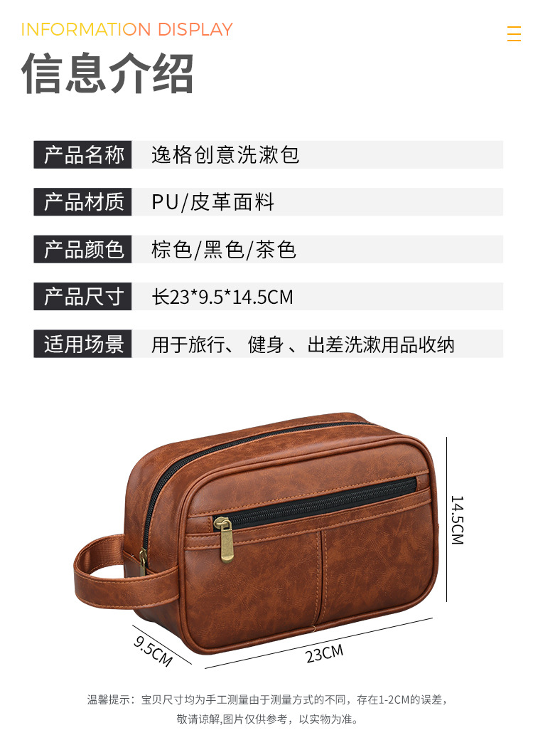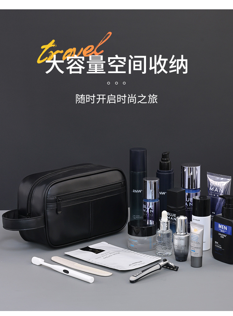 撞色男士洗漱包大容量高级感化妆品收纳包旅行便携健身收纳游泳包
