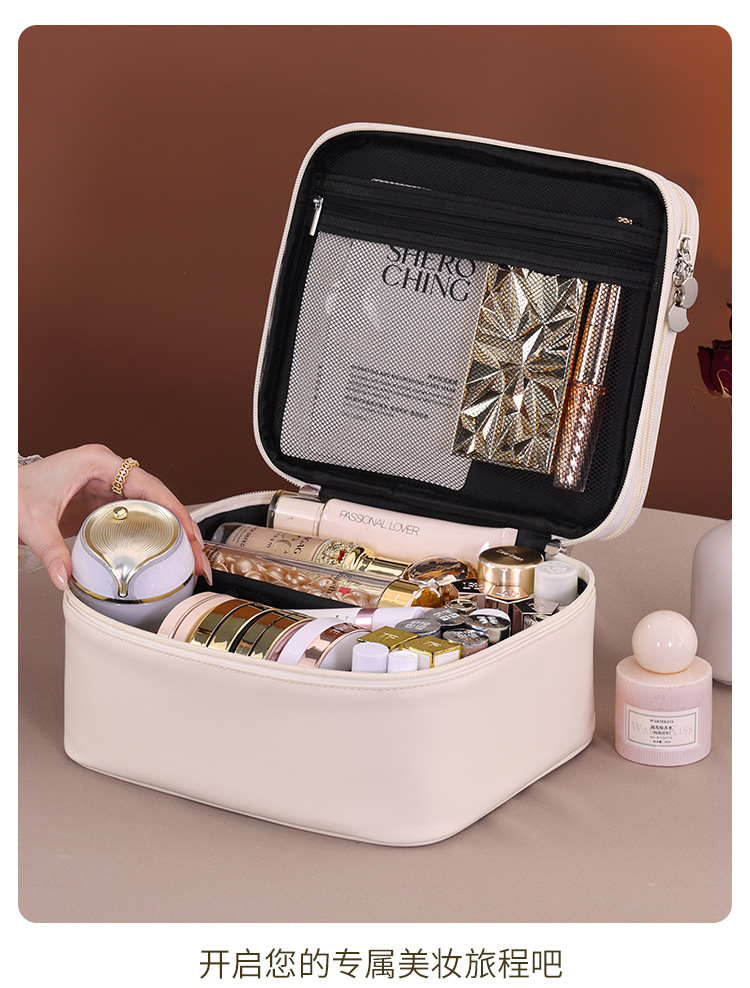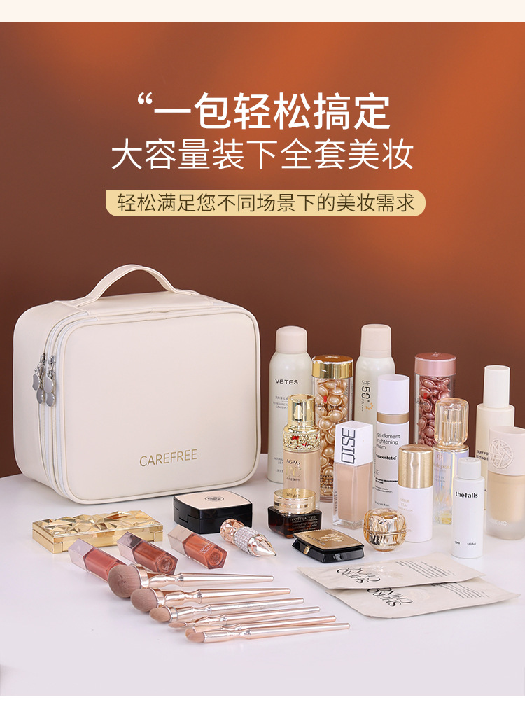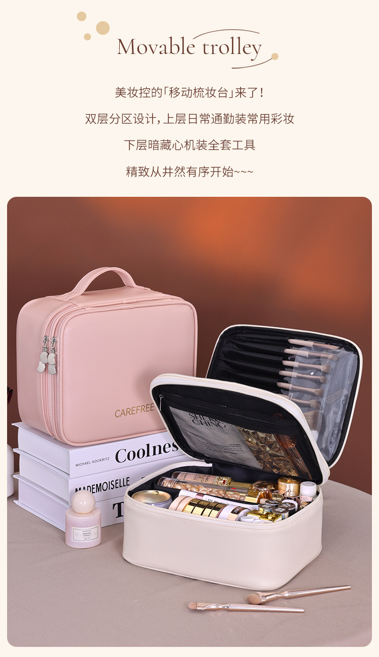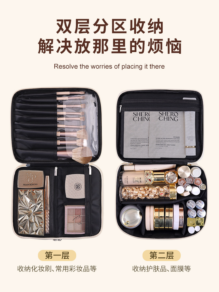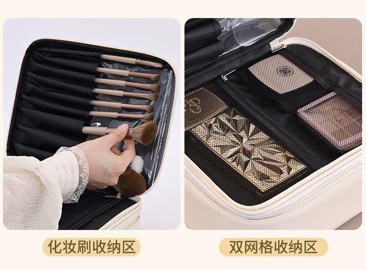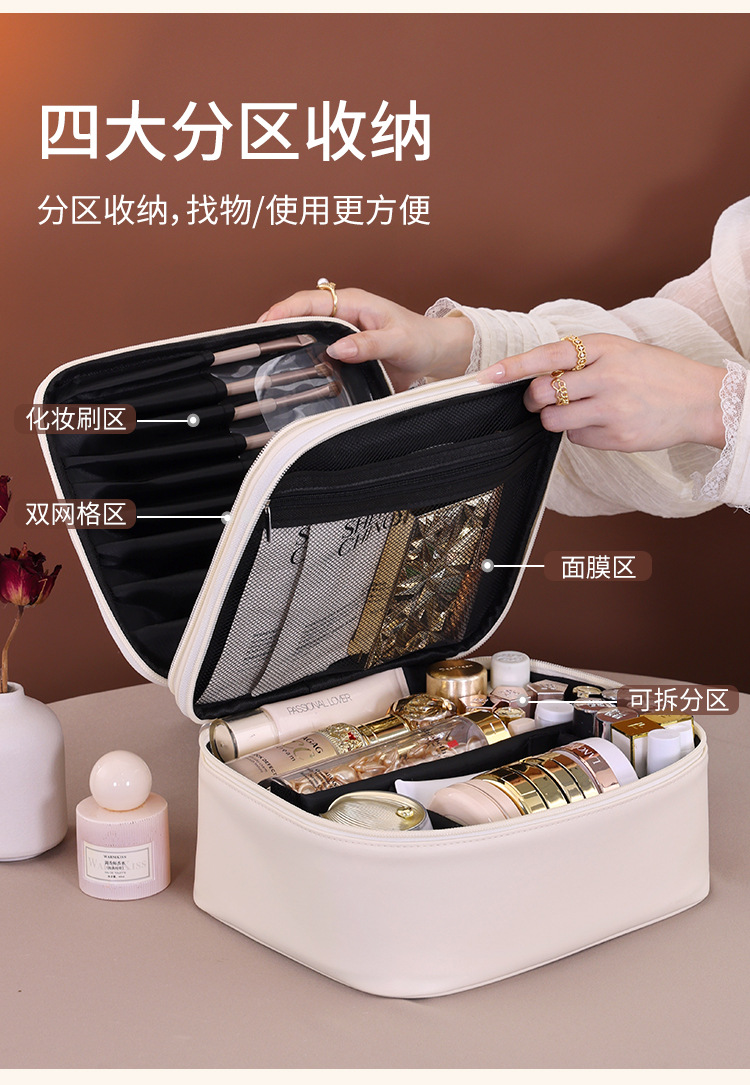 跨境双层四大分区PU大号化妆包女便携高级感大容量化妆品收纳包箱