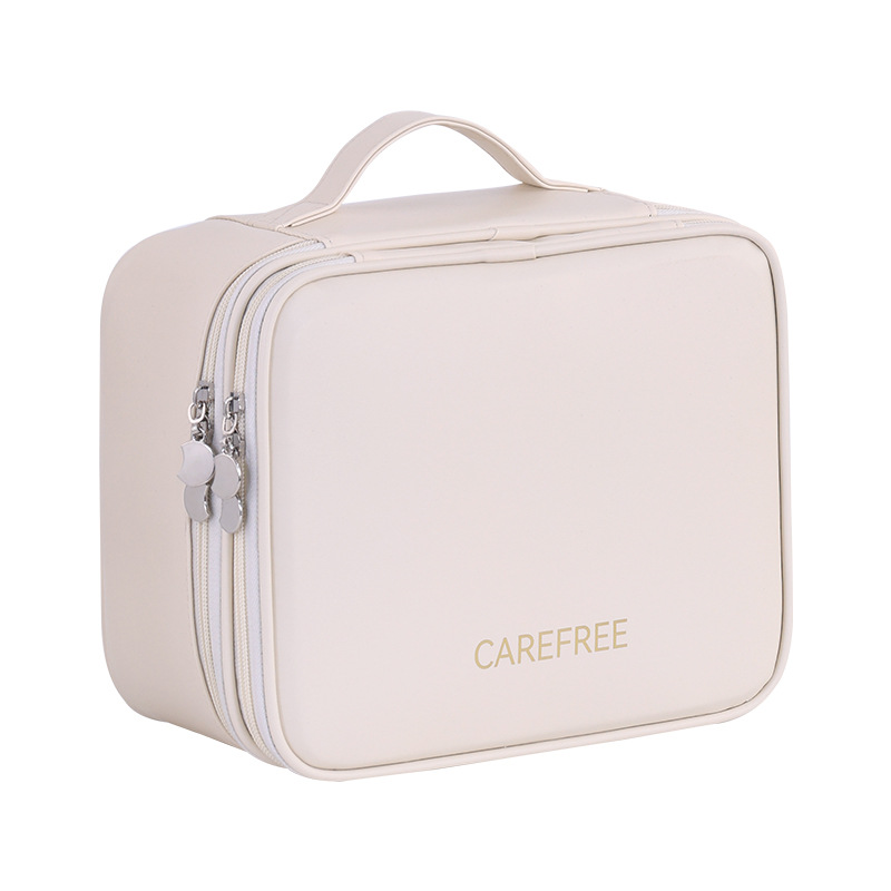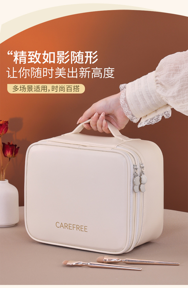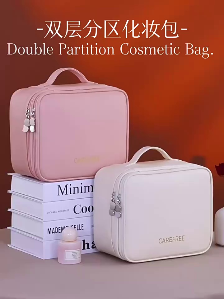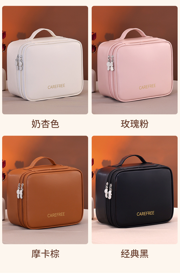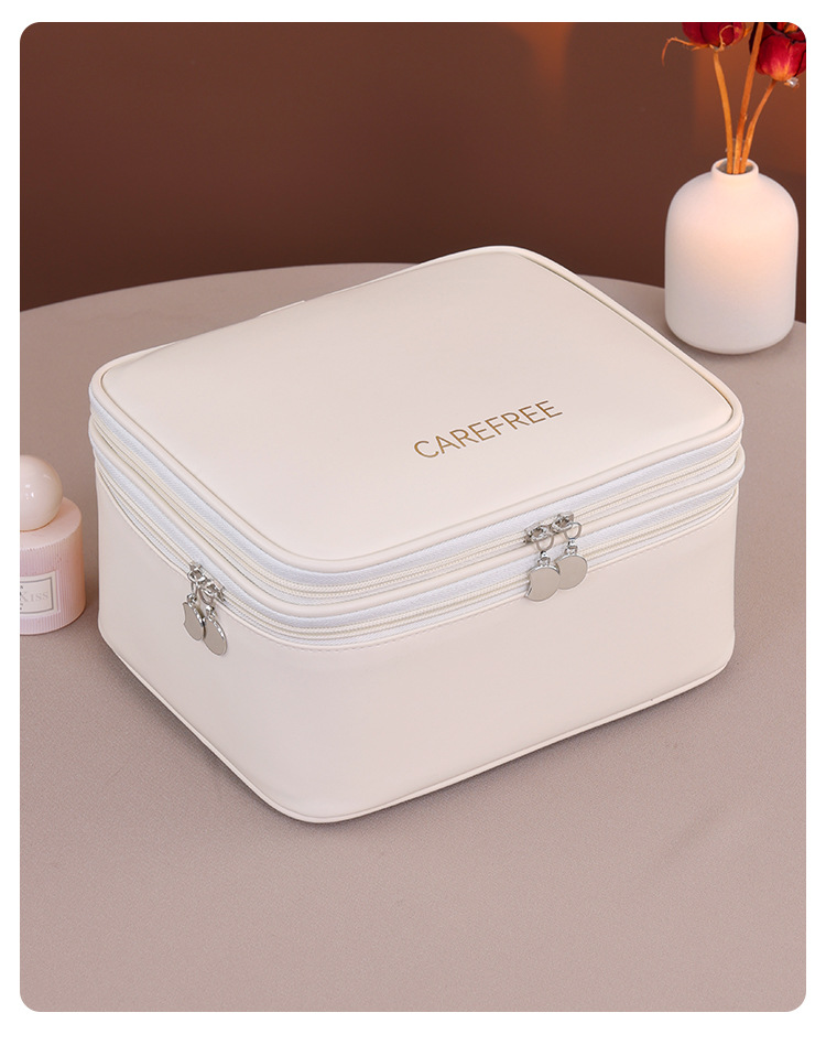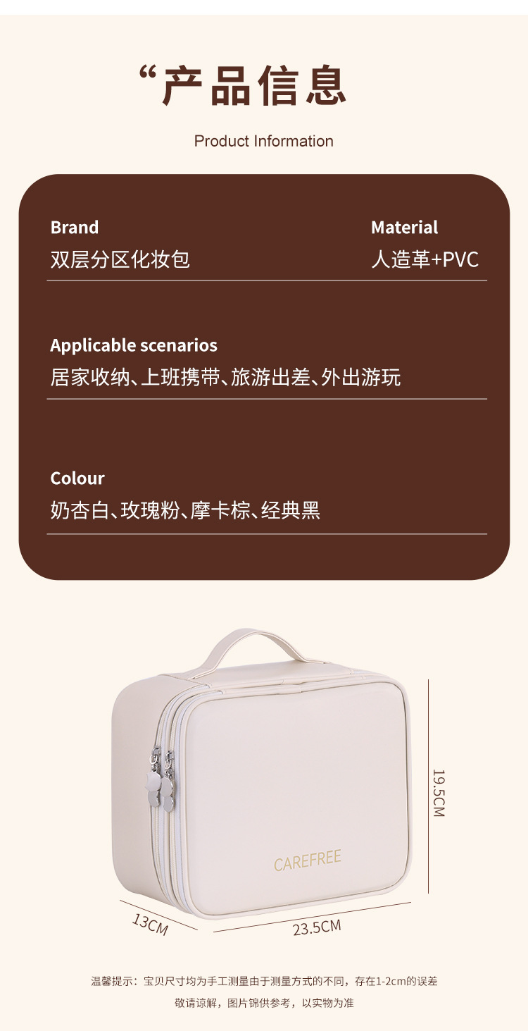 跨境双层四大分区PU大号化妆包女便携高级感大容量化妆品收纳包箱