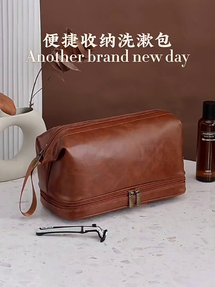 旅行干湿分离双层出差旅行男士pu洗漱包商务手提化妆包洗漱收纳包