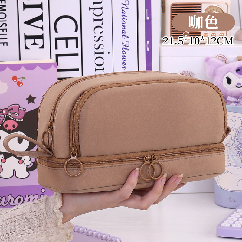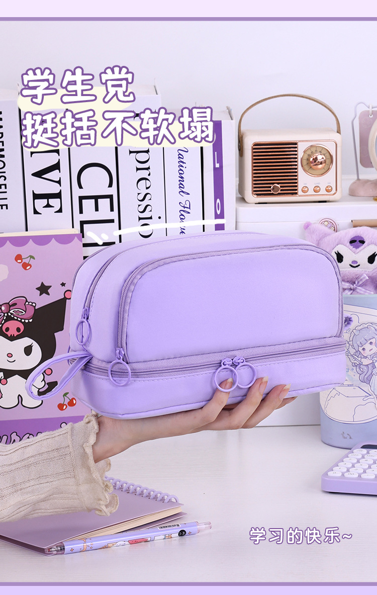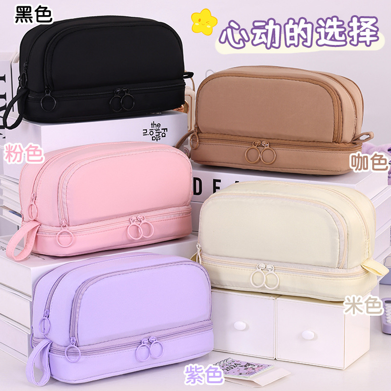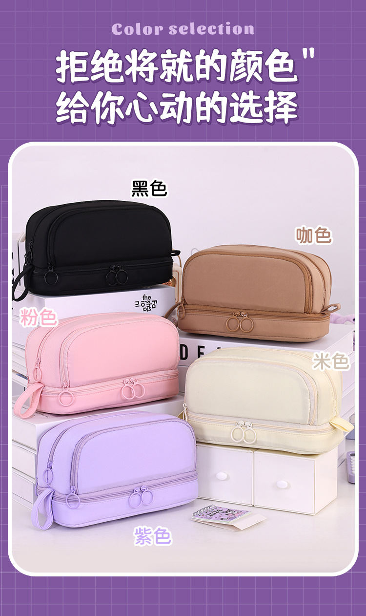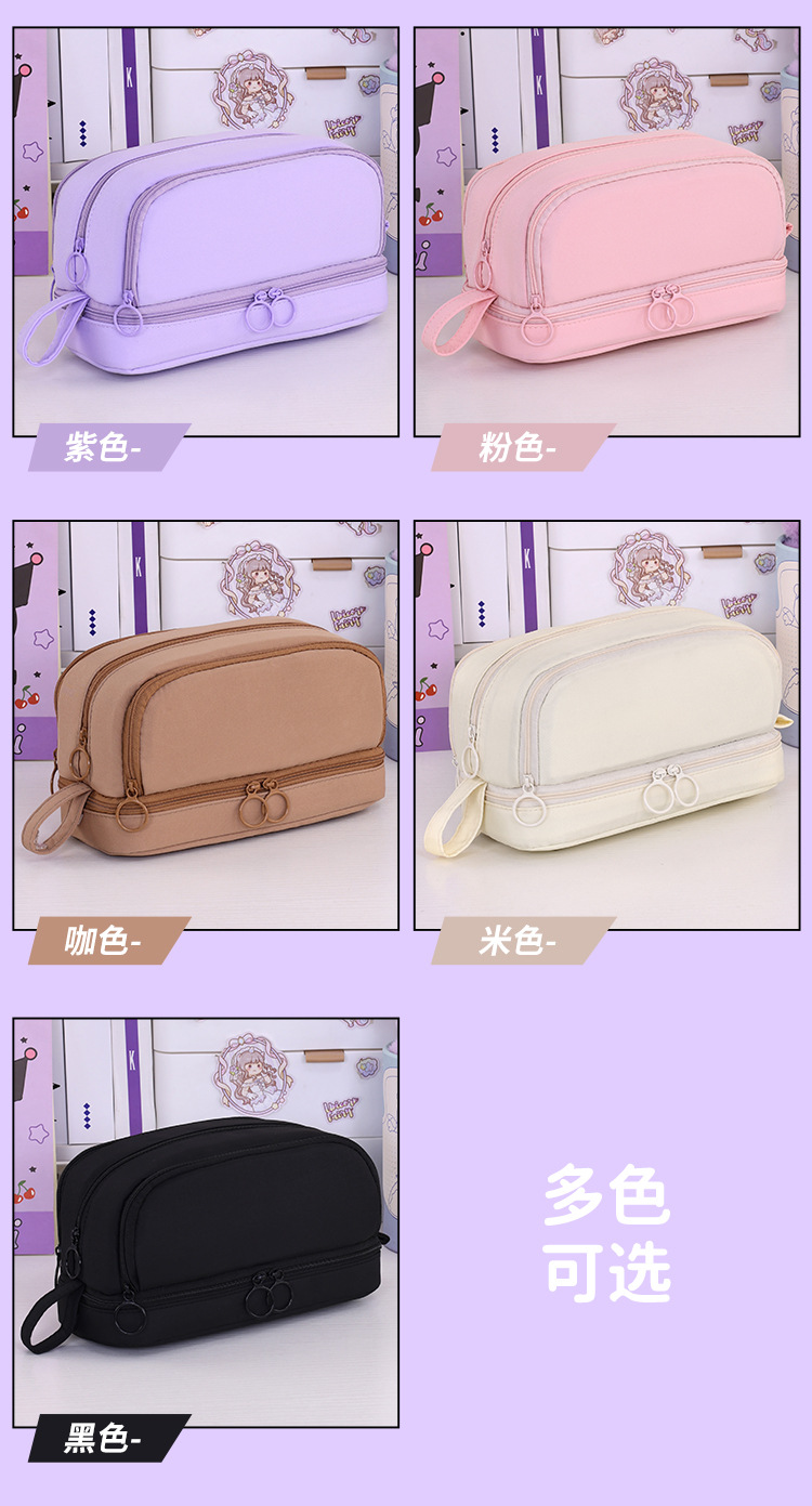 开学季大容量日系笔袋文具盒男女孩双层纯色多功能中小学生铅笔盒