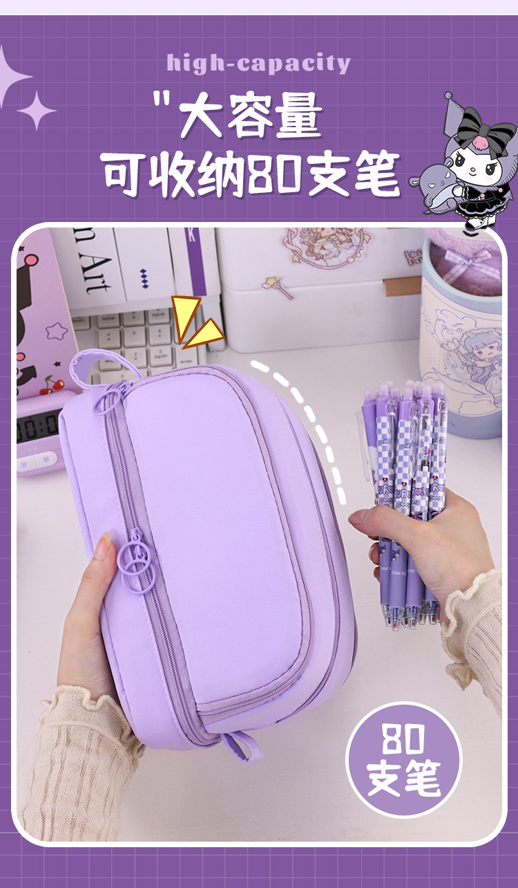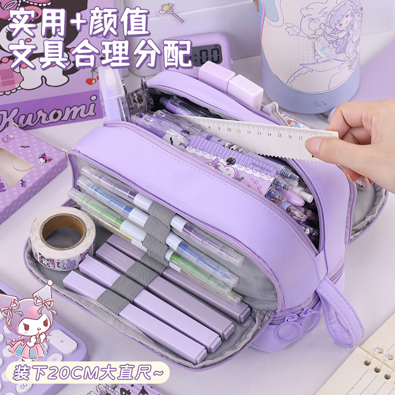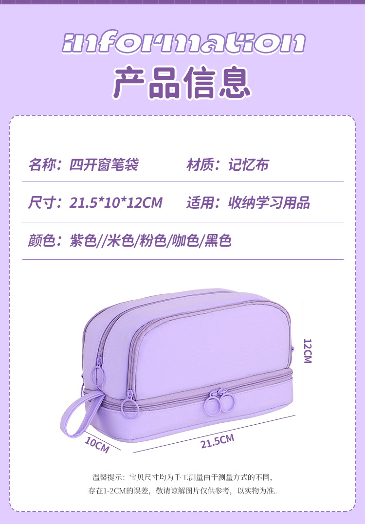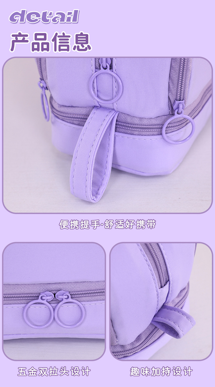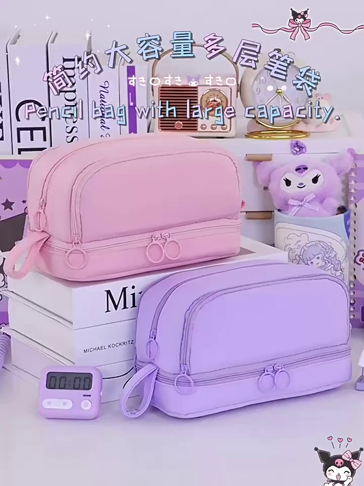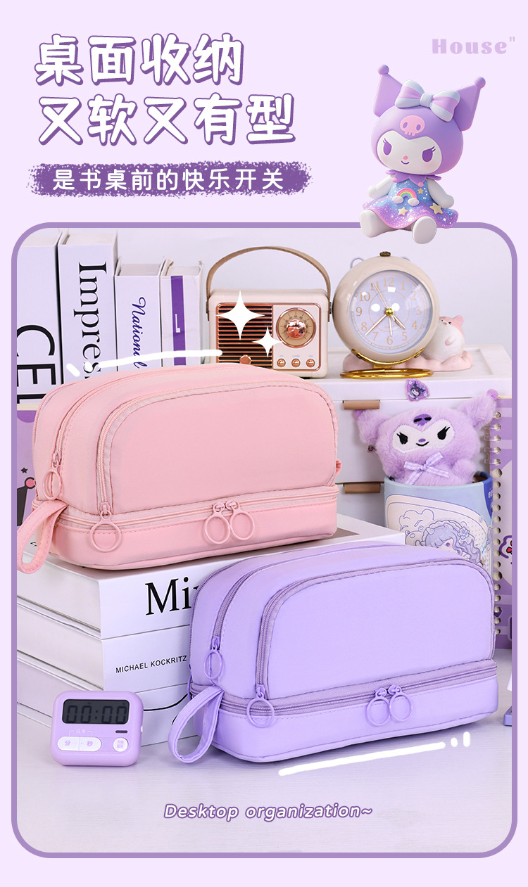 开学季大容量日系笔袋文具盒男女孩双层纯色多功能中小学生铅笔盒