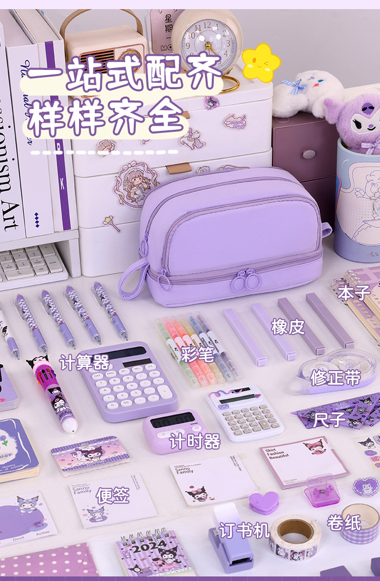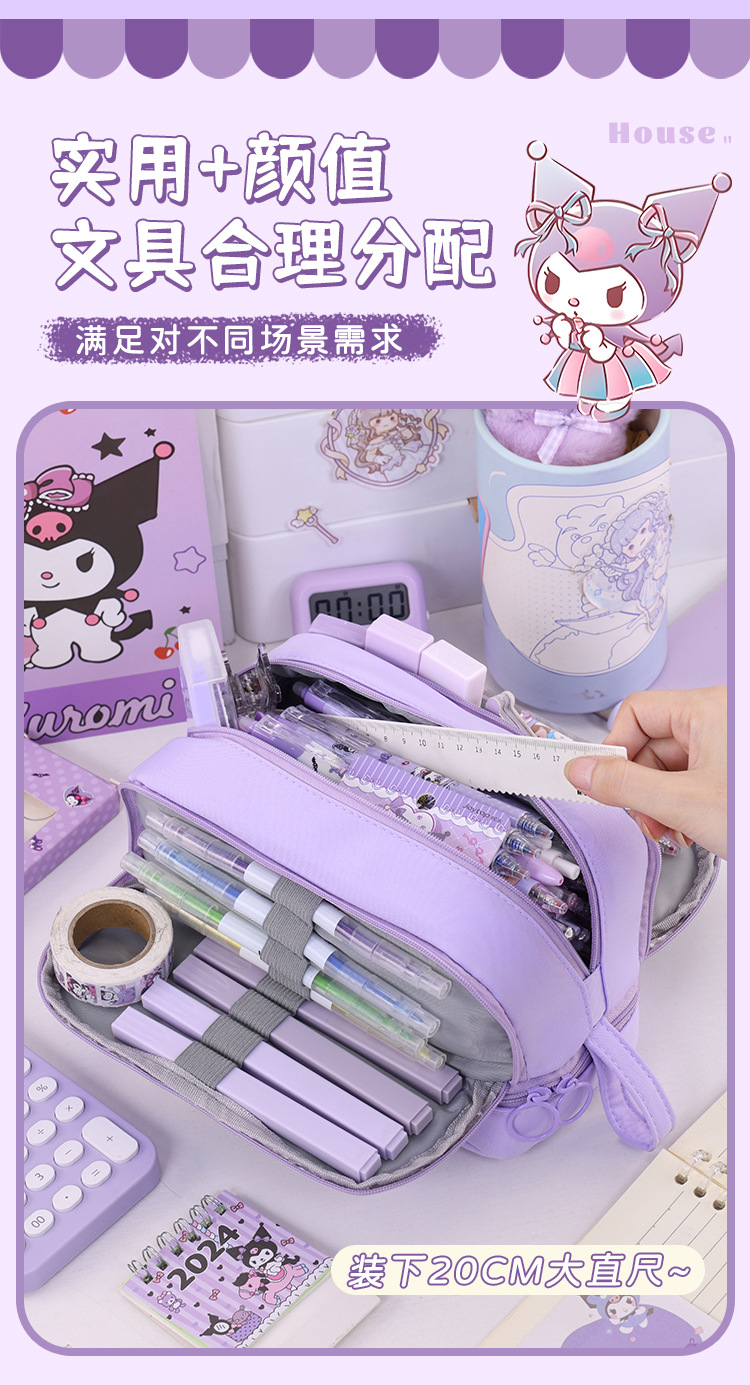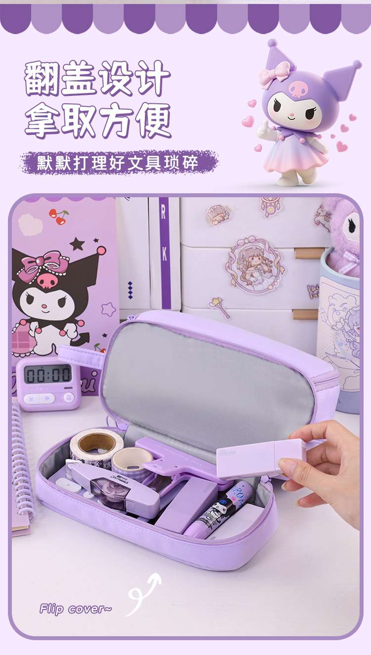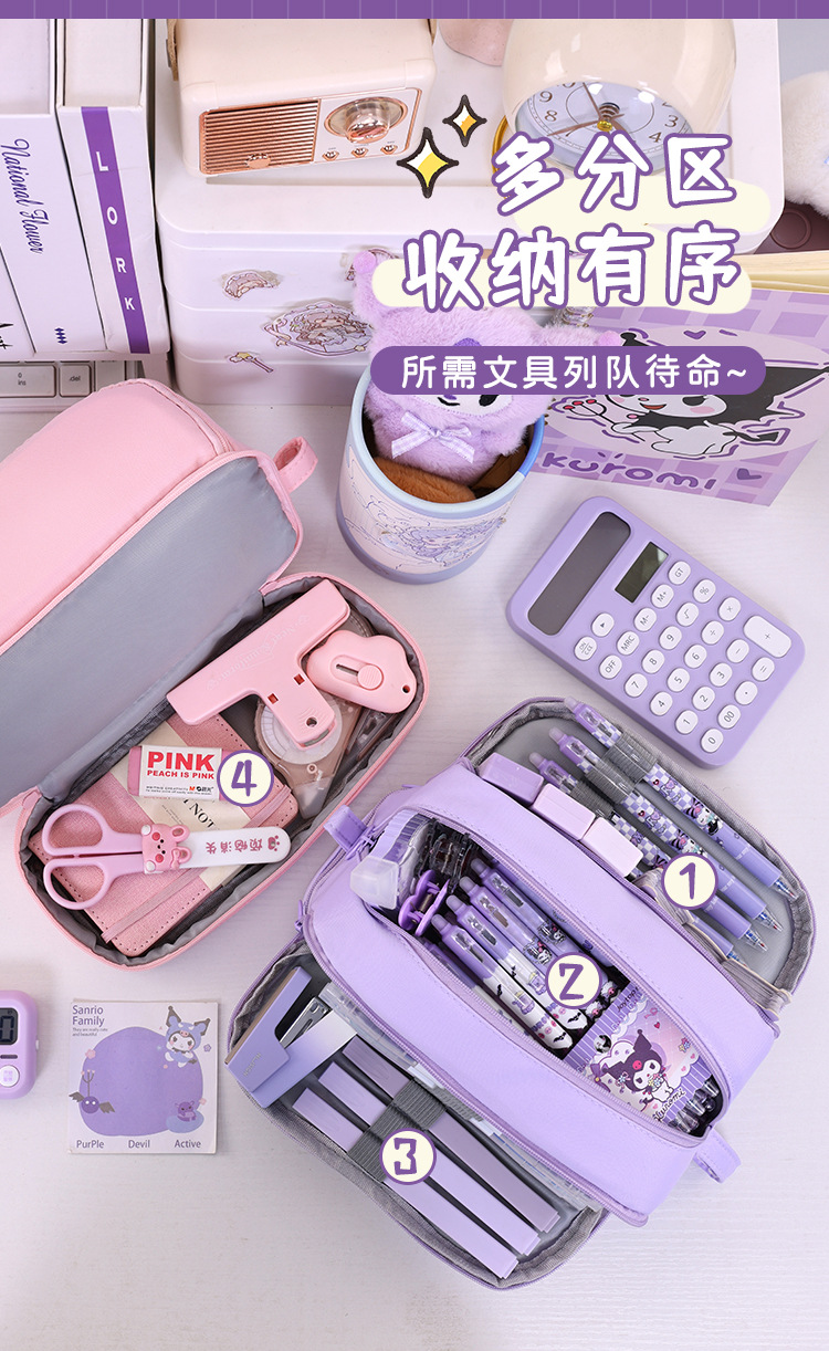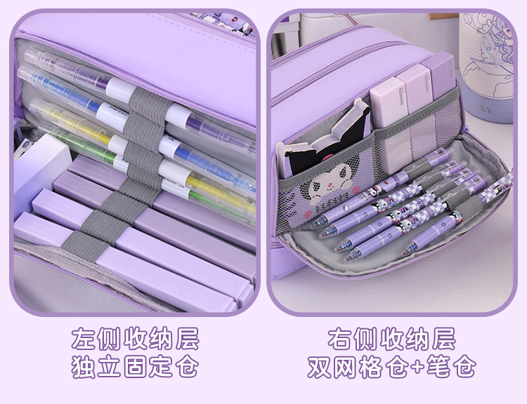开学季大容量日系笔袋文具盒男女孩双层纯色多功能中小学生铅笔盒