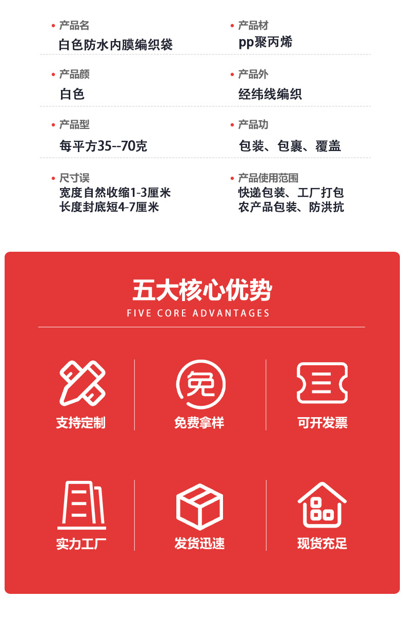 亮白双层防水内胆编织袋蛇皮内膜防潮袋子搬家打包快递包裹物流袋