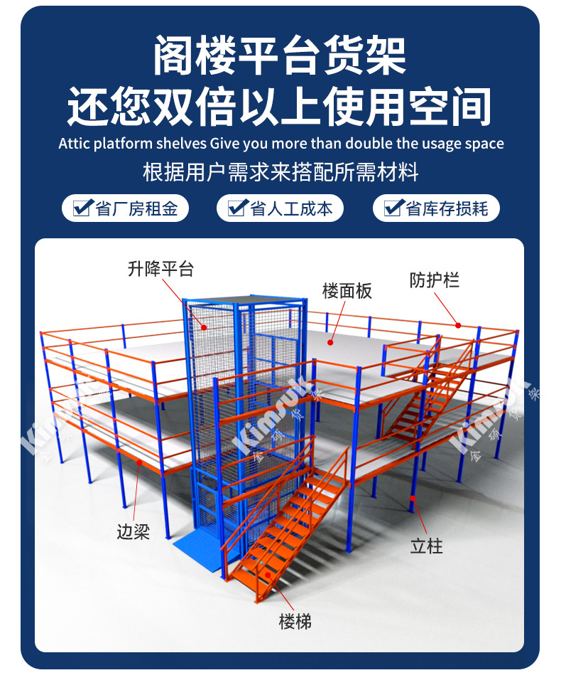 金硕货架钢结构阁楼式货架多层可拆卸仓库仓储重型架承重阁楼平台