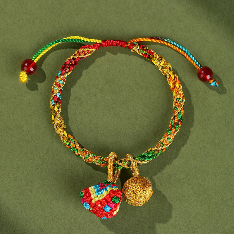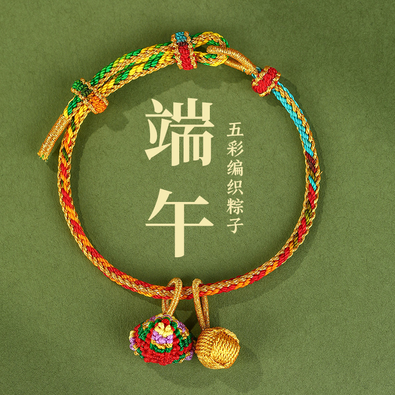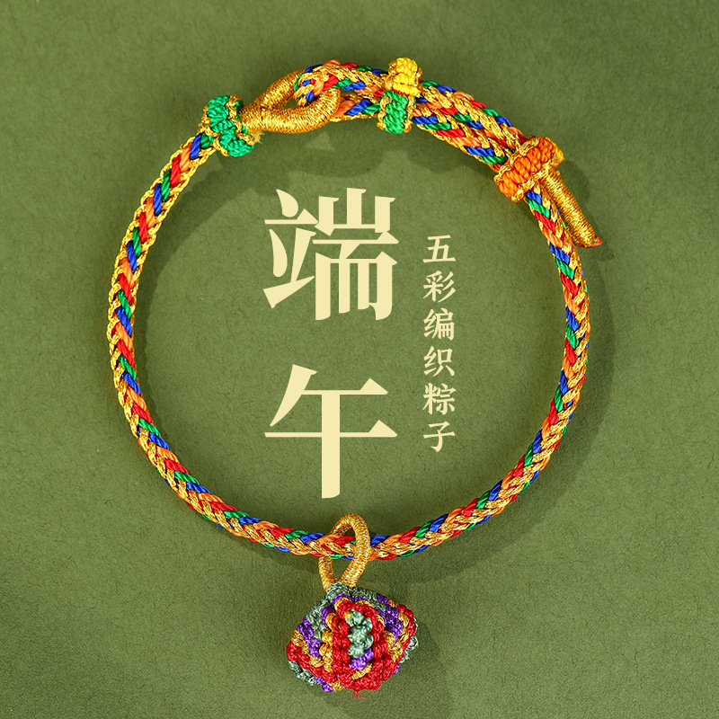 端午节五彩绳小粽子手链手工编织儿童宝宝小粽子五色线手绳礼物