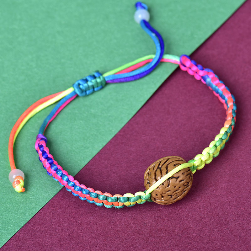 带核桃五彩绳可调节手链新款手工编织线端午节红绳批发