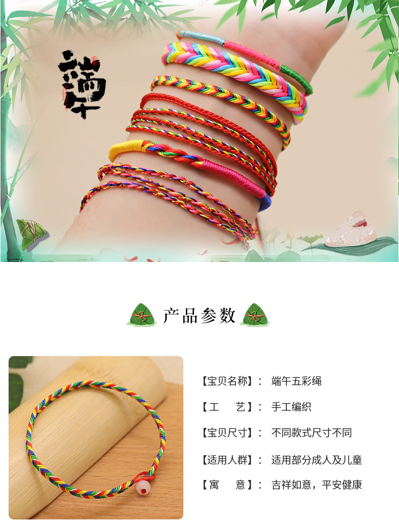 端午节五彩绳手链手工编织金丝五色线五彩手绳儿童宝宝五月节礼物