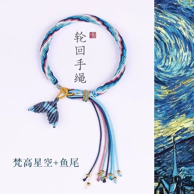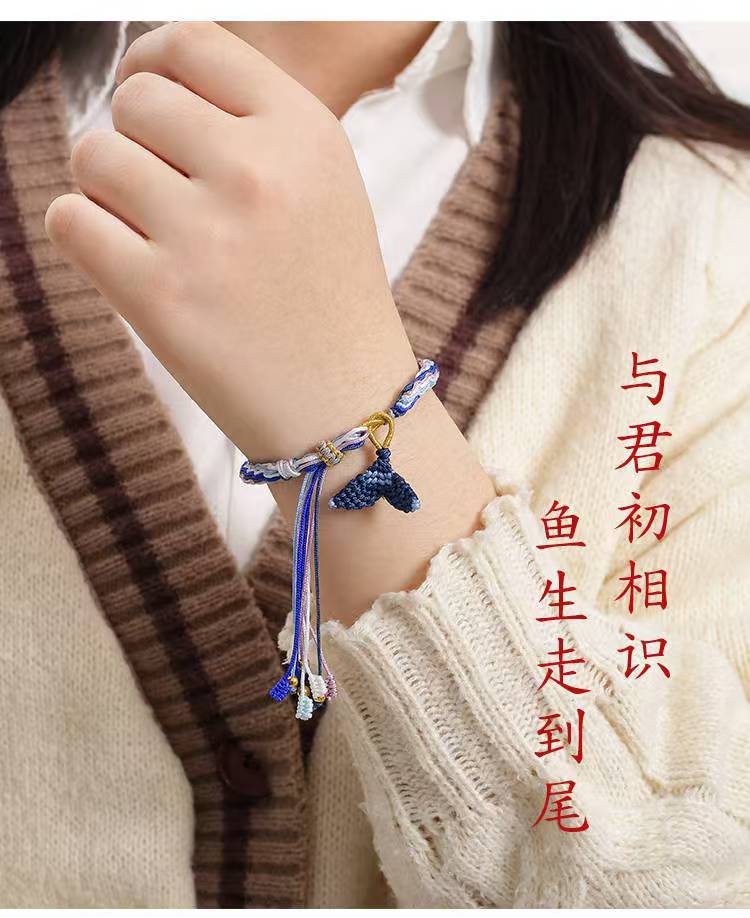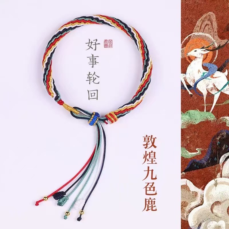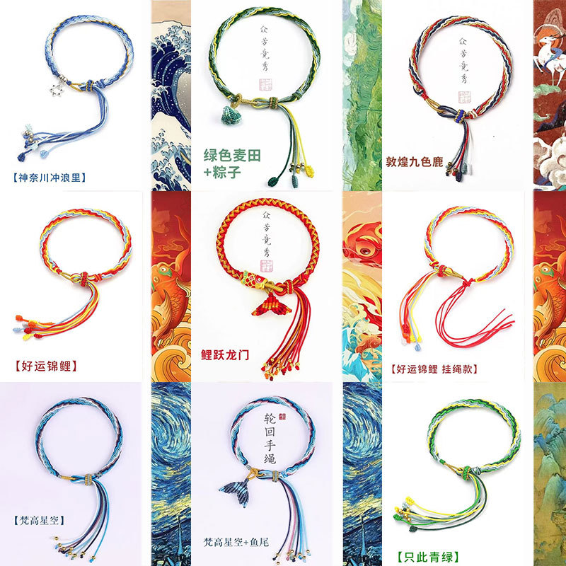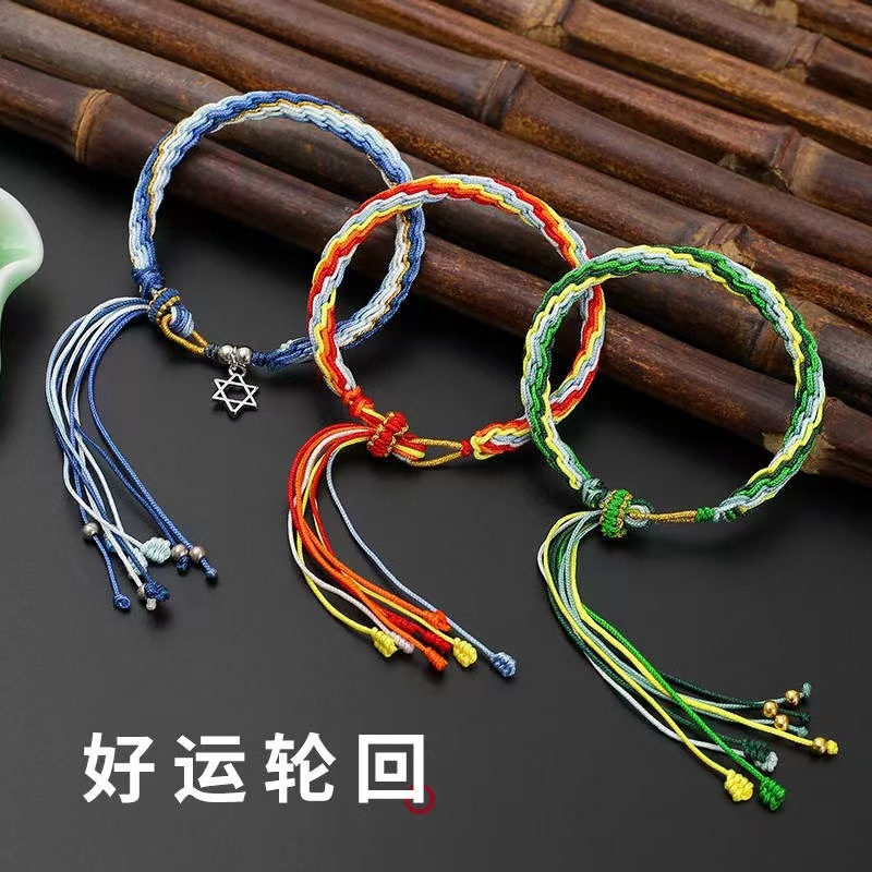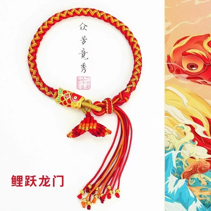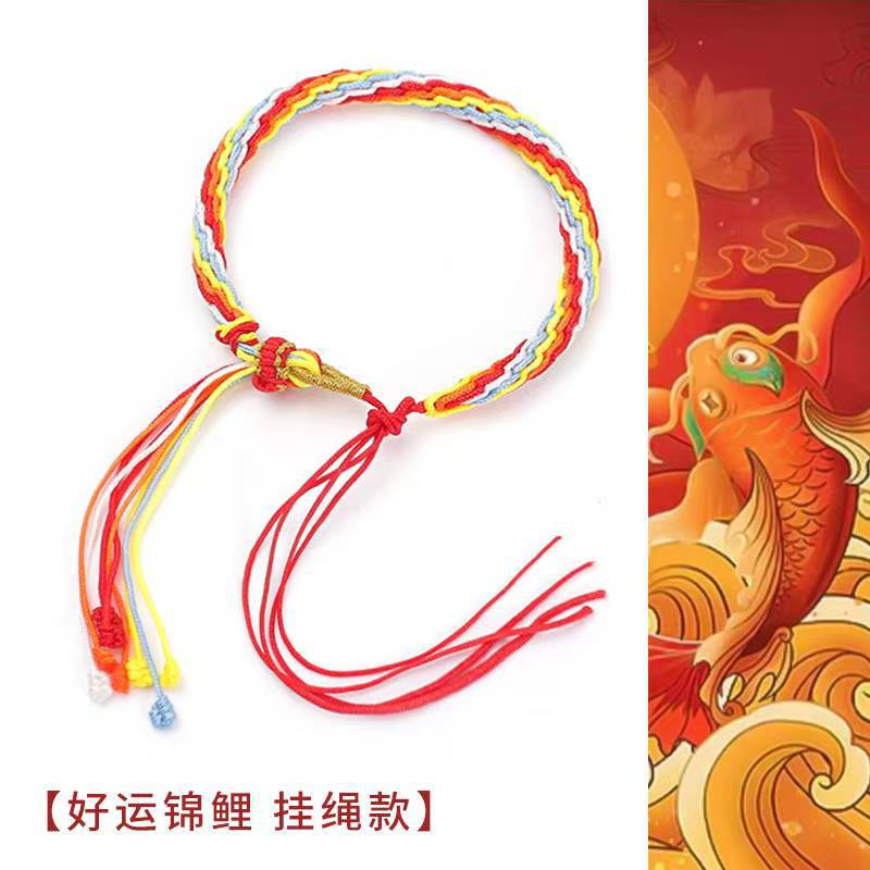 敦煌国风鱼跃龙门手工编织流苏手链好运连连轮回手绳端午节五彩绳