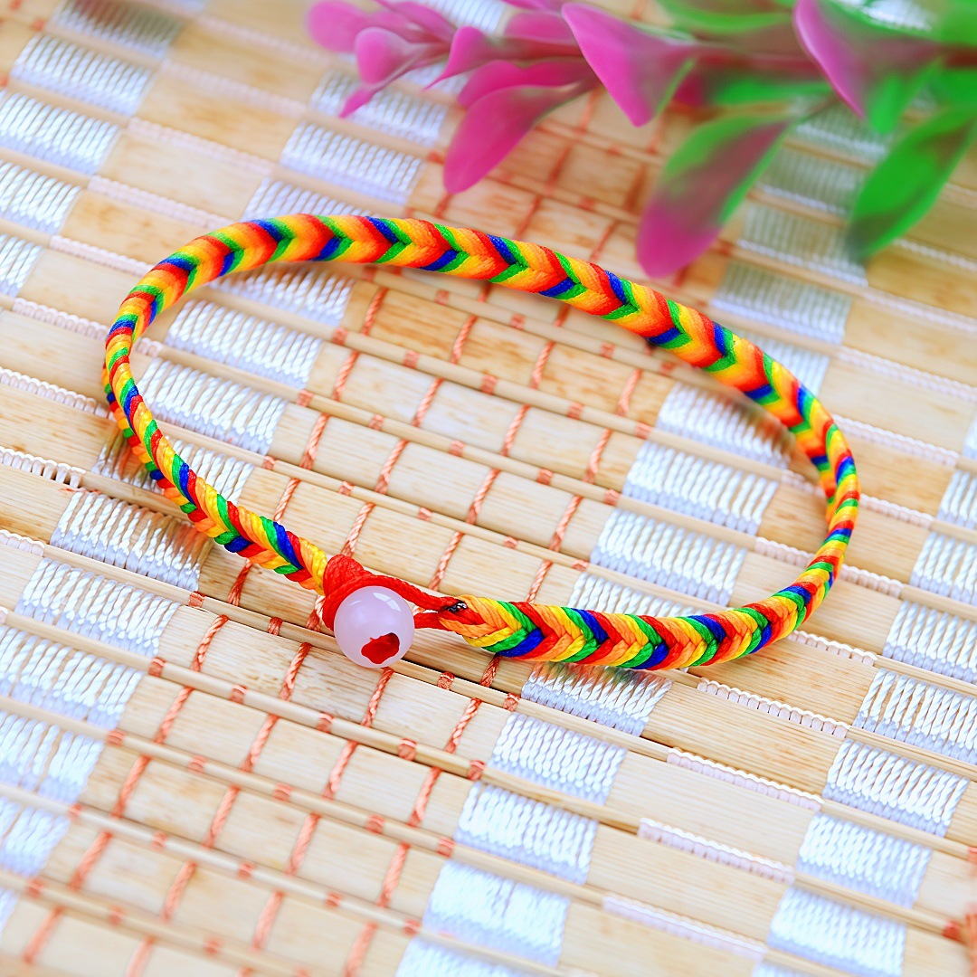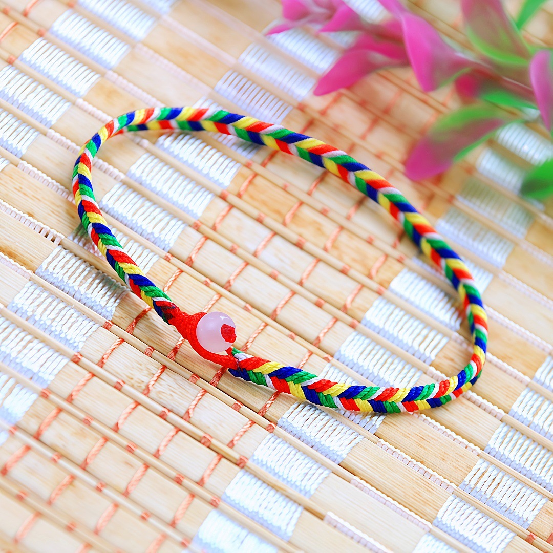马年热卖一颗珠彩色手绳饰品手工编织端午节五彩绳手链小礼品批发