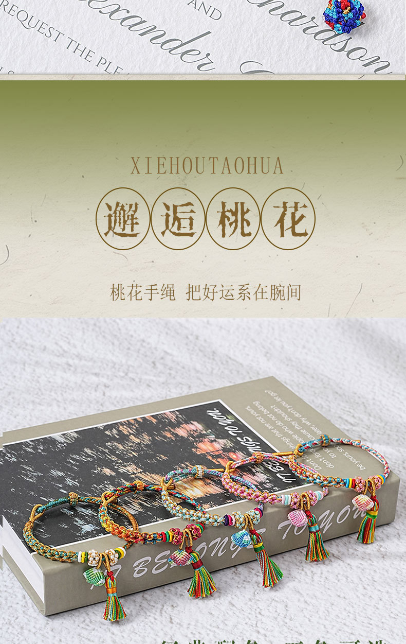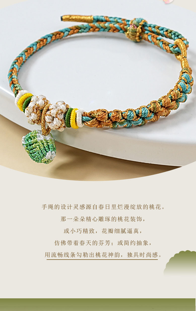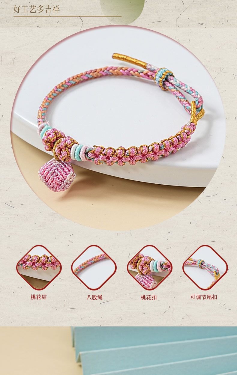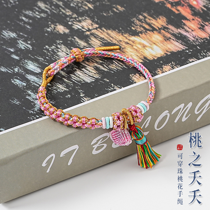端午桃花手绳五彩绳手工精编织手链可调节男女儿童款可穿配饰礼物