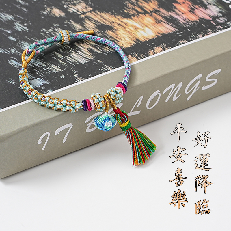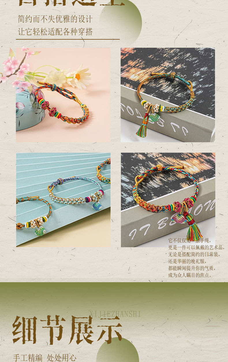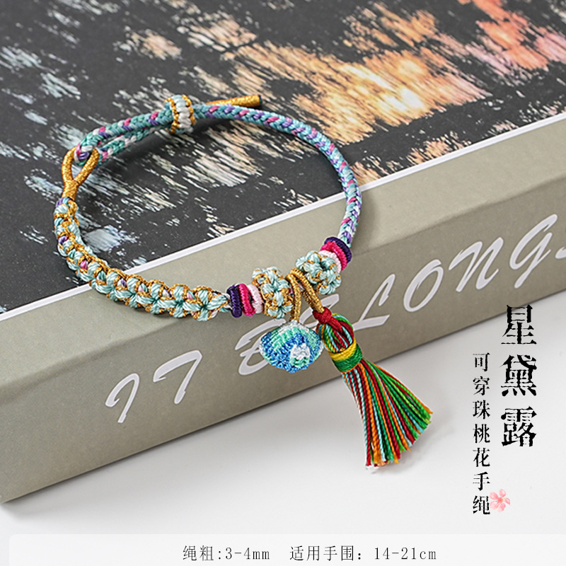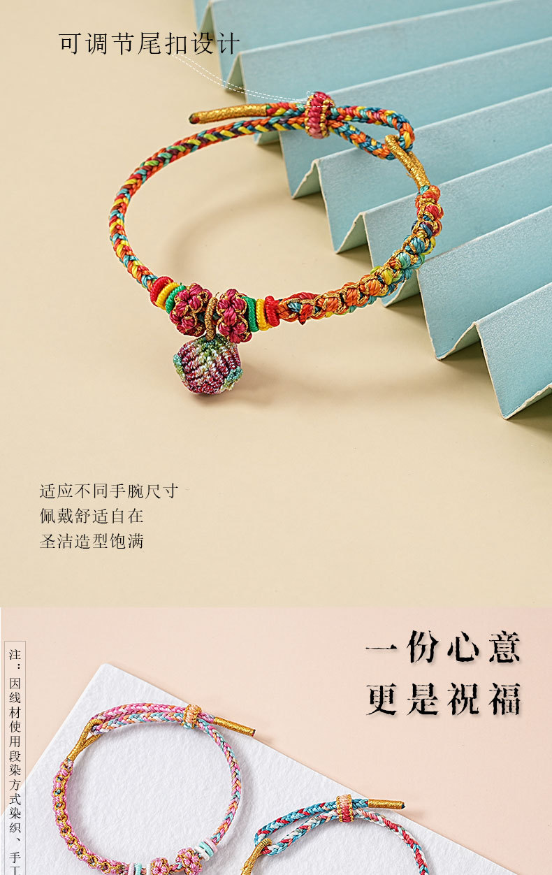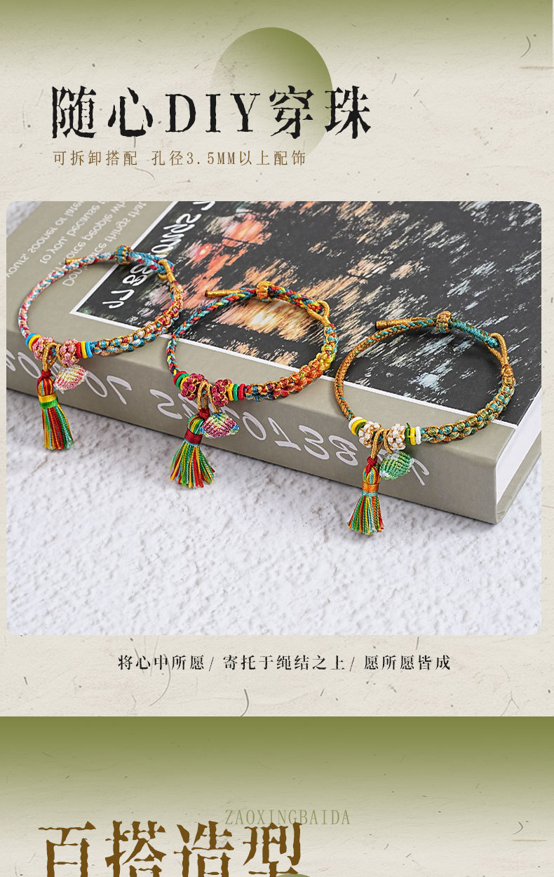 端午桃花手绳五彩绳手工精编织手链可调节男女儿童款可穿配饰礼物