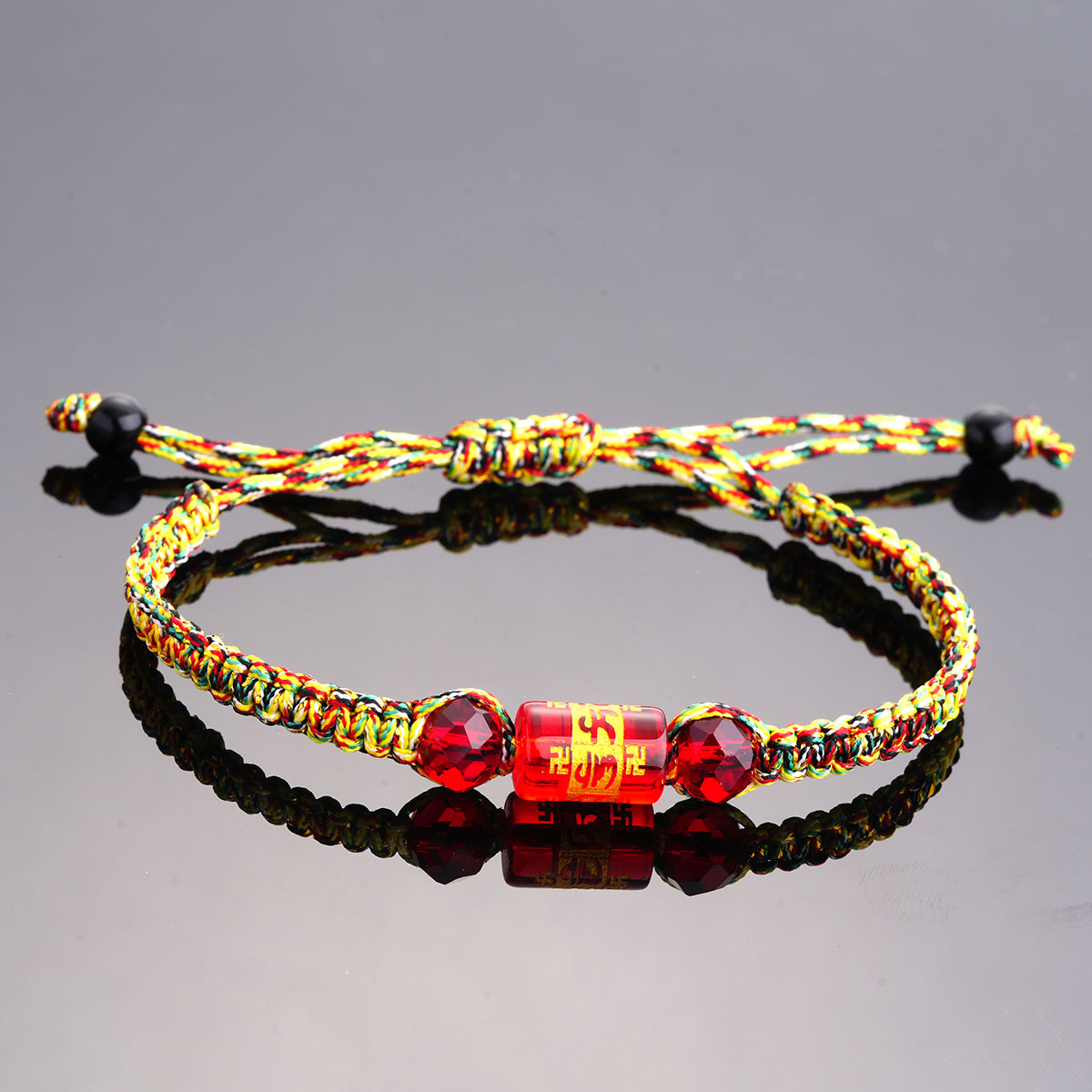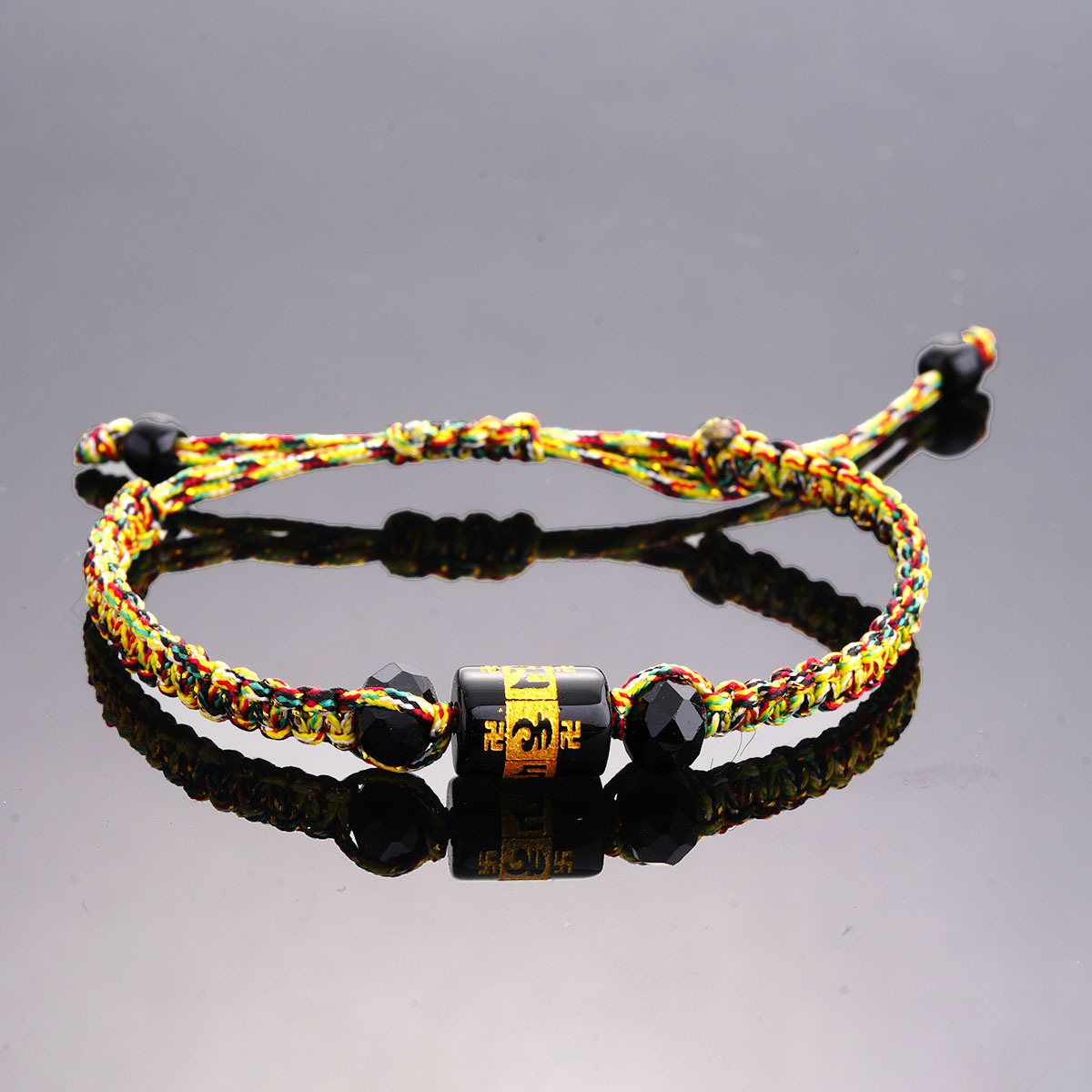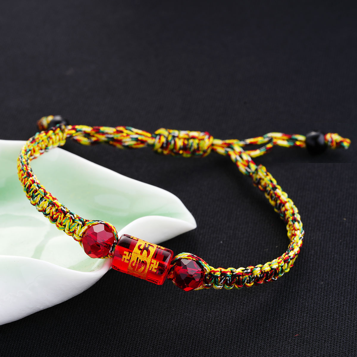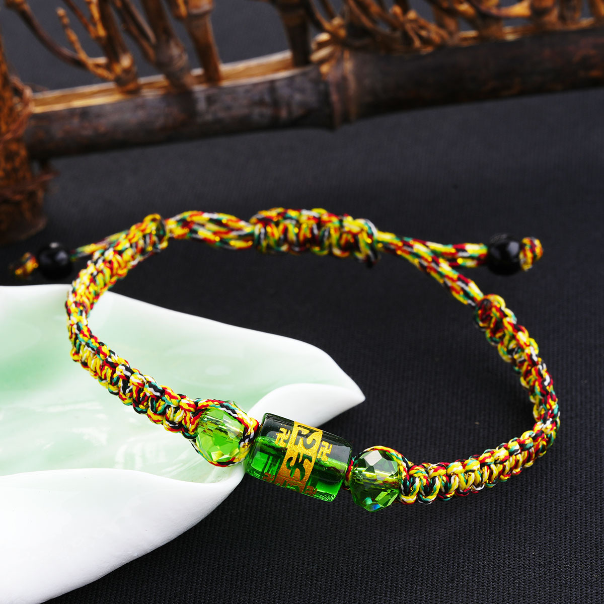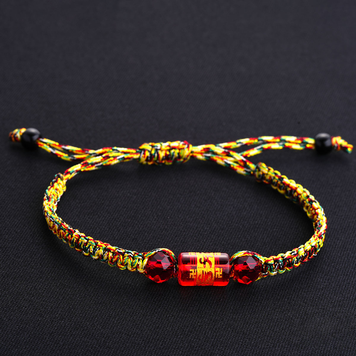 端午节五彩绳手链藏式六字真言桶珠手绳手工编织五色线彩绳小礼品