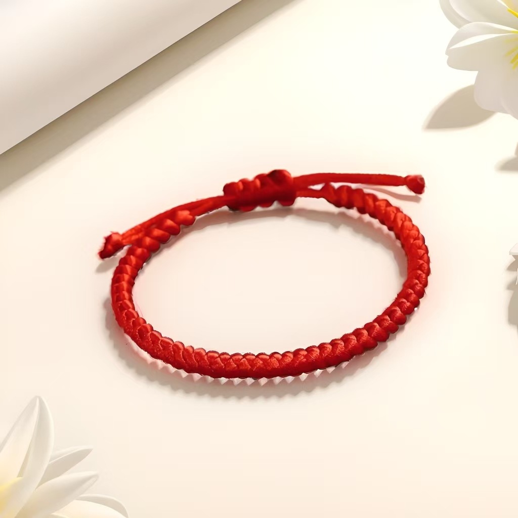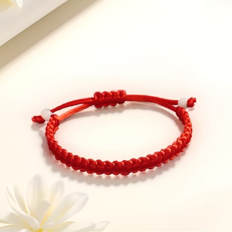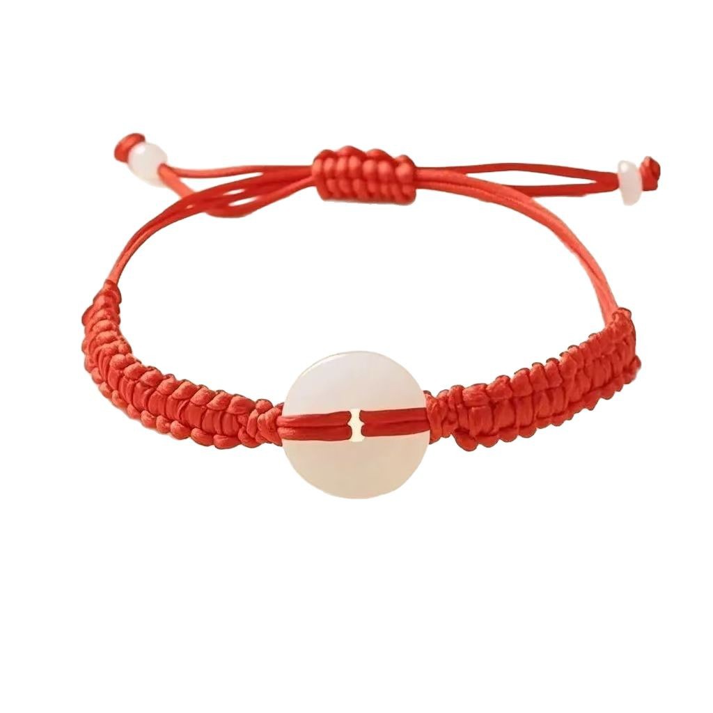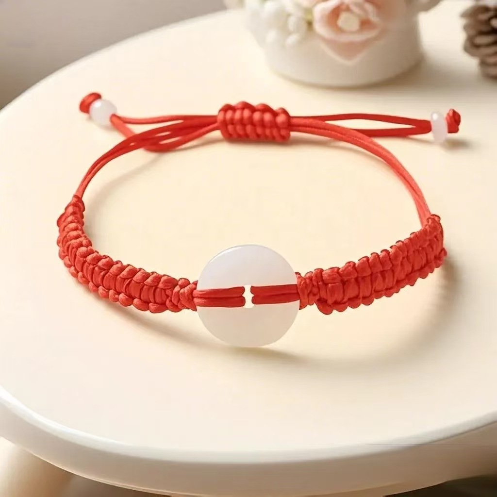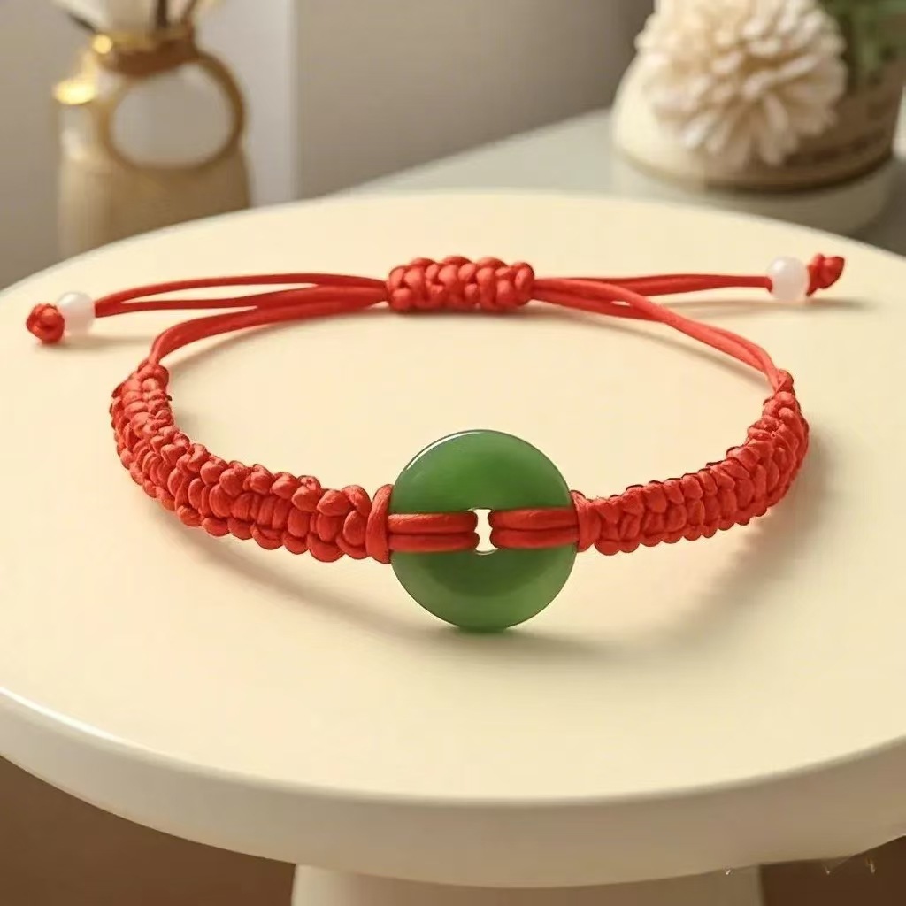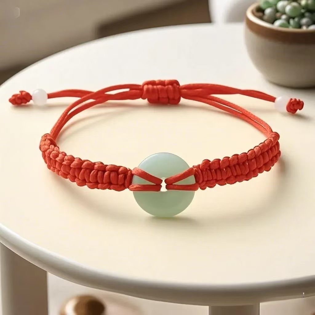 2025端午节平安扣红绳手链仿玉石手工编织男女款本命年五彩绳批发