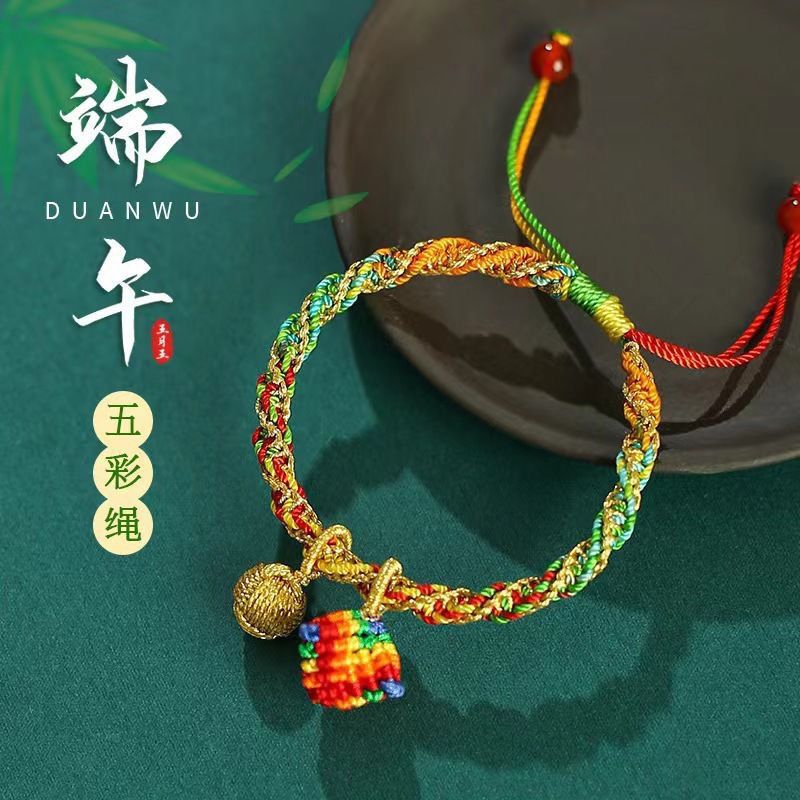 端午节五彩绳龙骨绳手链五行珠五色线手绳男儿童手工编织饰品批发