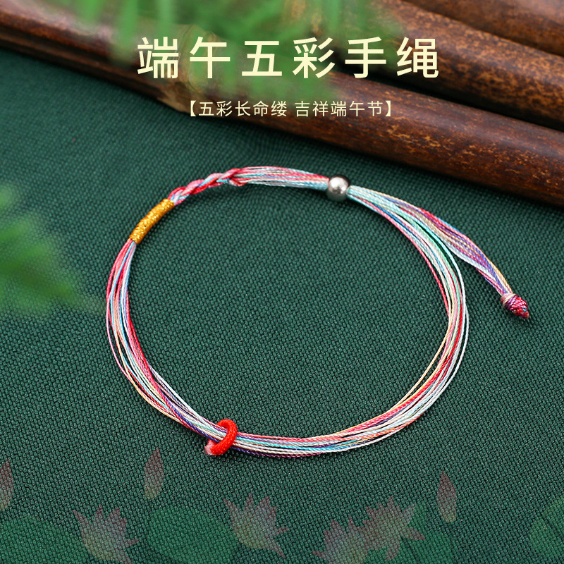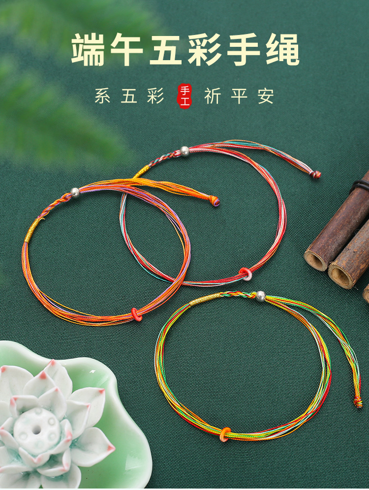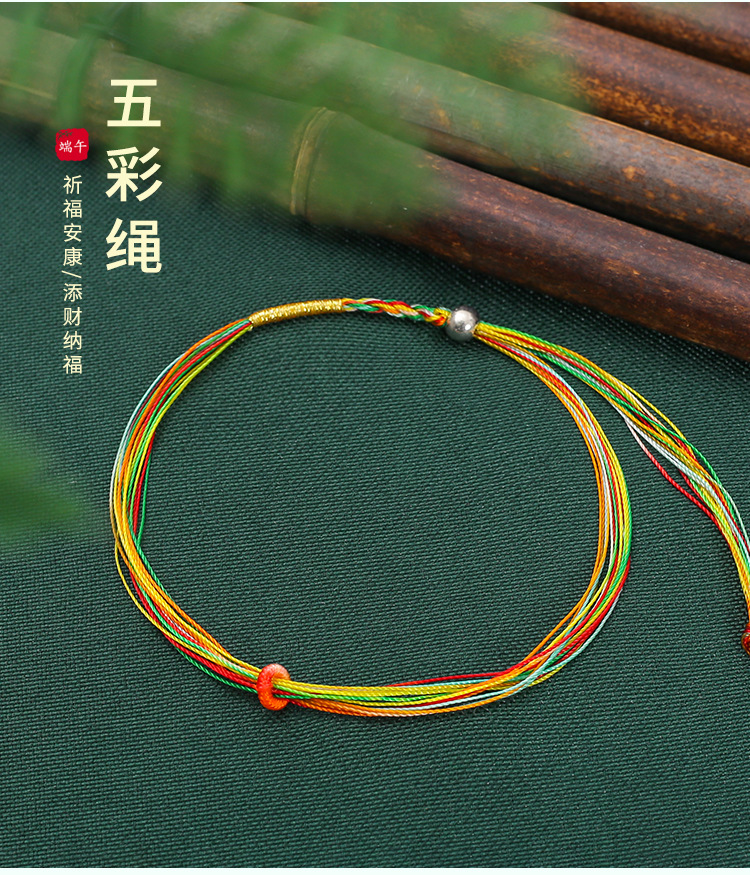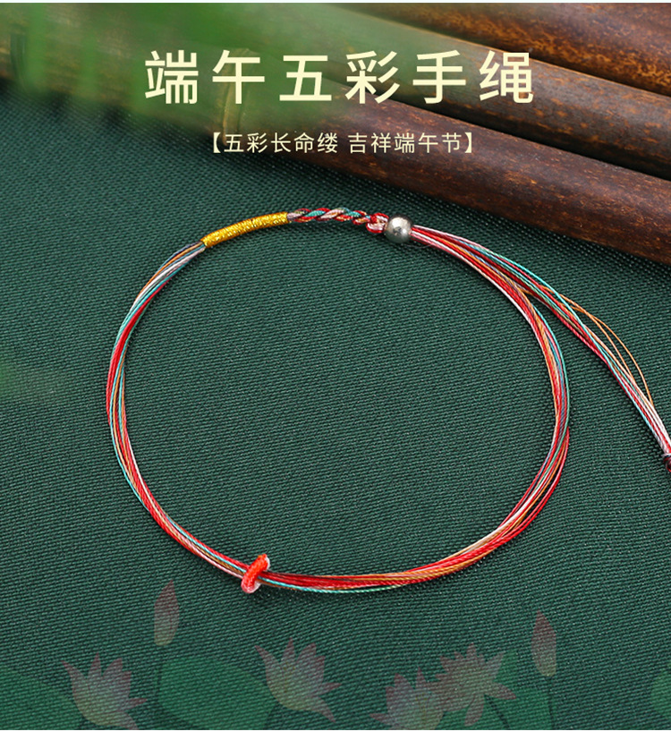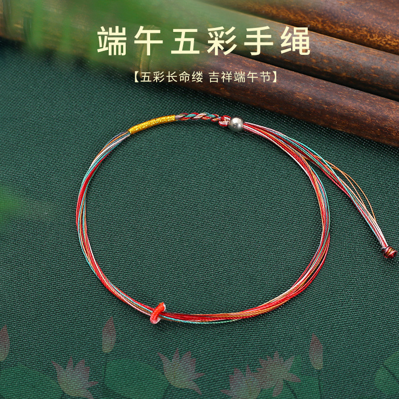 简约端午节五彩绳手链细款可挂配饰五彩流苏手绳新中式五月节手饰