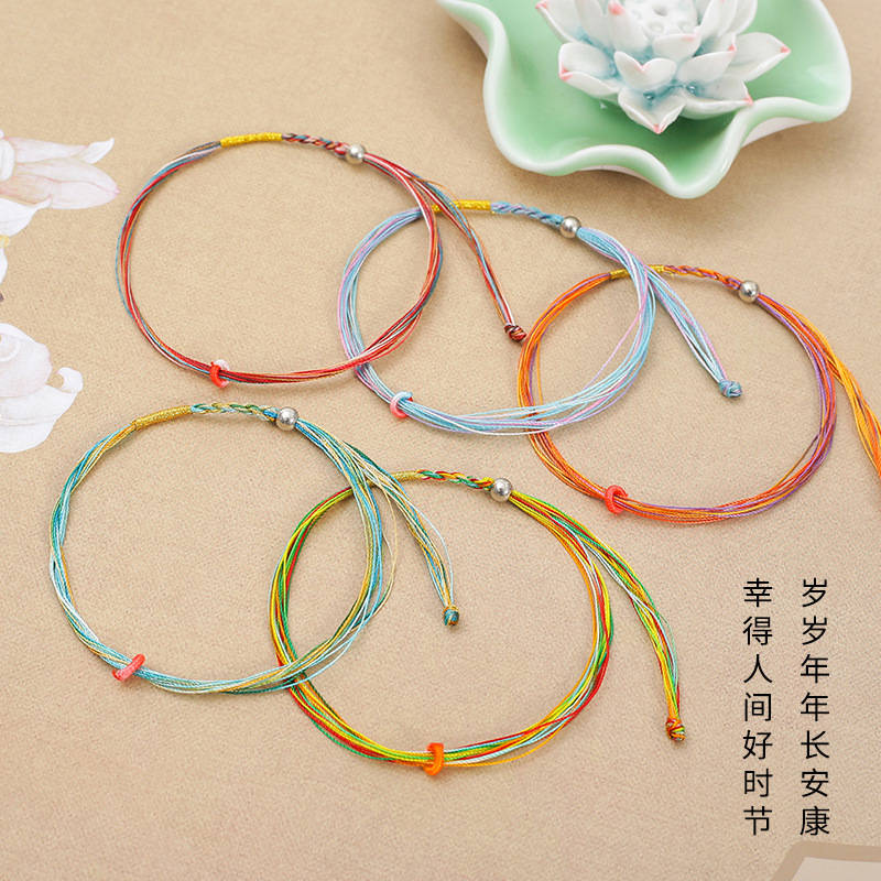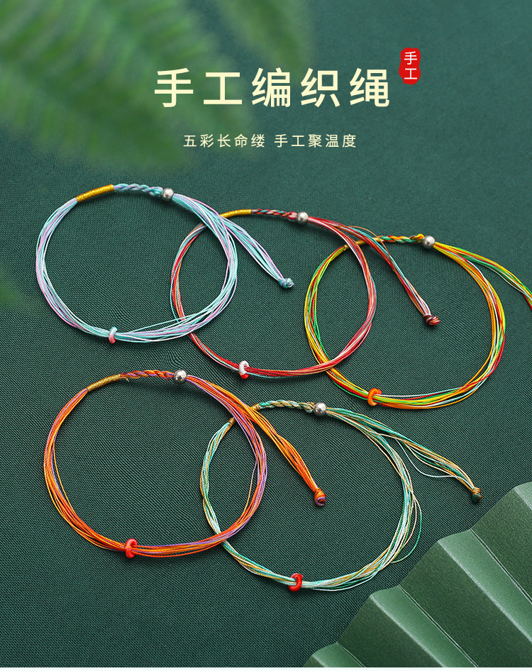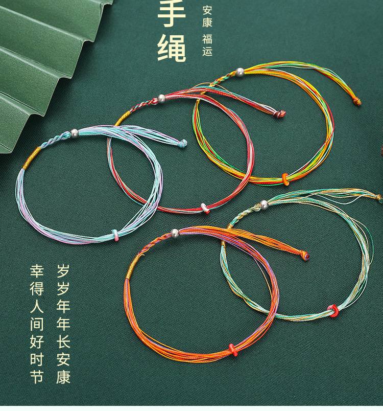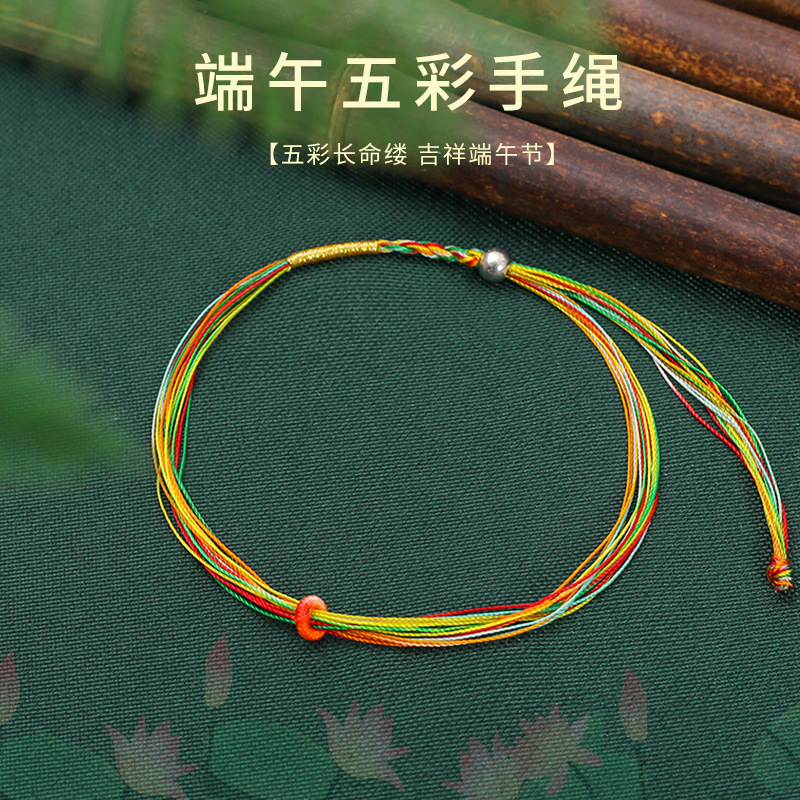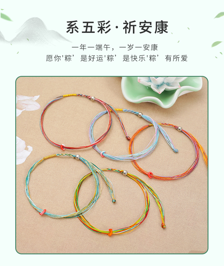 简约端午节五彩绳手链细款可挂配饰五彩流苏手绳新中式五月节手饰