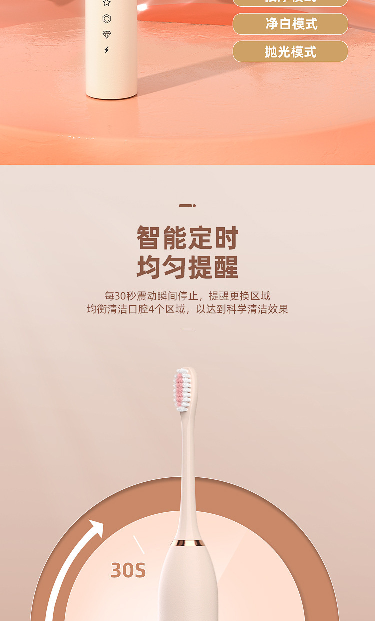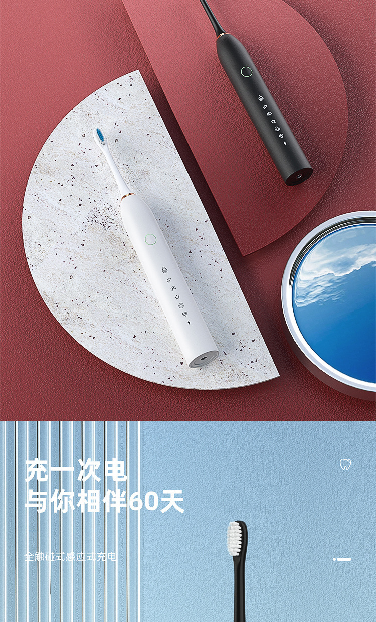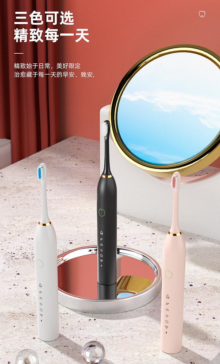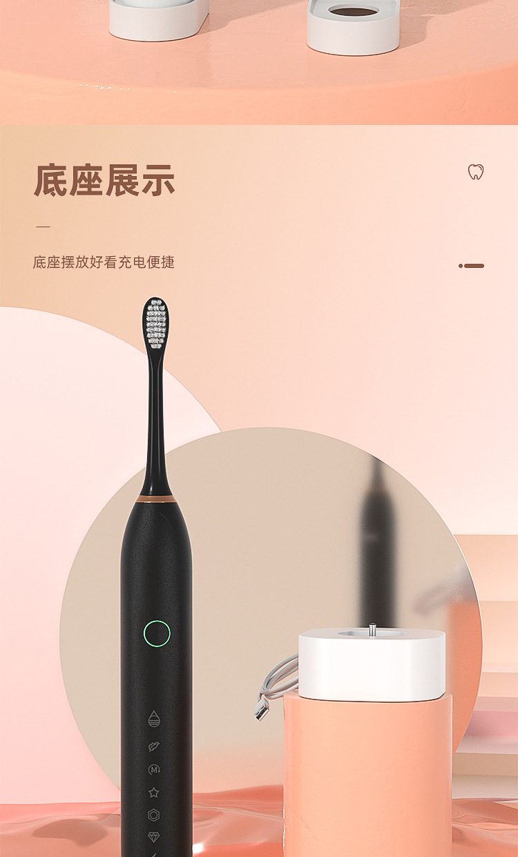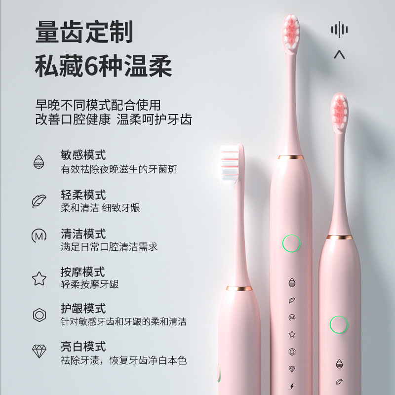 电动牙刷跨境充电款成人款软毛自动声波充电式智能洁牙神器情侣款