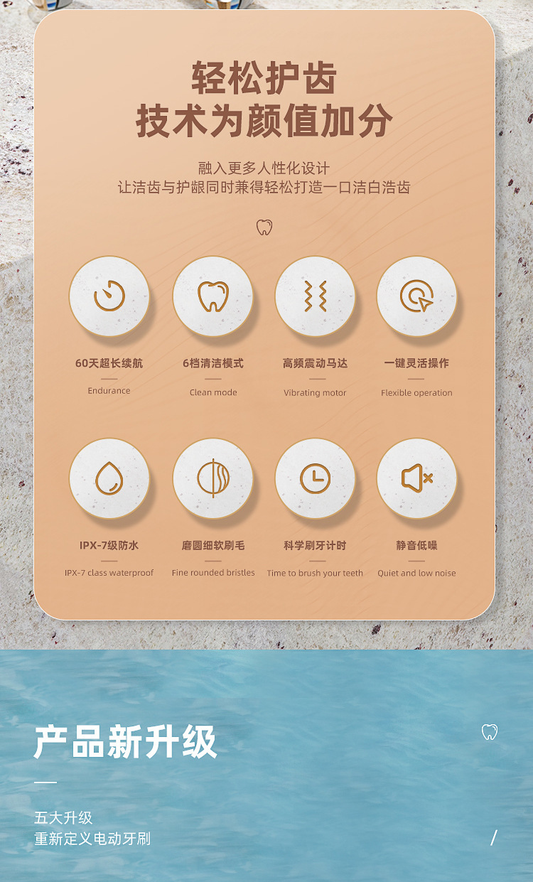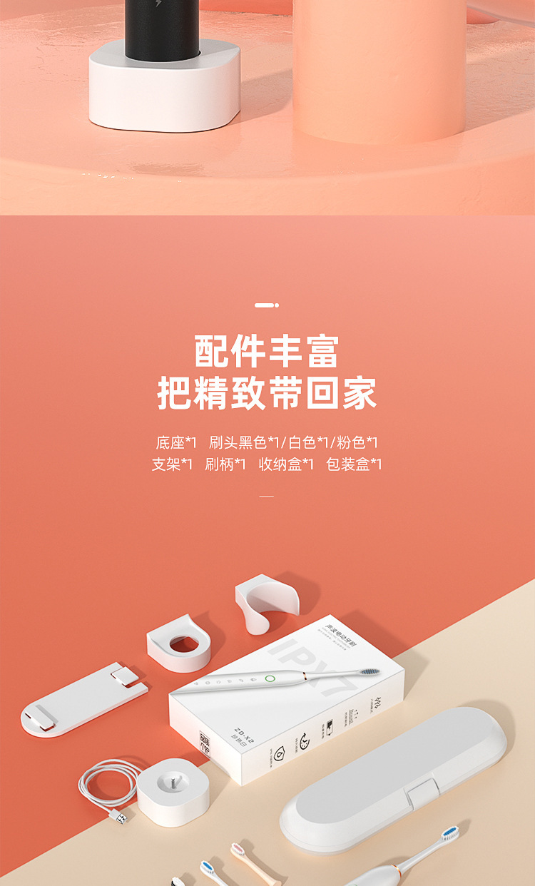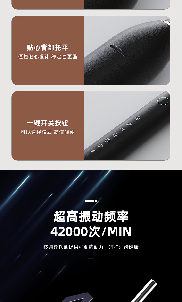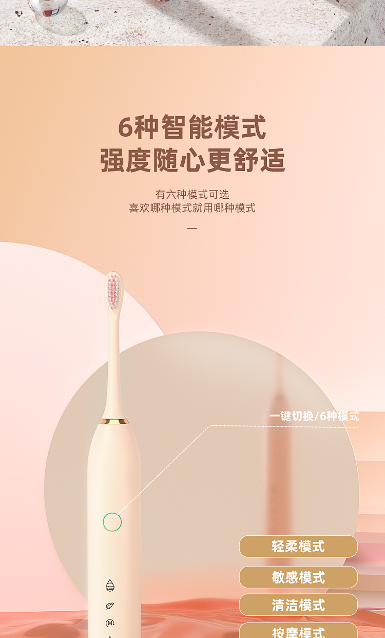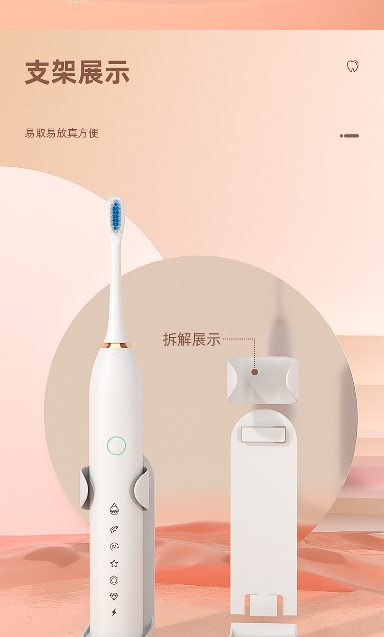 电动牙刷跨境充电款成人款软毛自动声波充电式智能洁牙神器情侣款