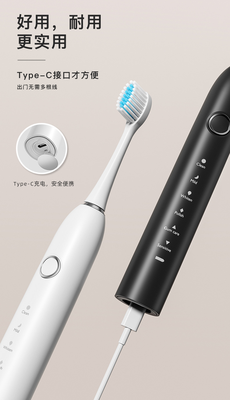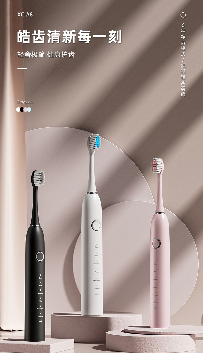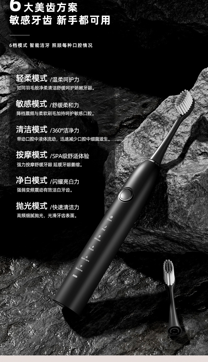 电动牙刷充电款跨境成人款软毛自动声波充电式智能洁牙神器情侣款