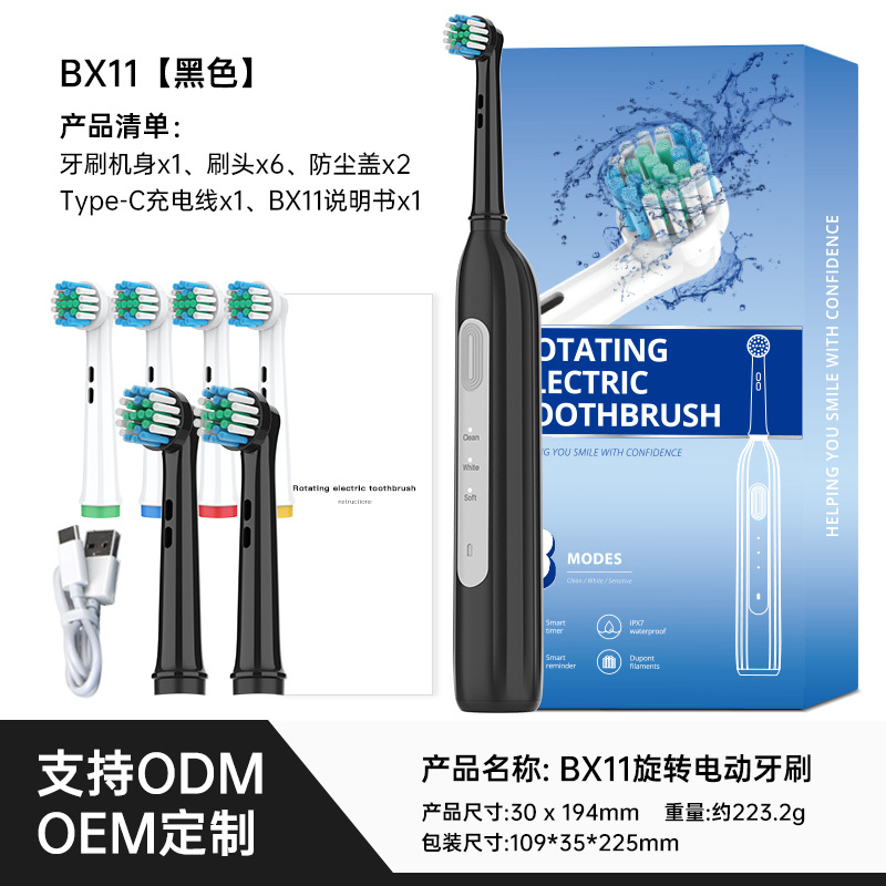 跨境外贸套装热搜款旋转电动牙刷长续航杜邦标准清洁金属轴圆头刷
