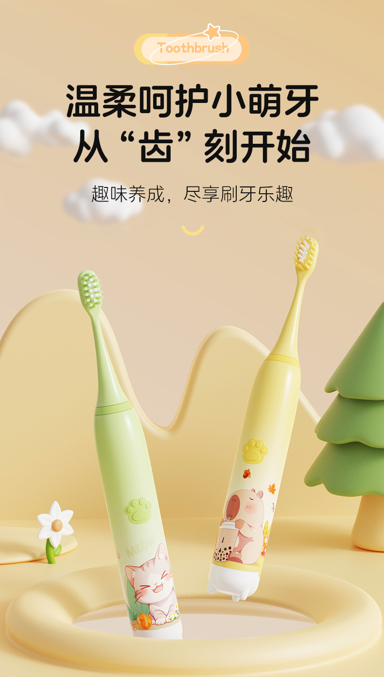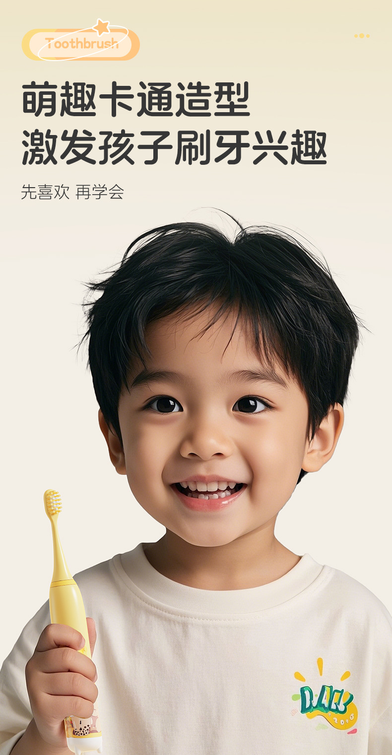 跨境新款儿童电动牙刷软毛家用宝宝牙刷卡通电动牙刷充电电动牙刷