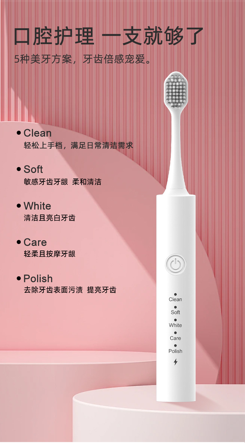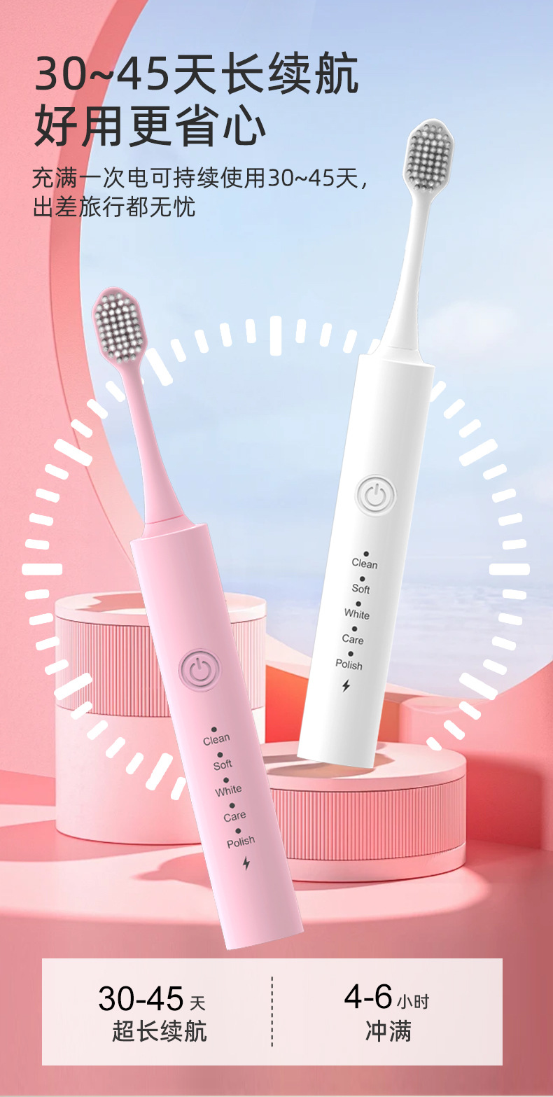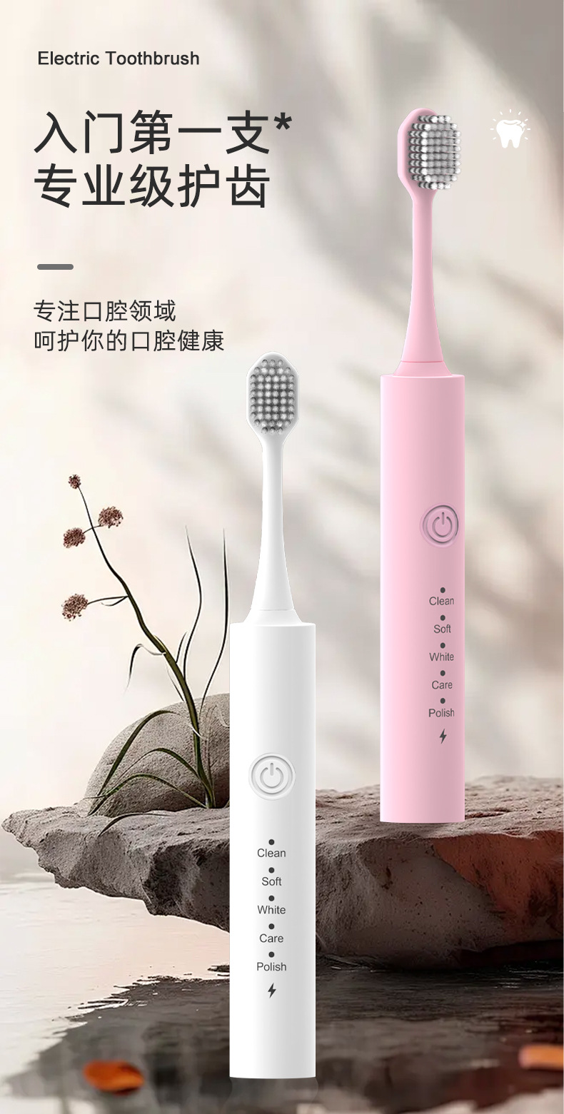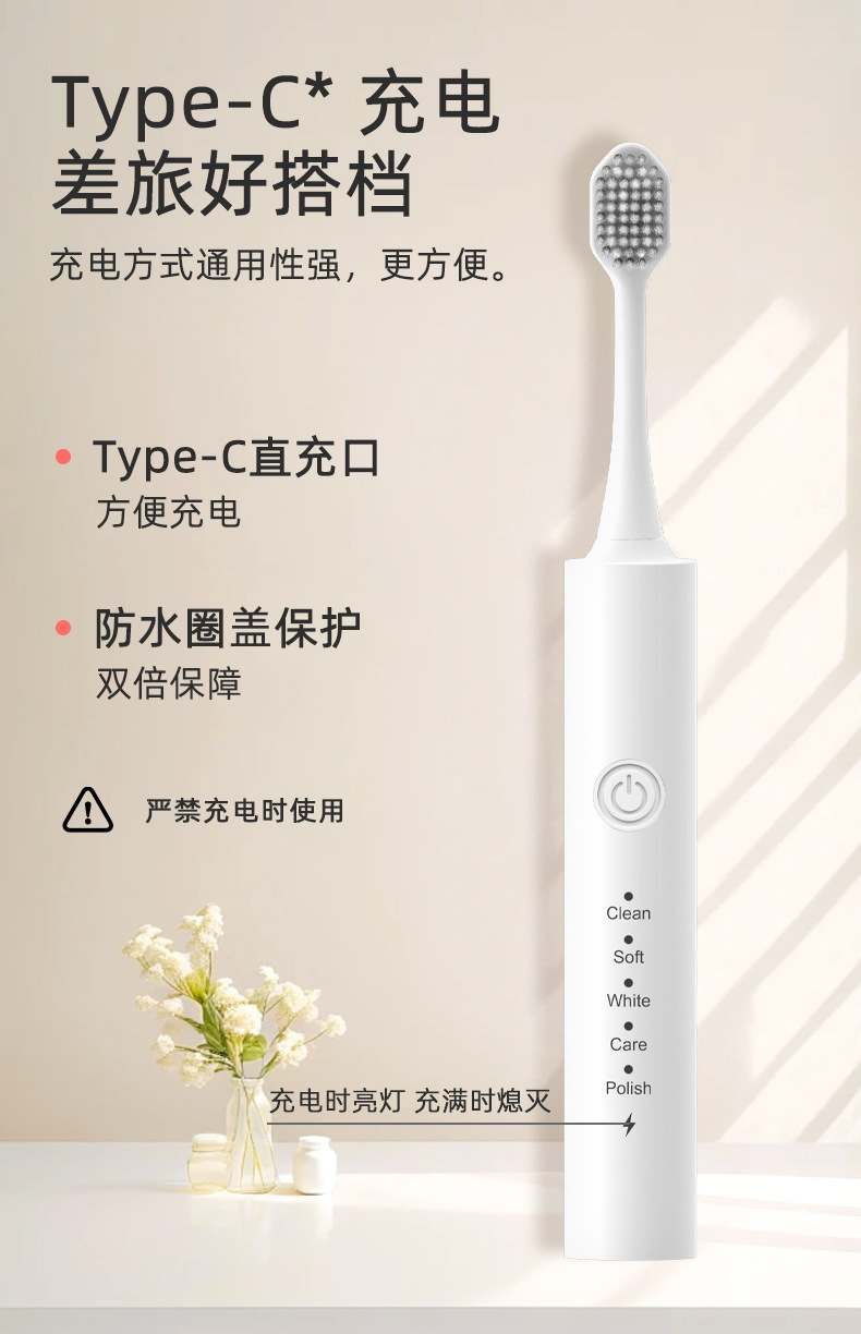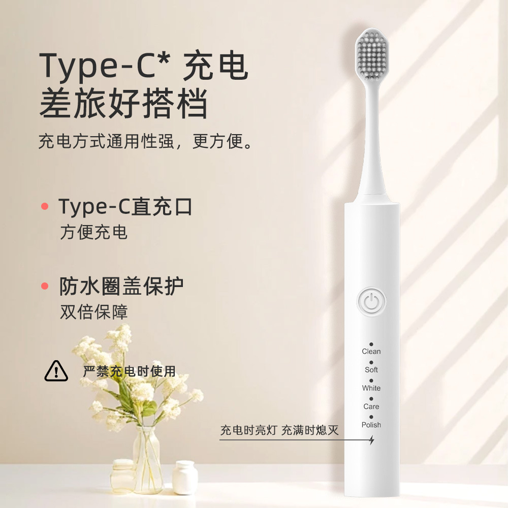 电动牙刷批发厂家成人款声波电动牙刷充电款Type-C充电学生情侣